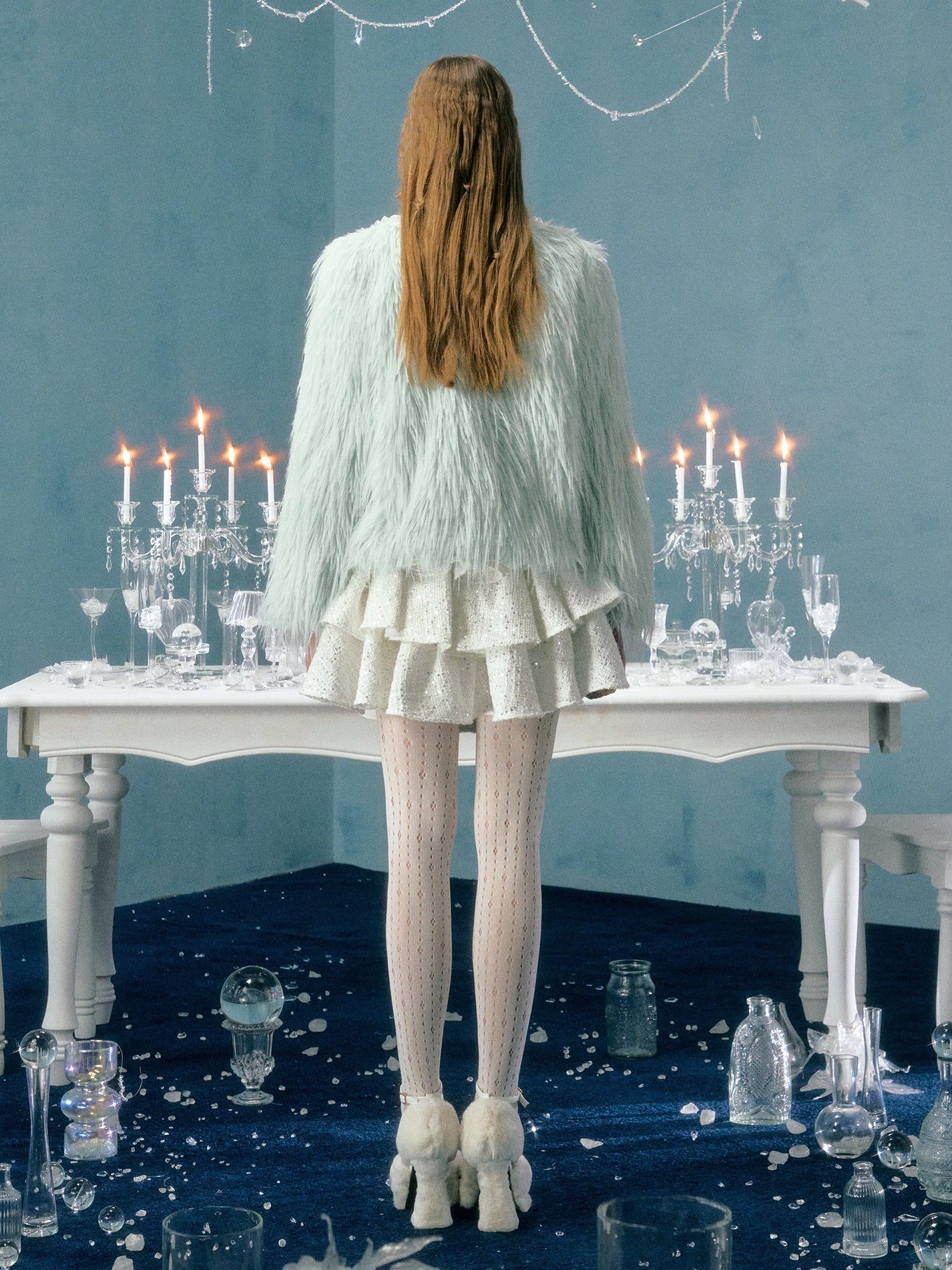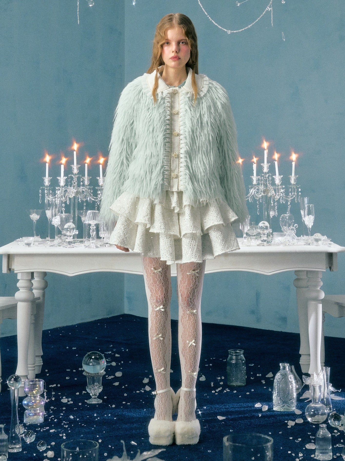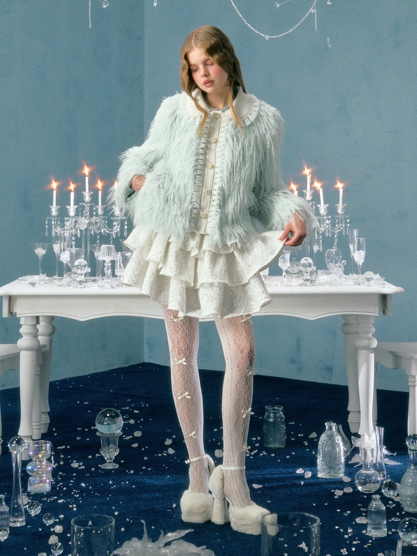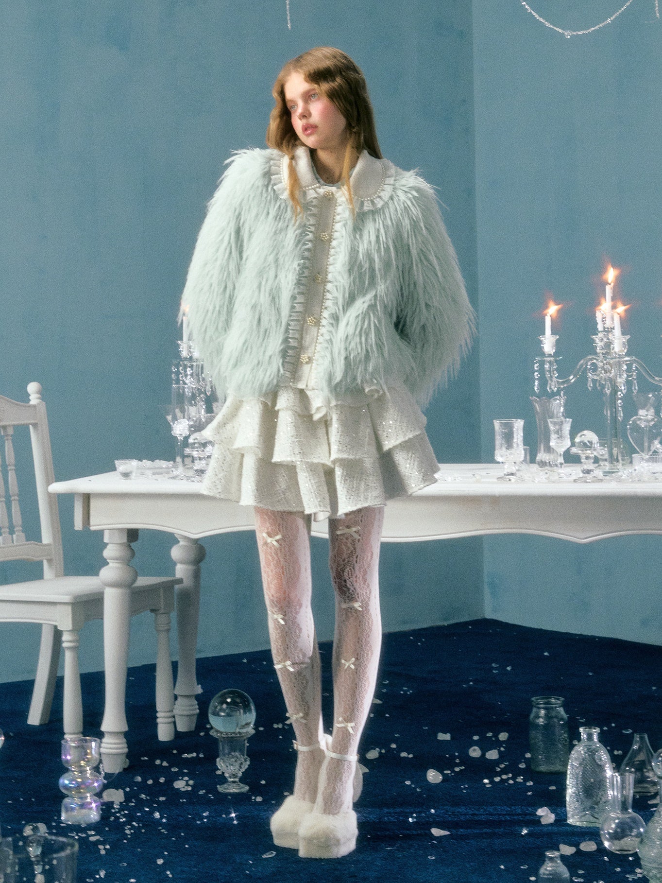 Pearl Lace Decoration Short Imitation Fur Coat