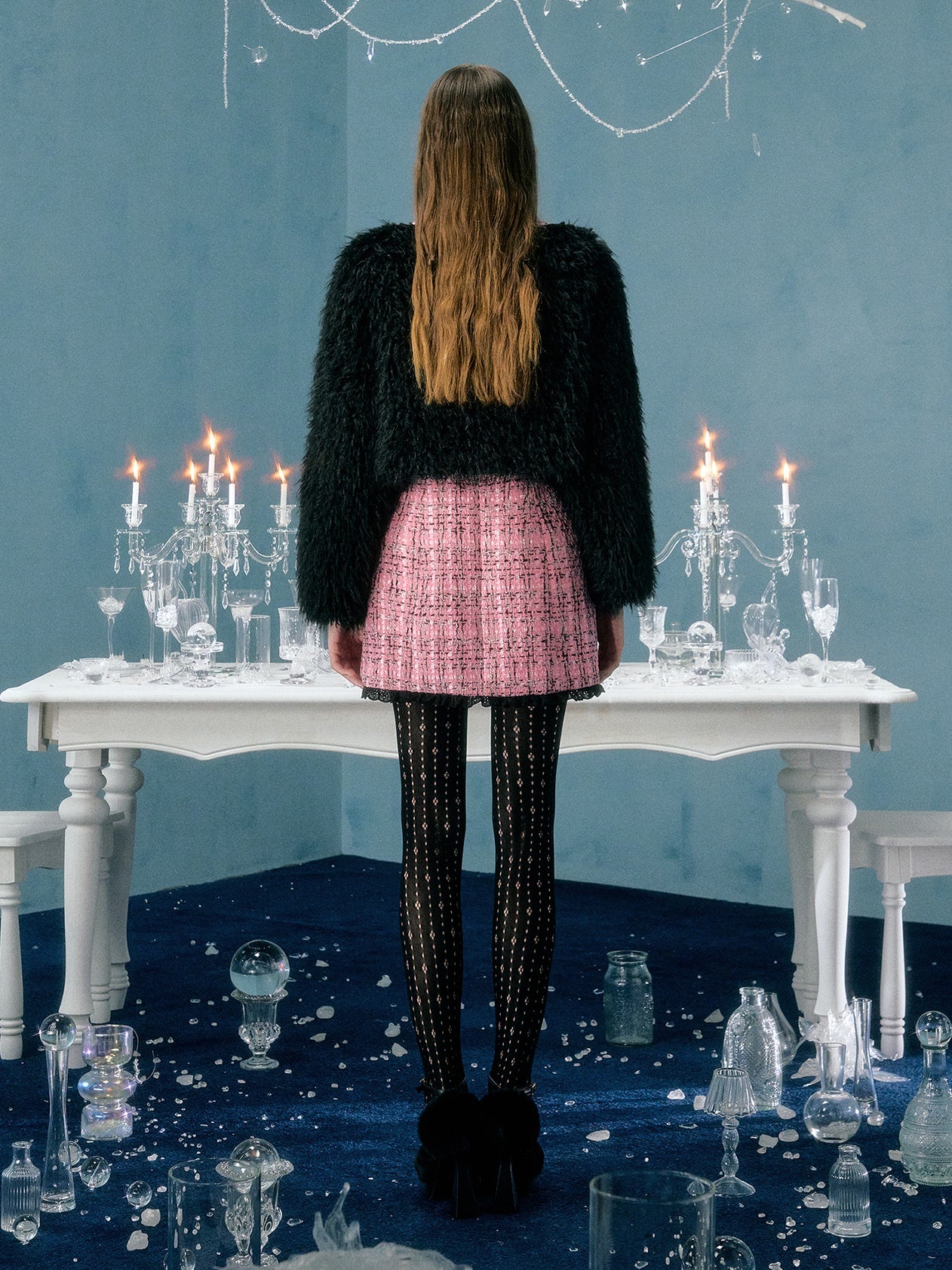 Rose Flower Decoration Short Imitation Fur Coat