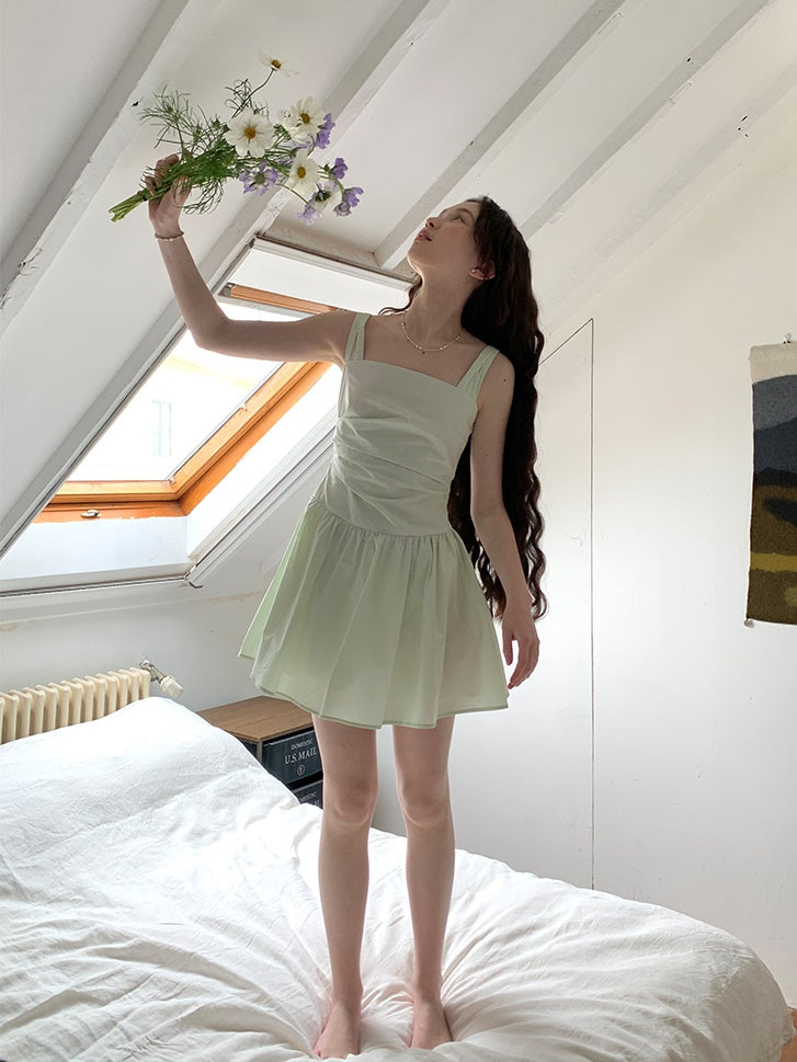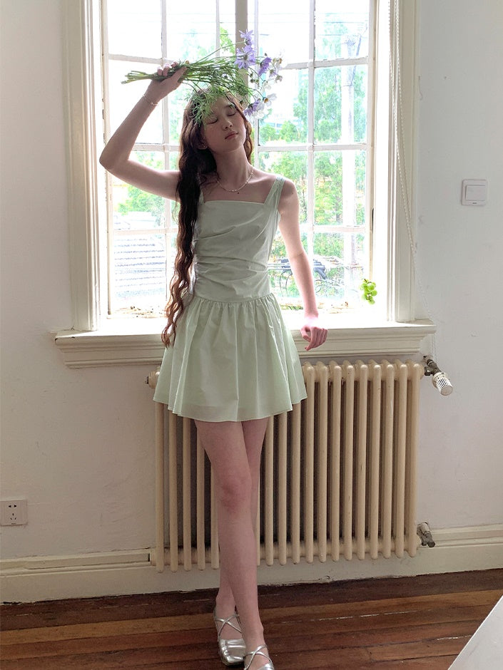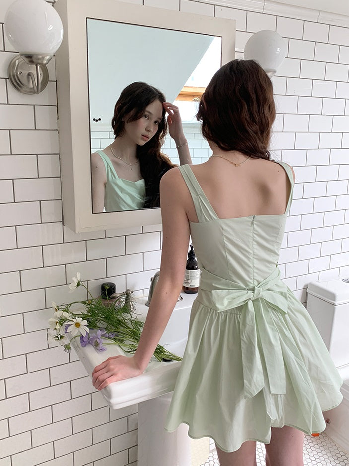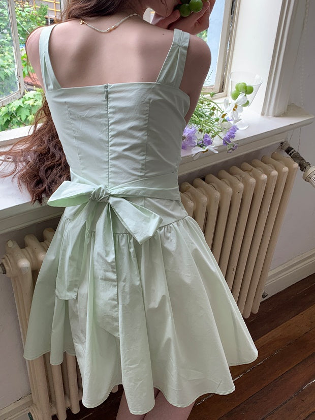 Adjustable Back Bow Slim Short Suspender Dress