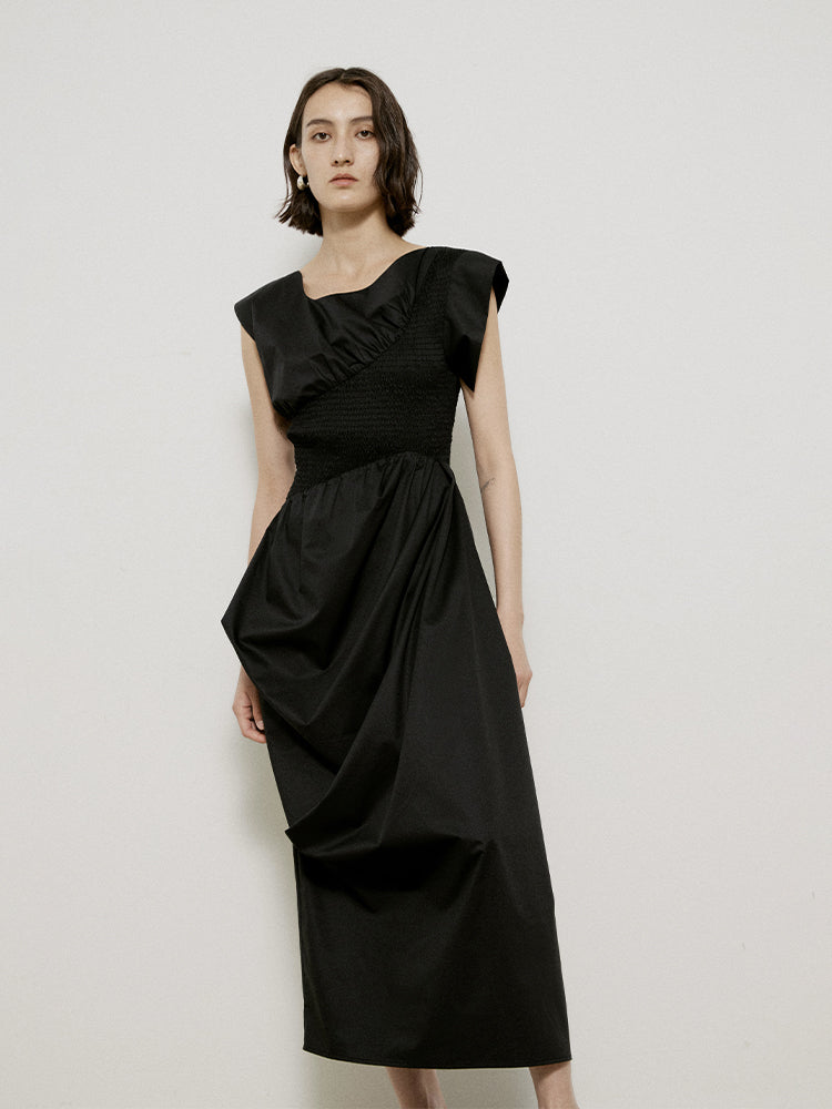 Asymmetry Glossy Drape Nichi Elegant Long One-Piece