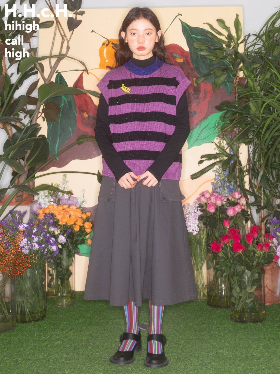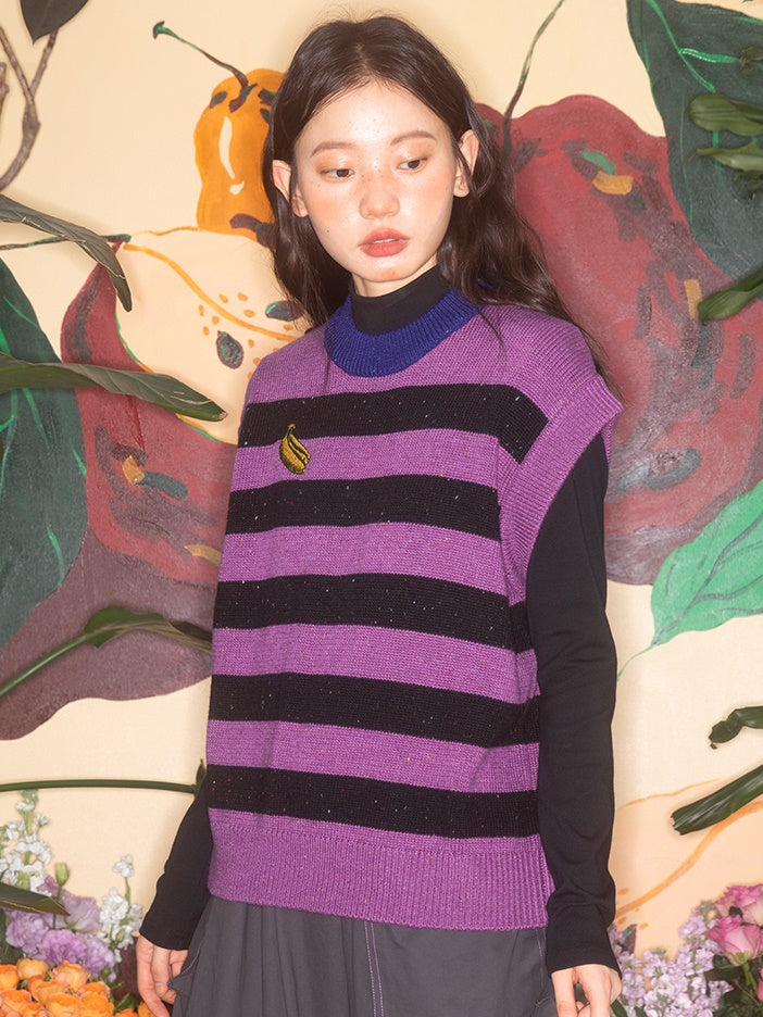 Banana Embroidered Border Knitted Vest