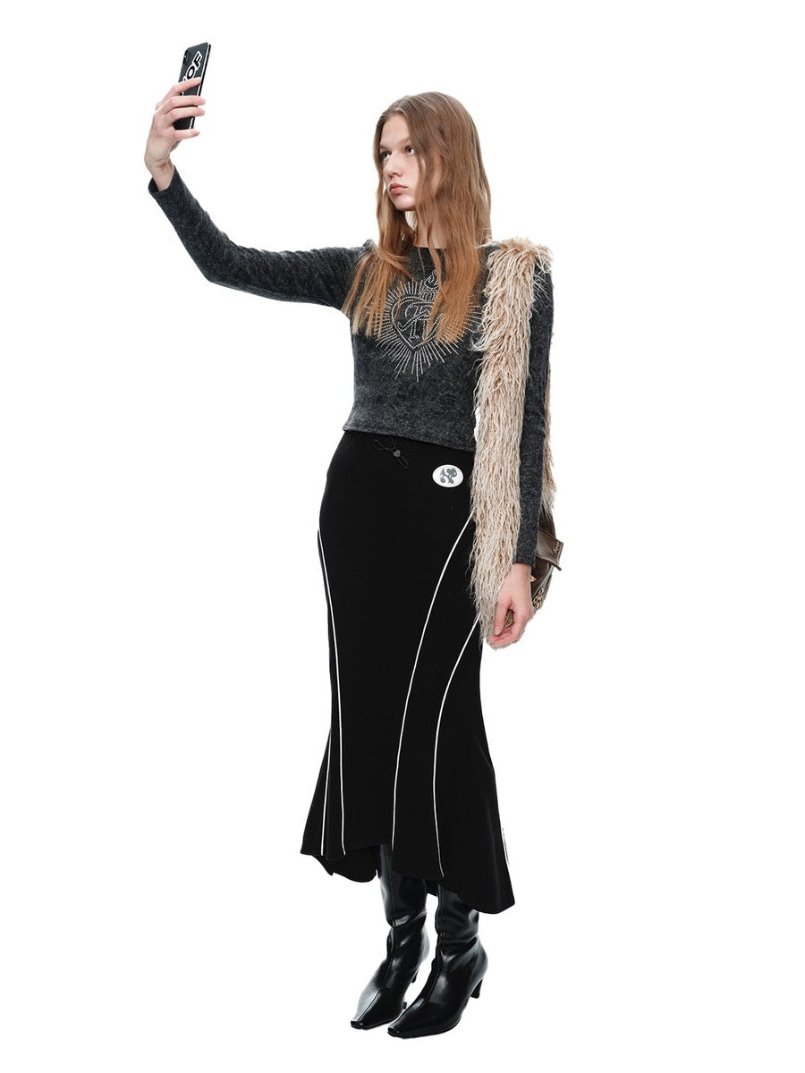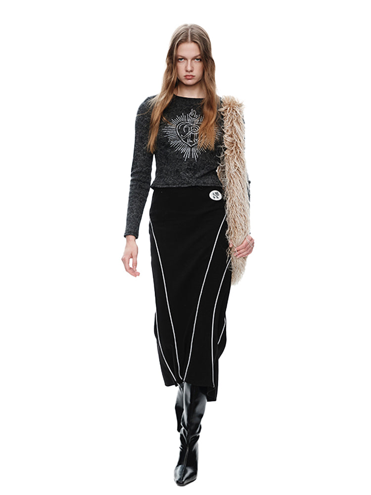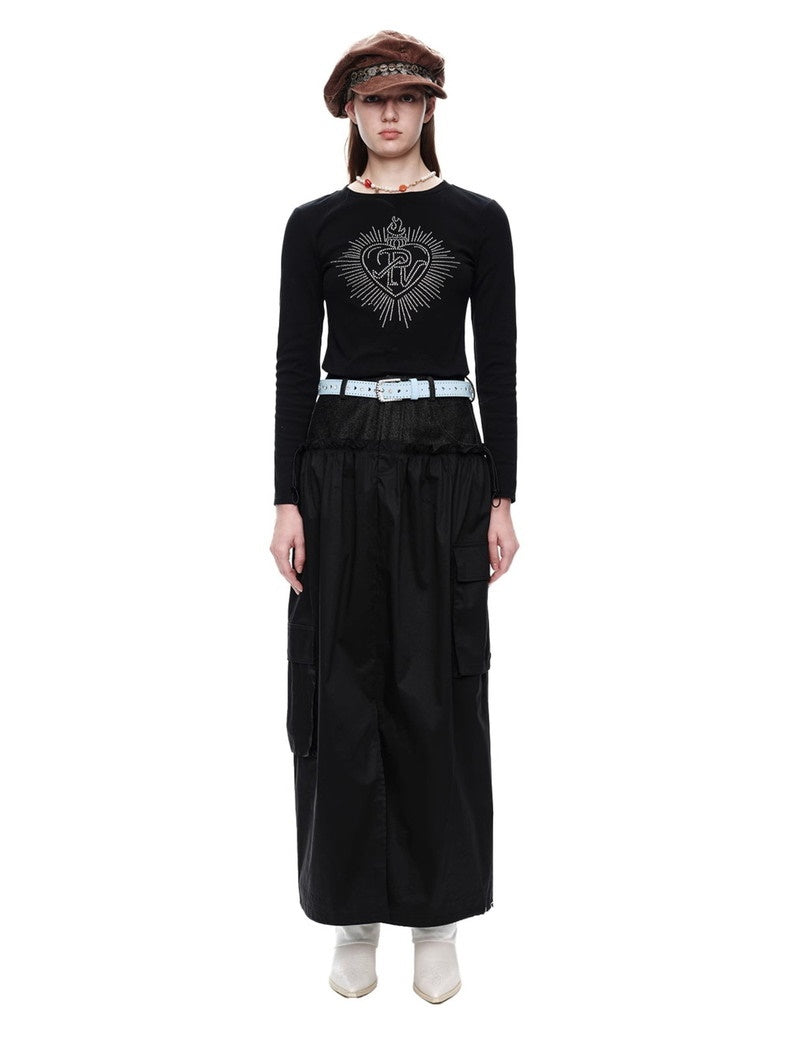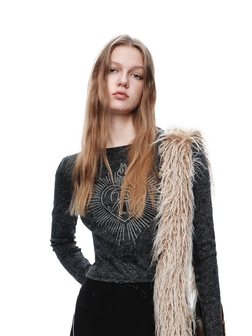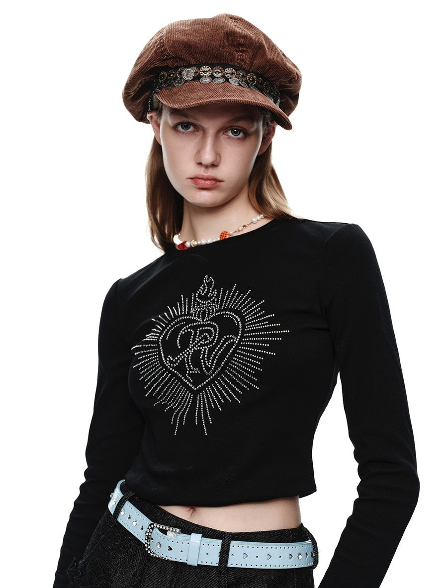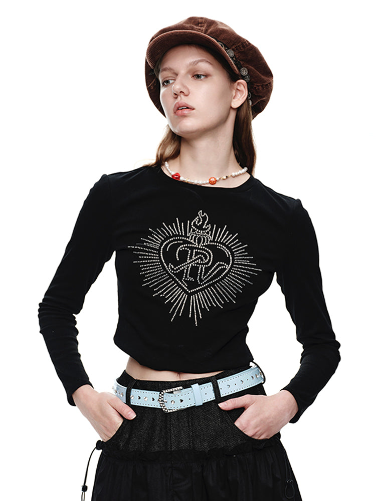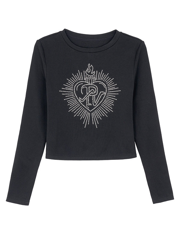 Bijou Round-Neck Casual Retro Long-T-Shirt