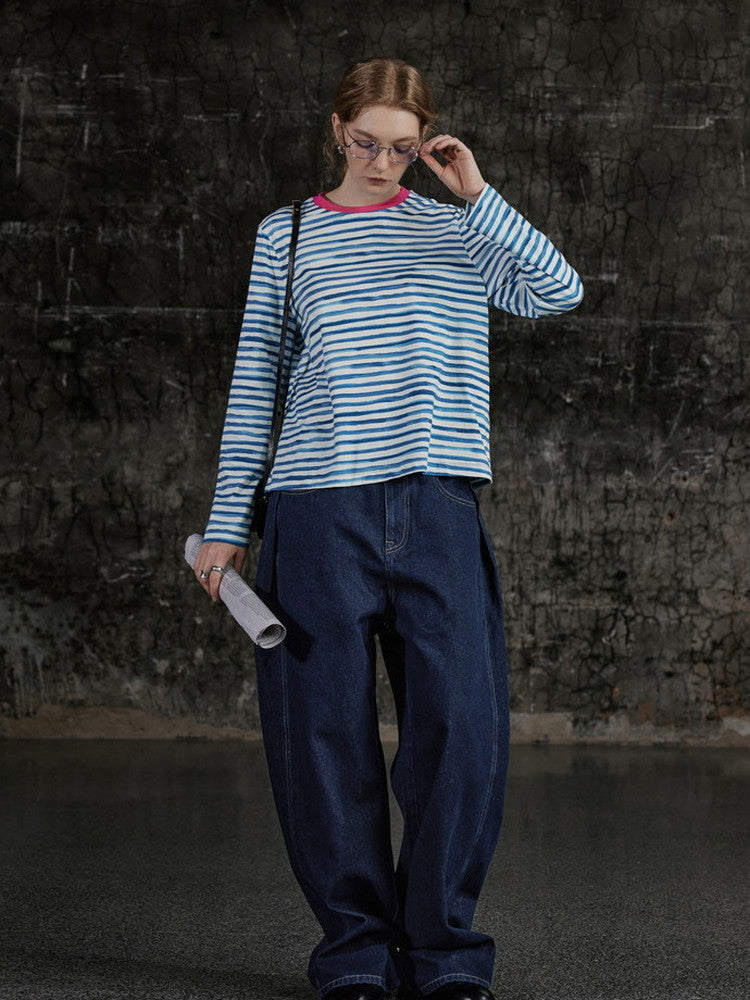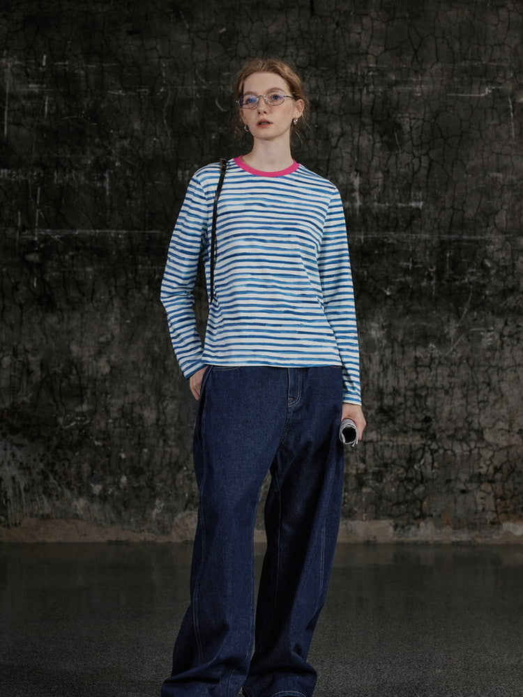 Border Marine Casual Refreshing Crew-Neck Long-T-Shirt