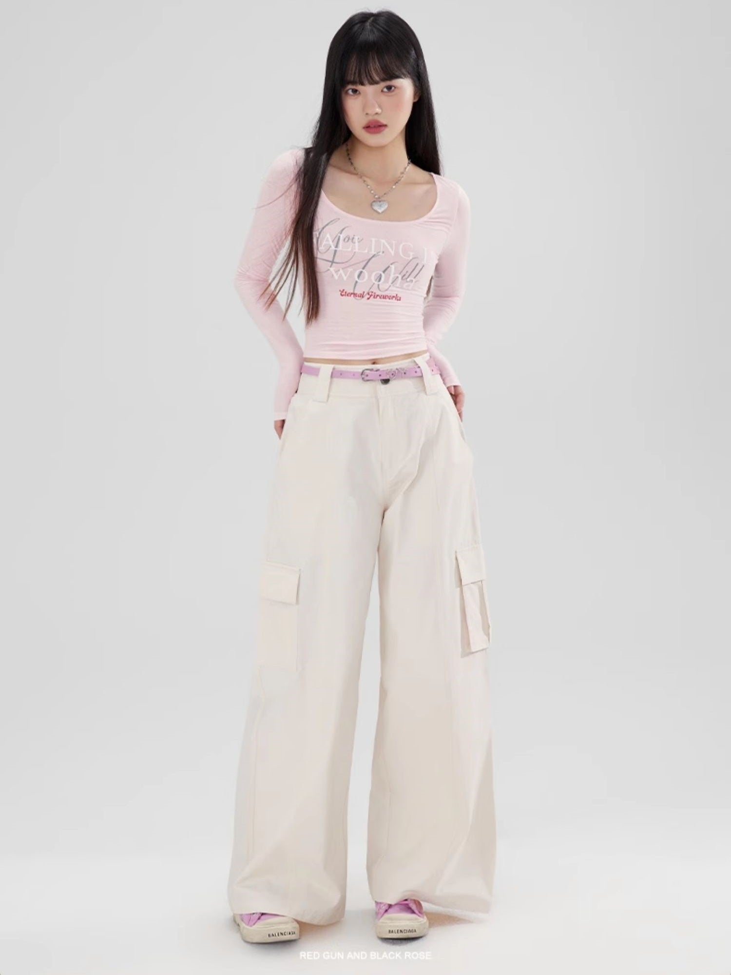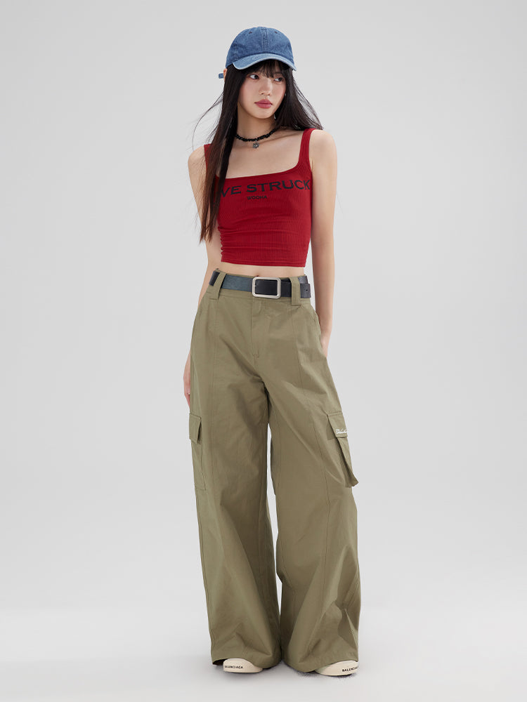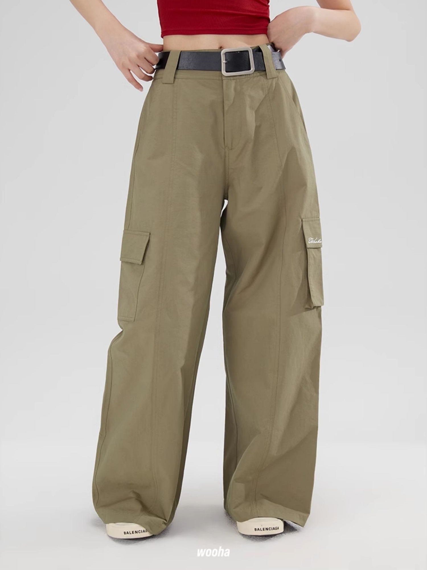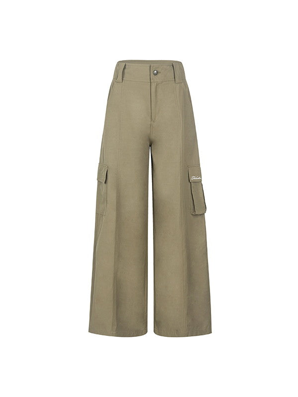 Casual Wide-Leg Side-Pocket Straight Plain Wide-Pants