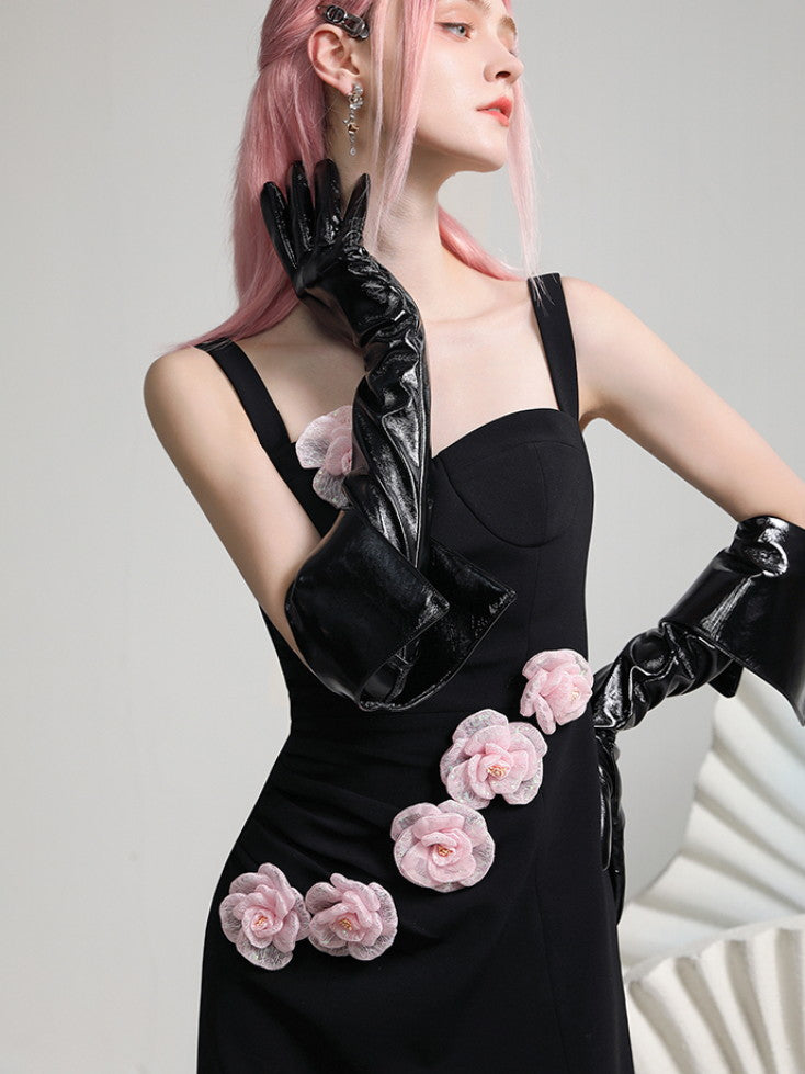 Ciffon-Flower Monotone Elegant No-Sleeve One-Piece