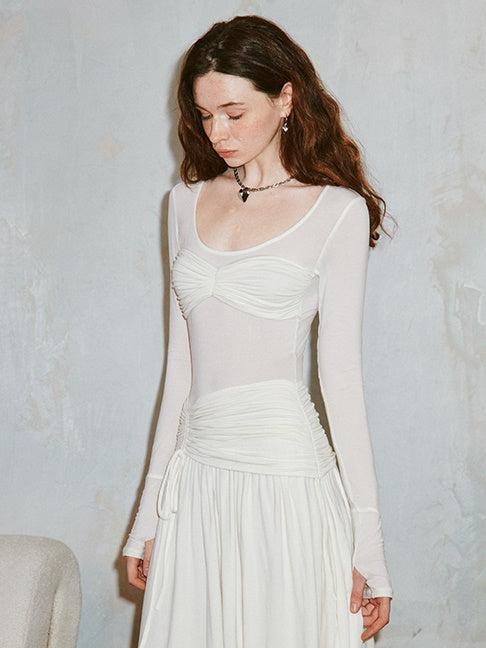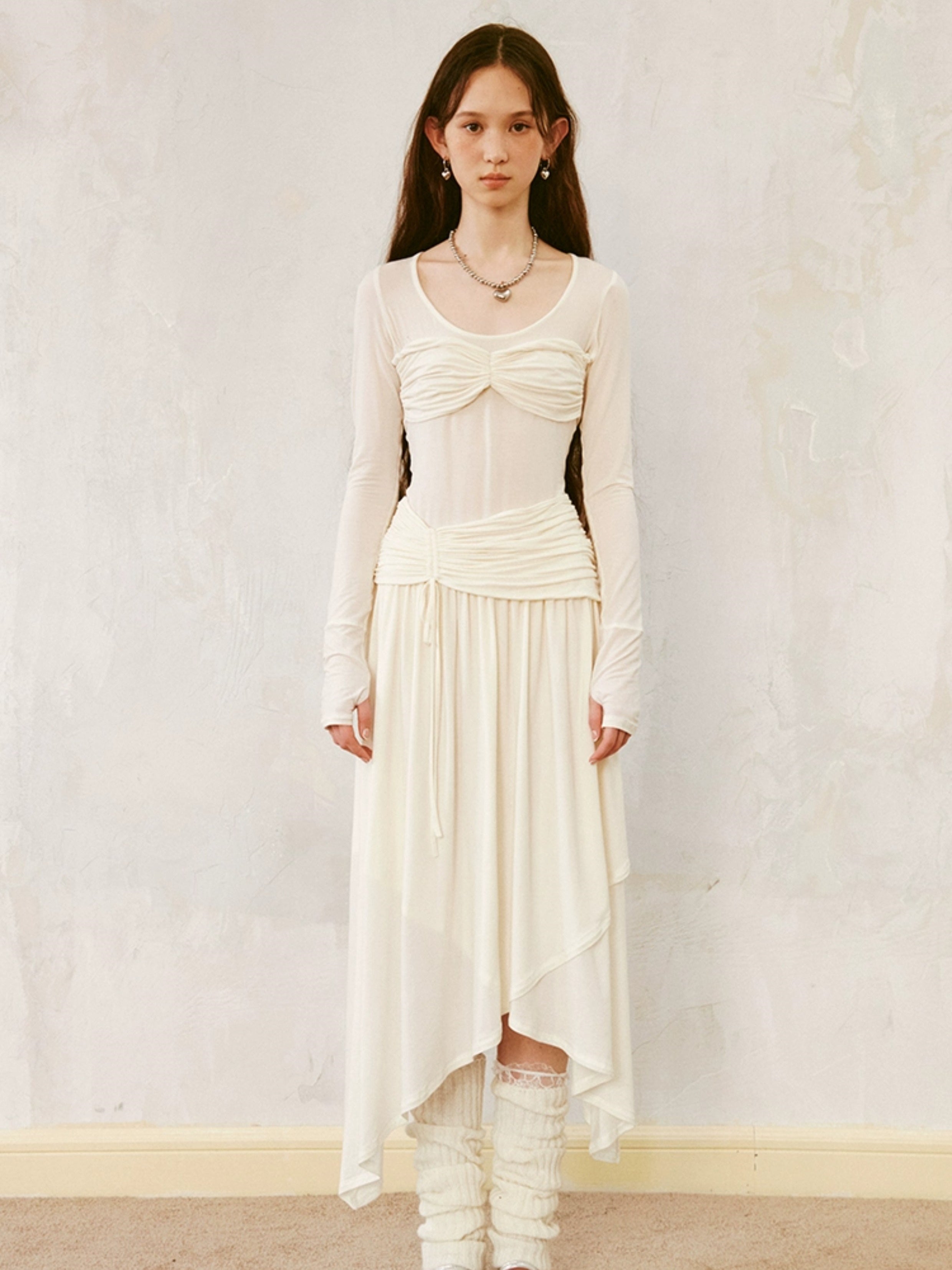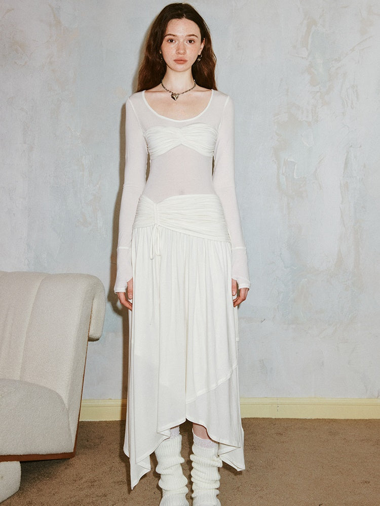 Classic Irregular Hem Long-sleeved Sheer Dress