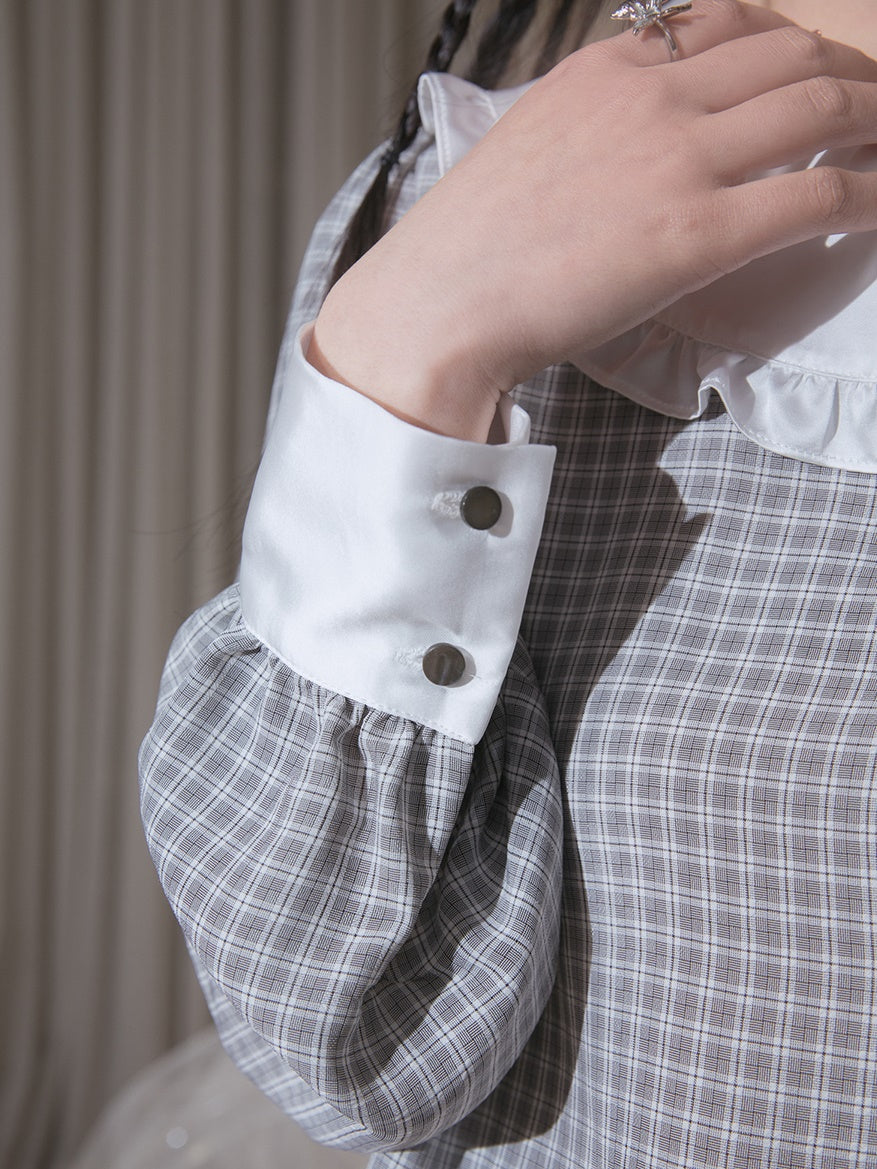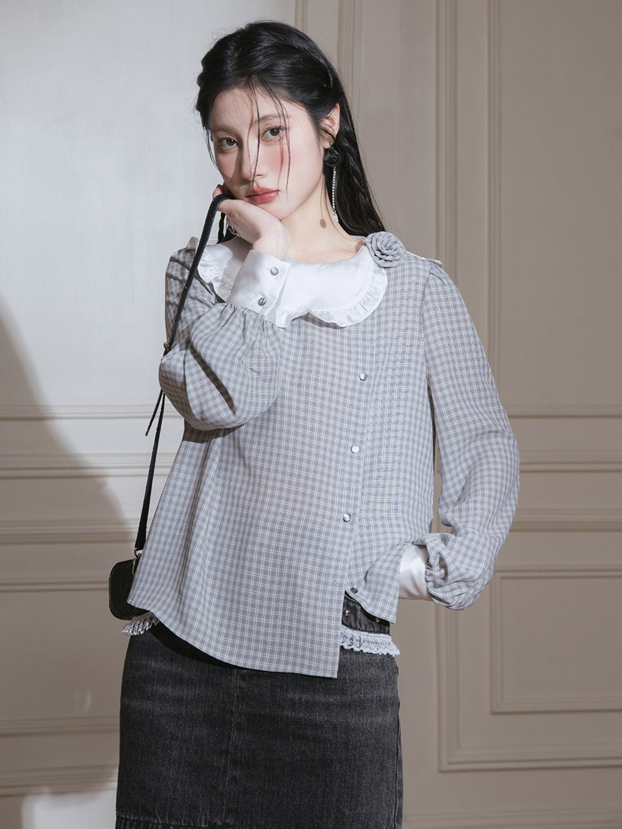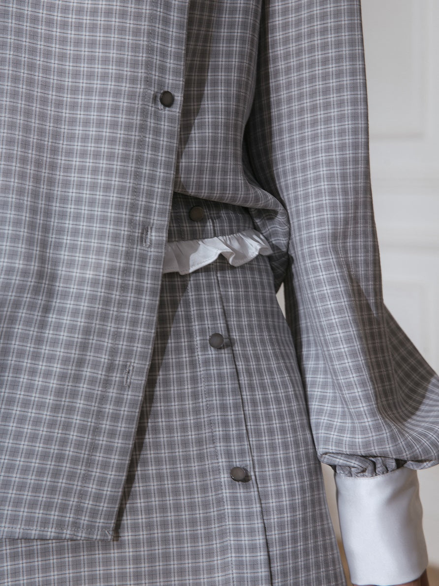 Contrast Color Plaid Shirt & Asymmetry Skirt Set-up