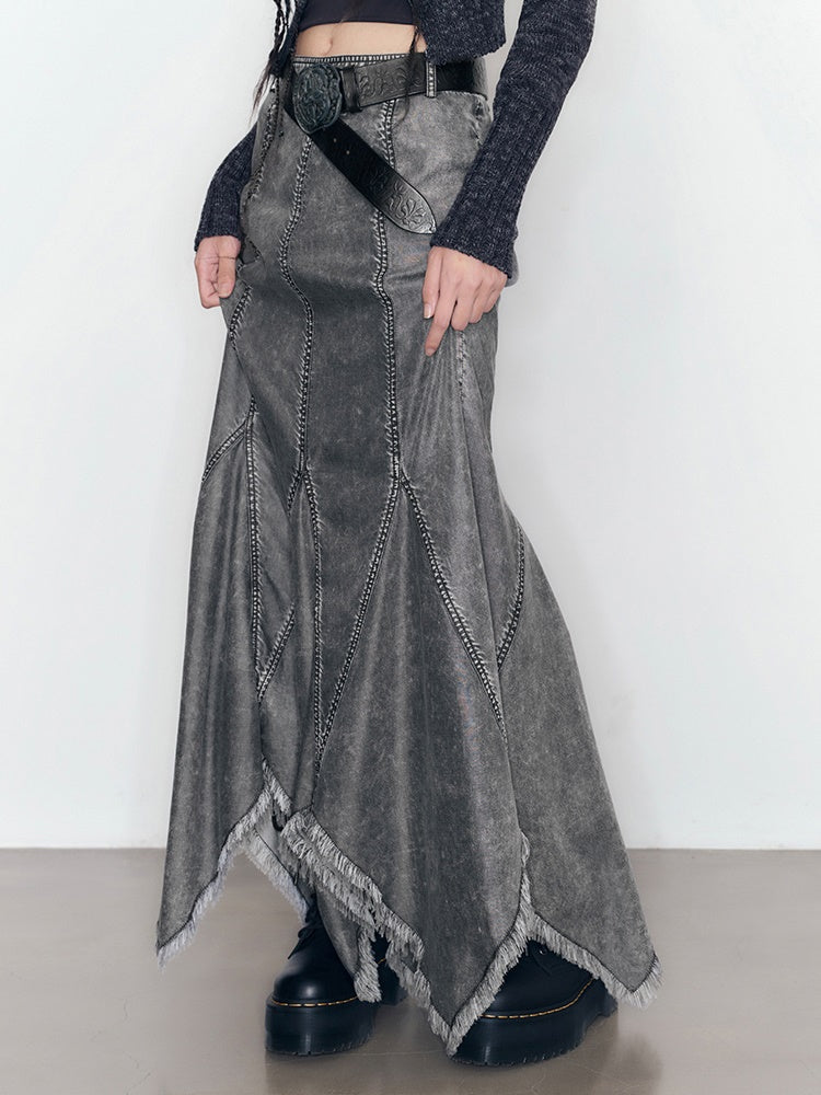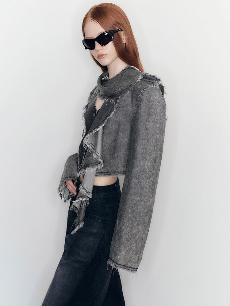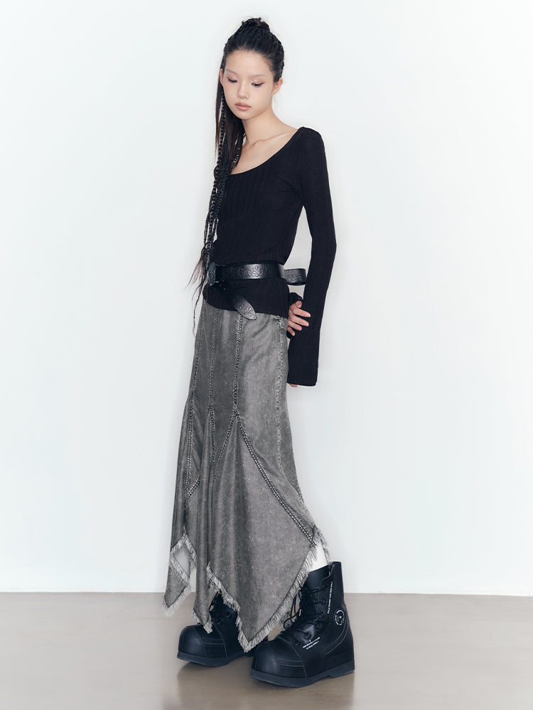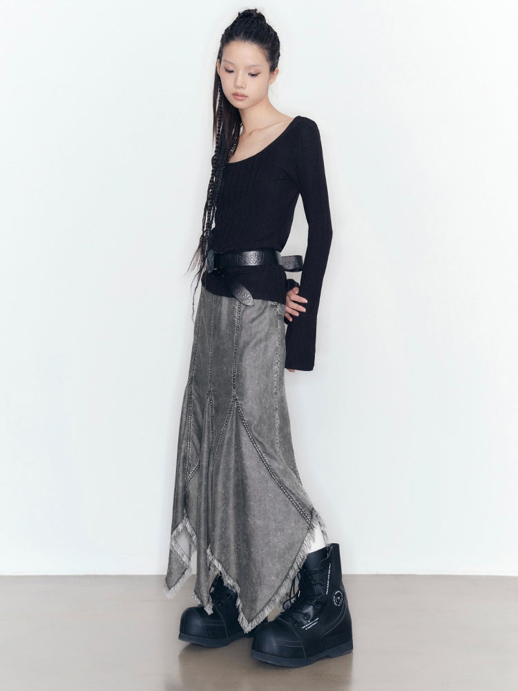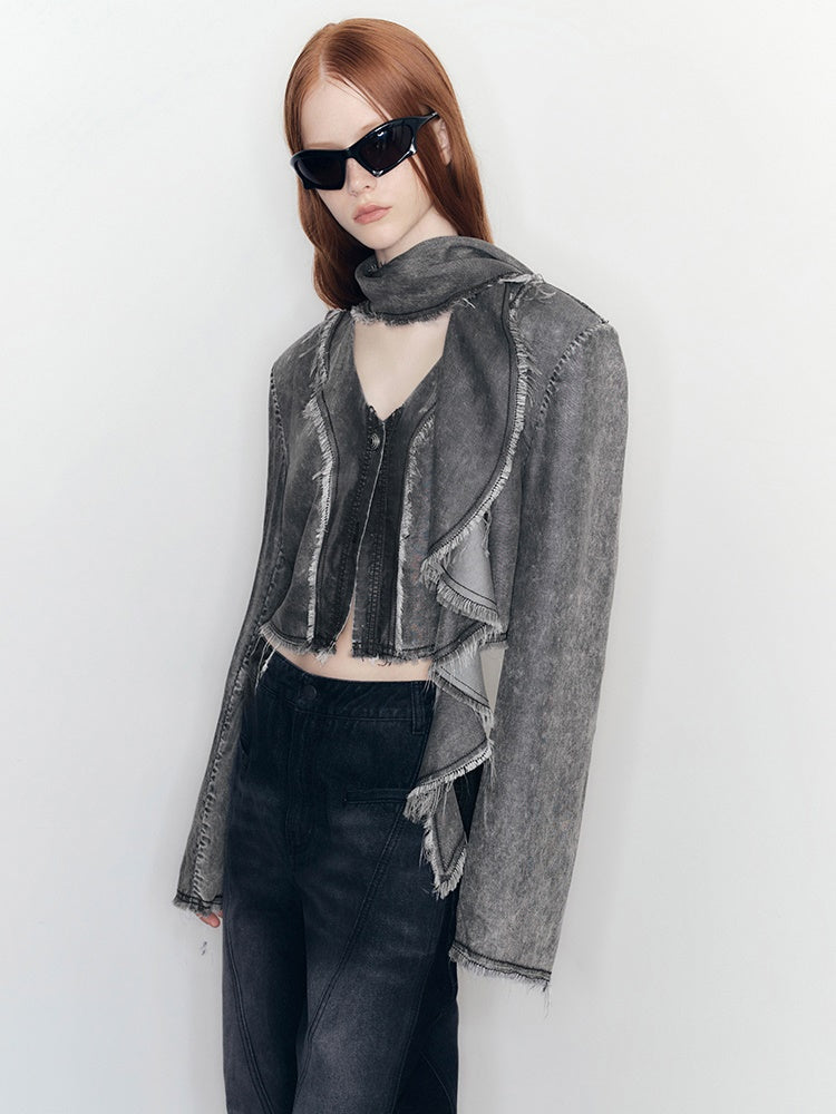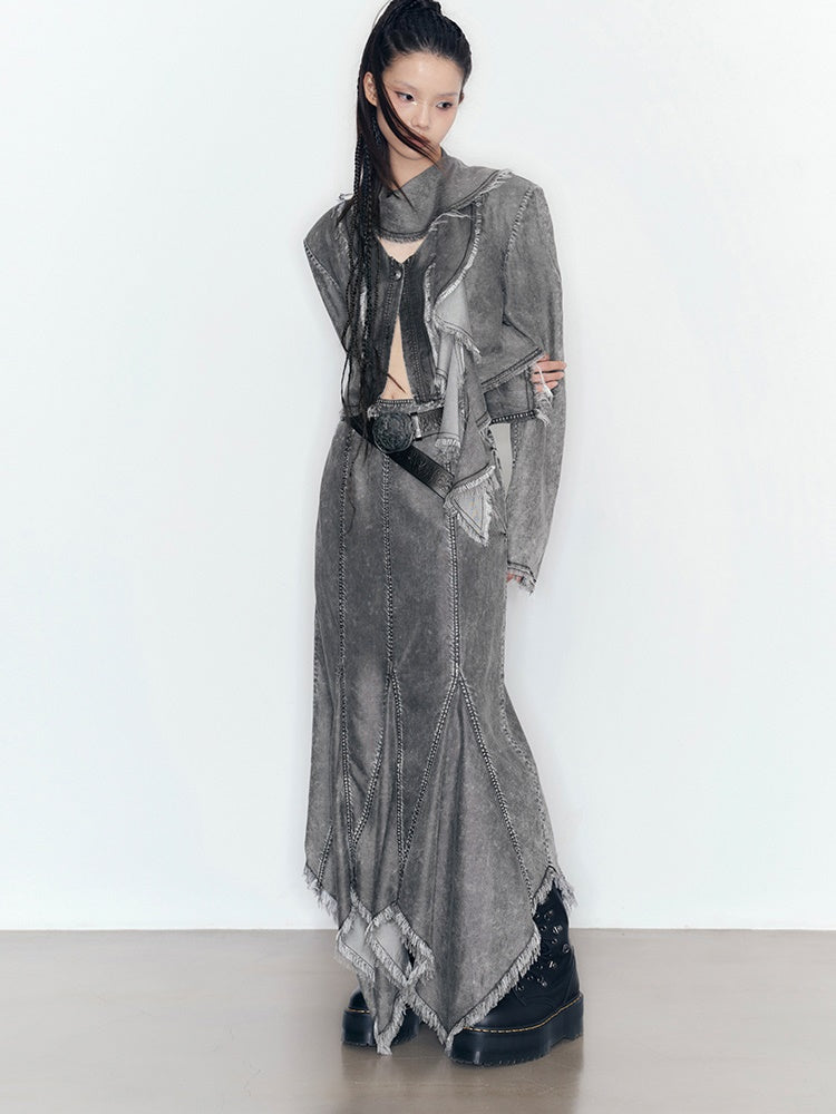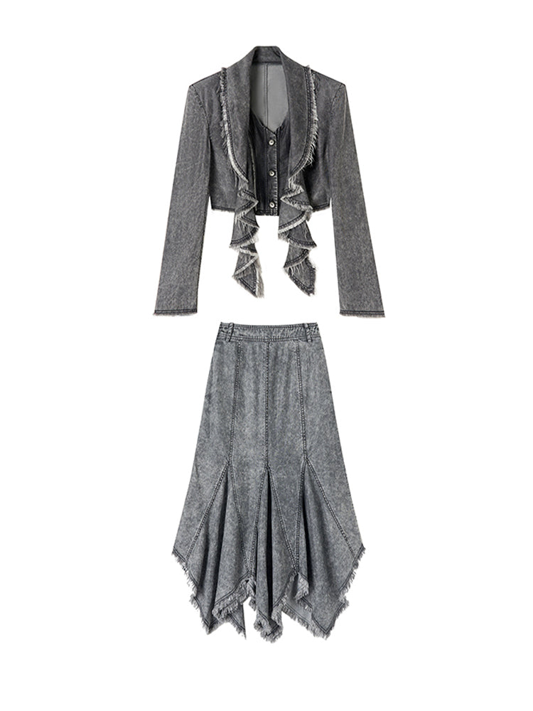 Denim Tassel Casual Ruffle Tops&Skirt