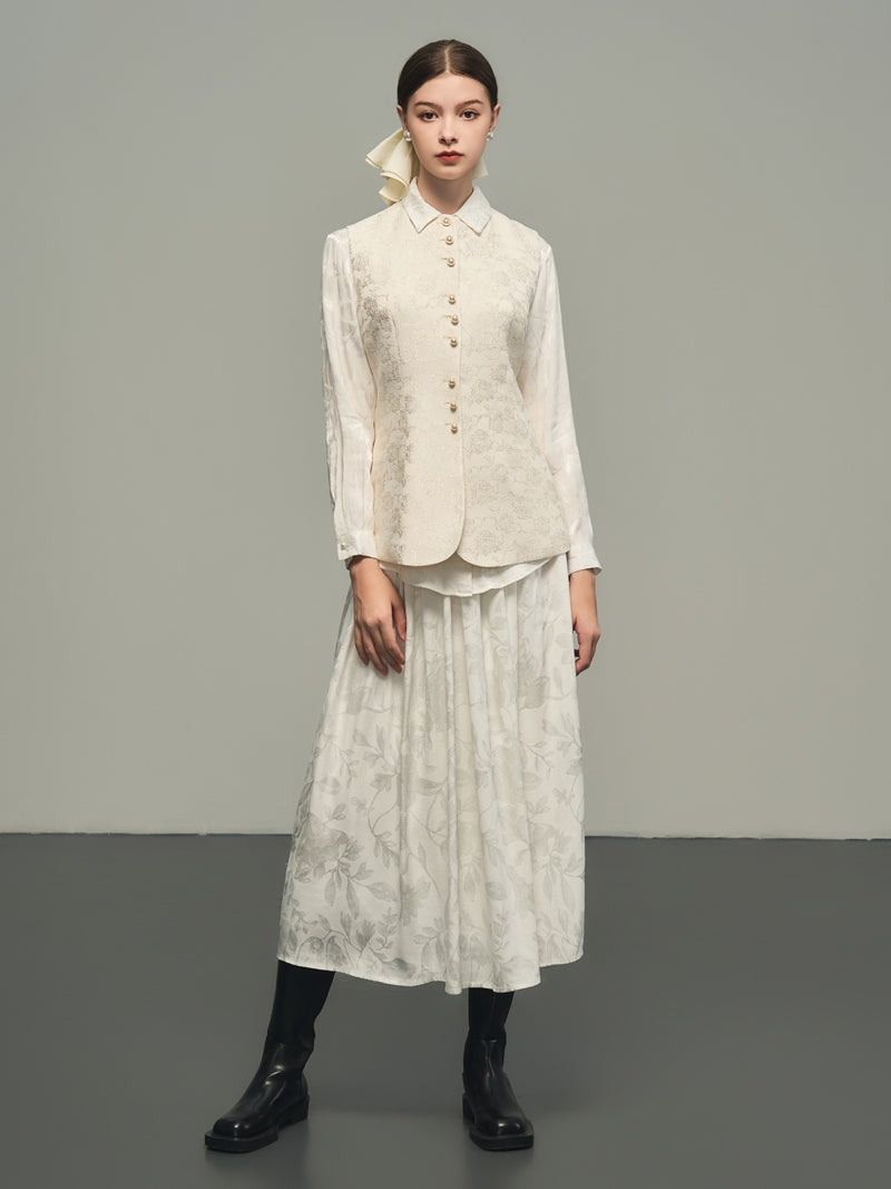 Embroidery Flower Eleagnt Feminine Set-Up Vest&Long-Skirt