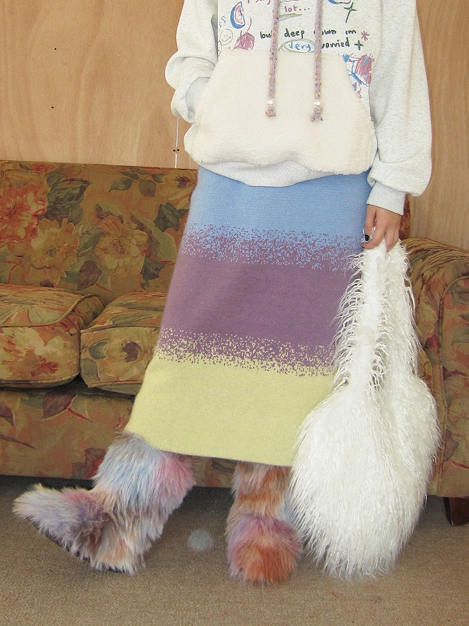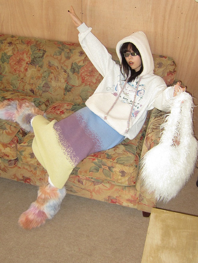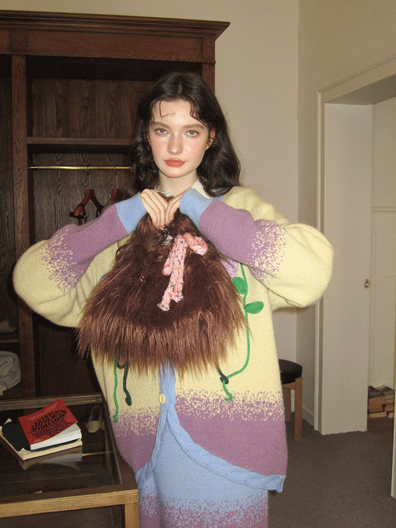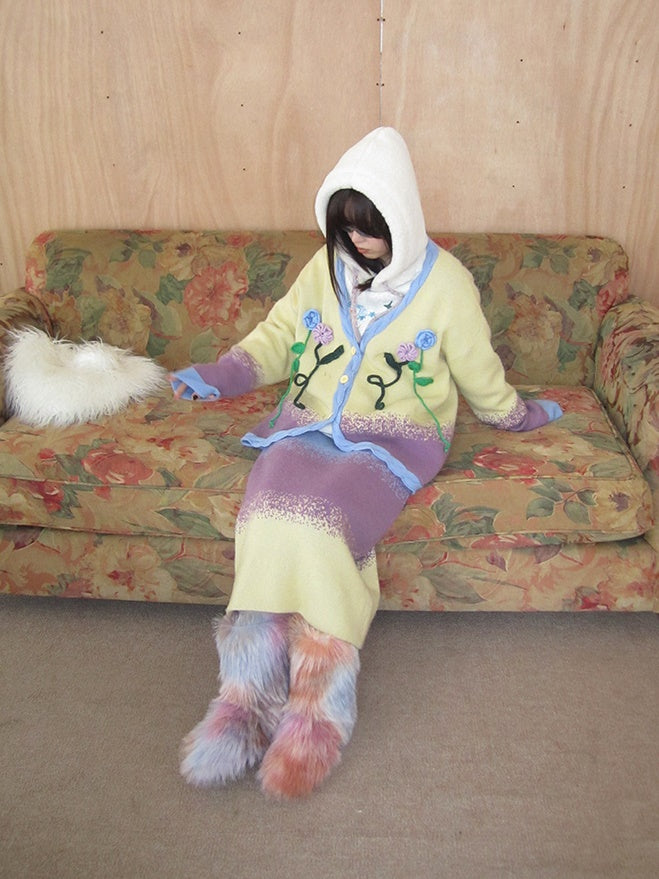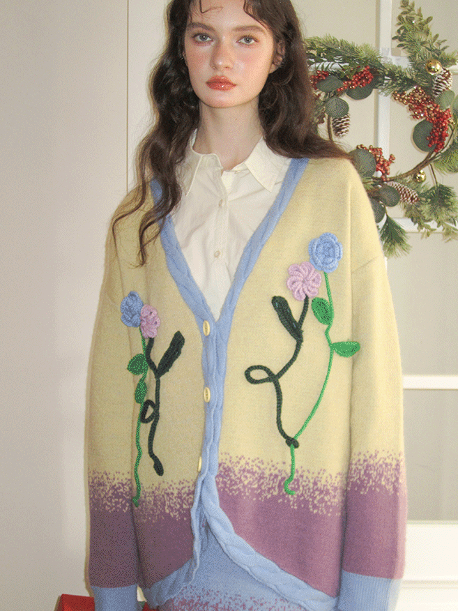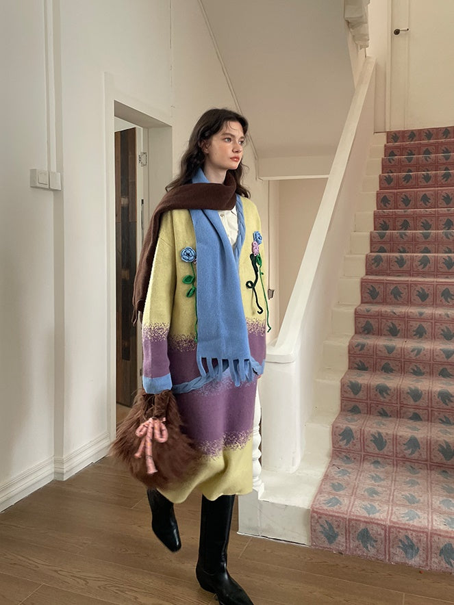 Embroidery Flower-Motif Vintage Retro Gradation Cardigan&Long-Skirt