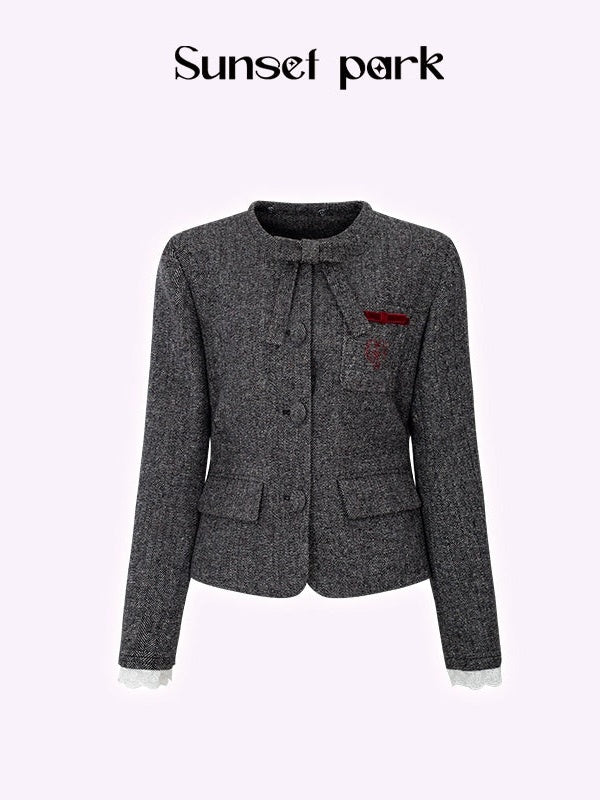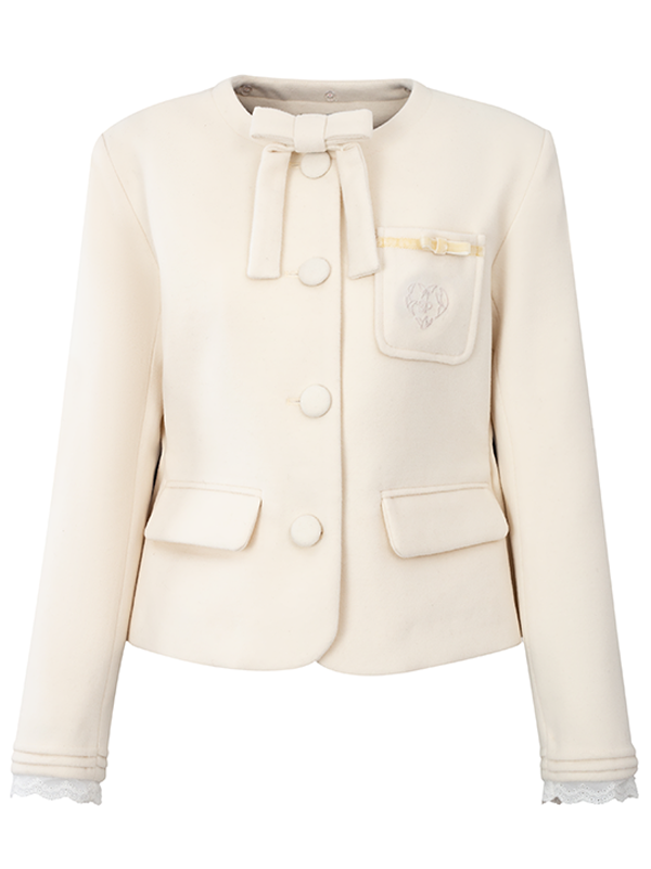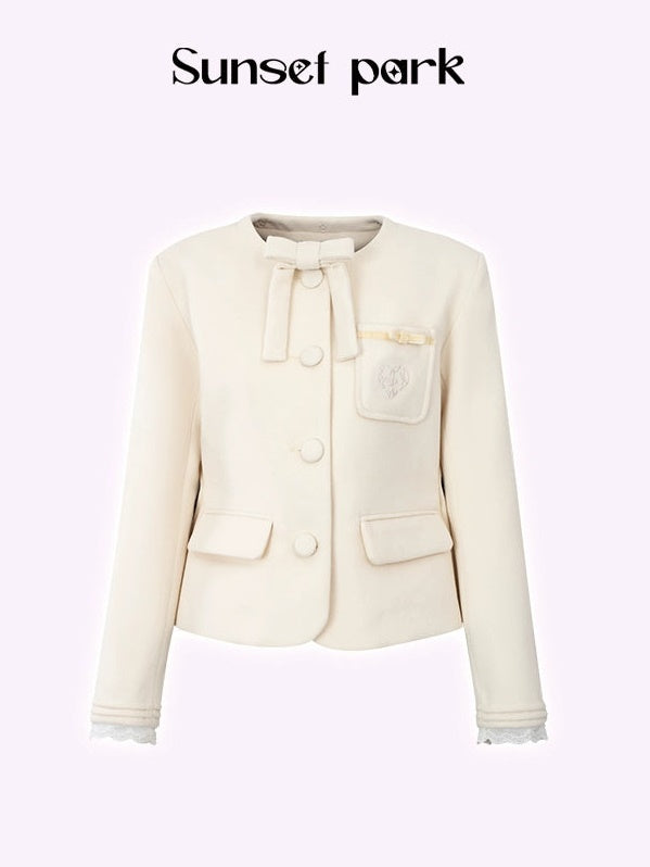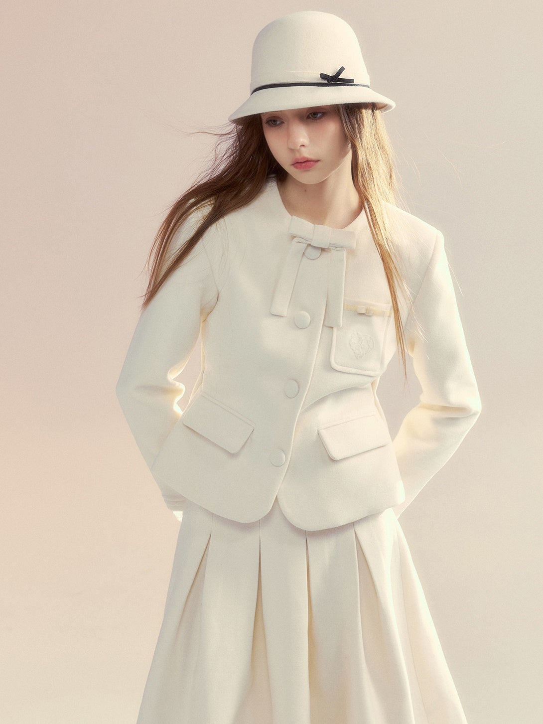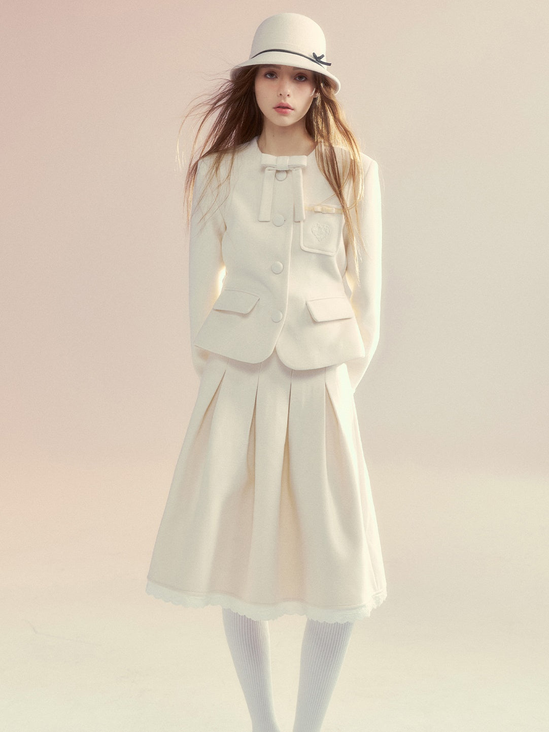 Embroidery Ribbon Short Jacket & Mid-Length Tuck Pleated Skirt
