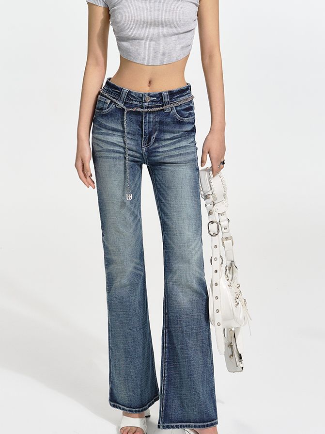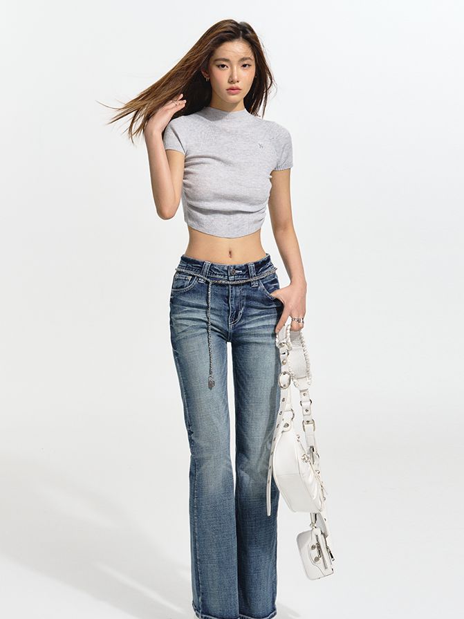 FADED DENIM STRAIGHT CASUAL PANTS