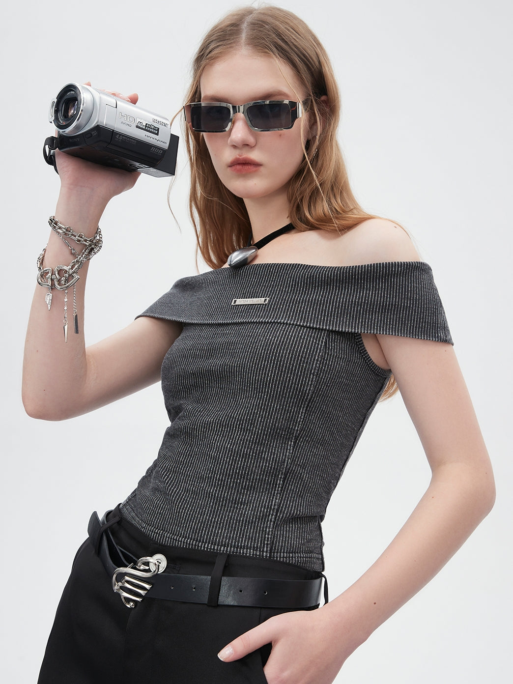 Flap Off-SHOULDER SUMMER-KNIT BARE-TOP