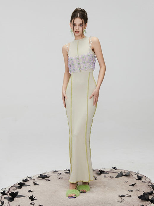 Floral Two-Piece slim slim slim slemes Long Dress