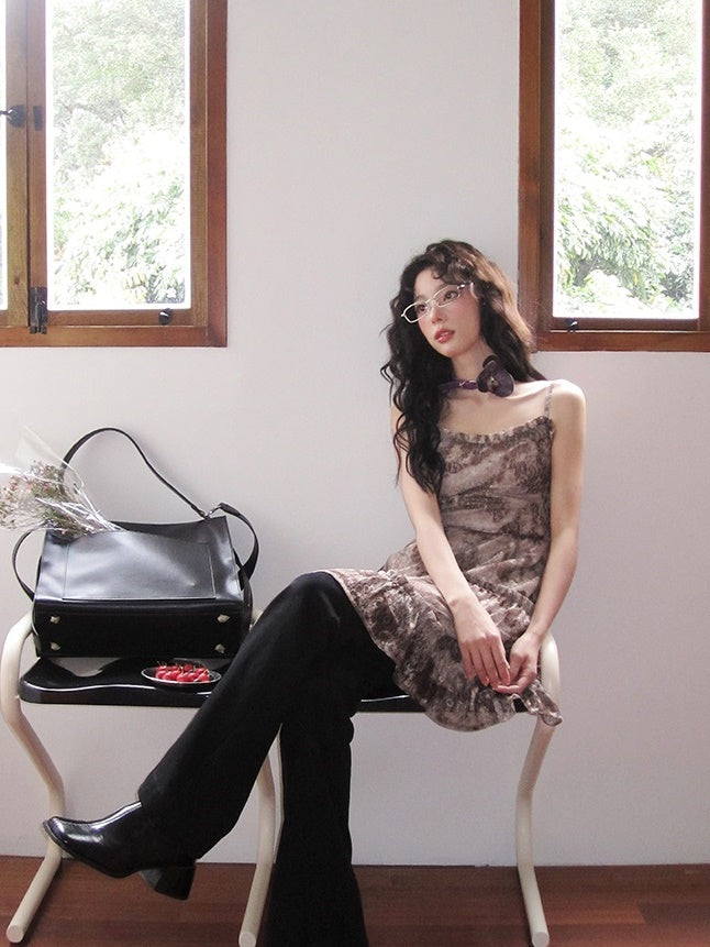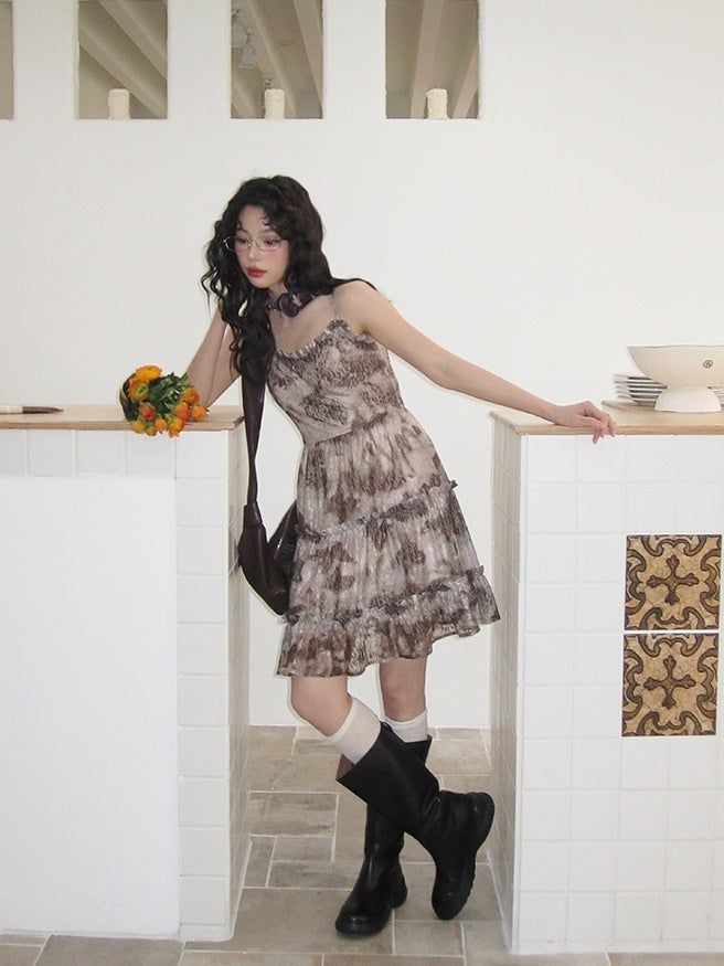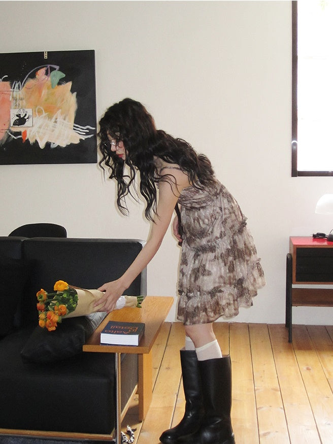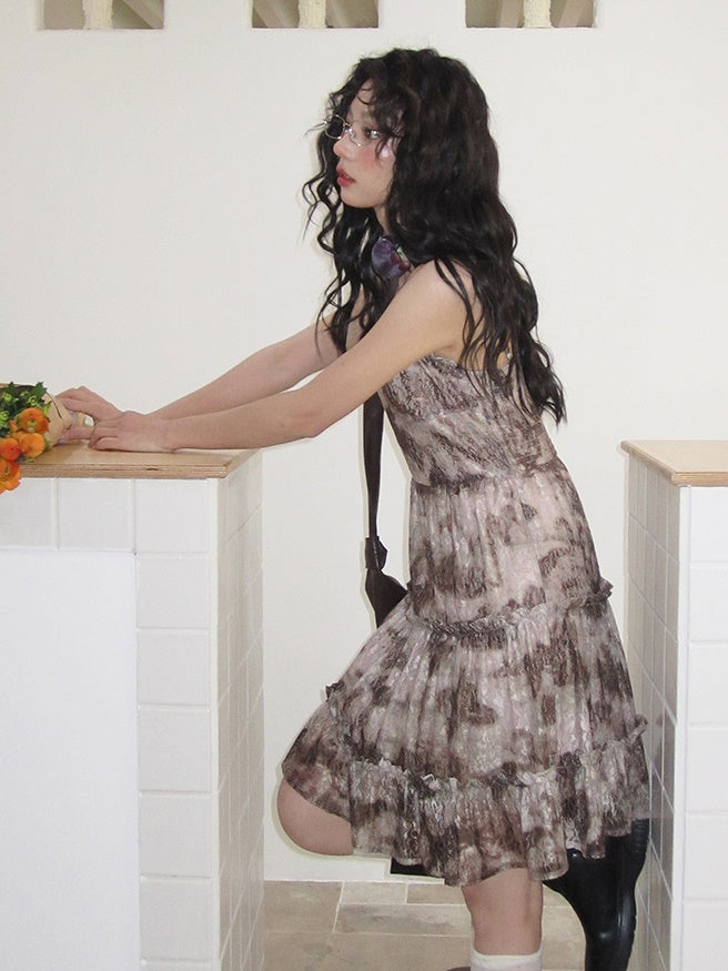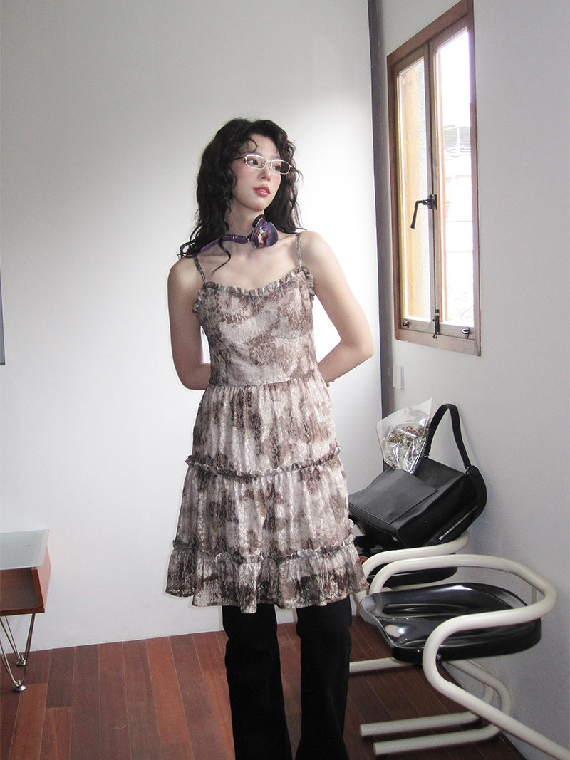 Flower-Lace Mesh Camisole Tiered Frill One-Piece