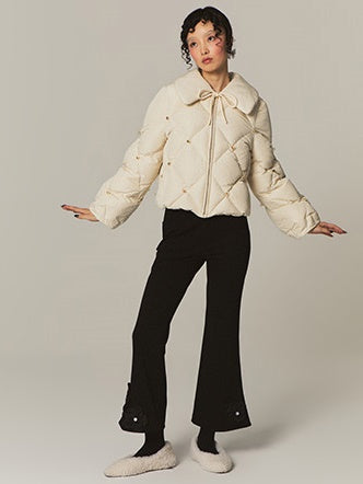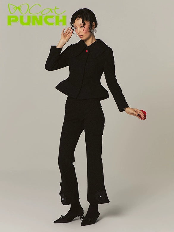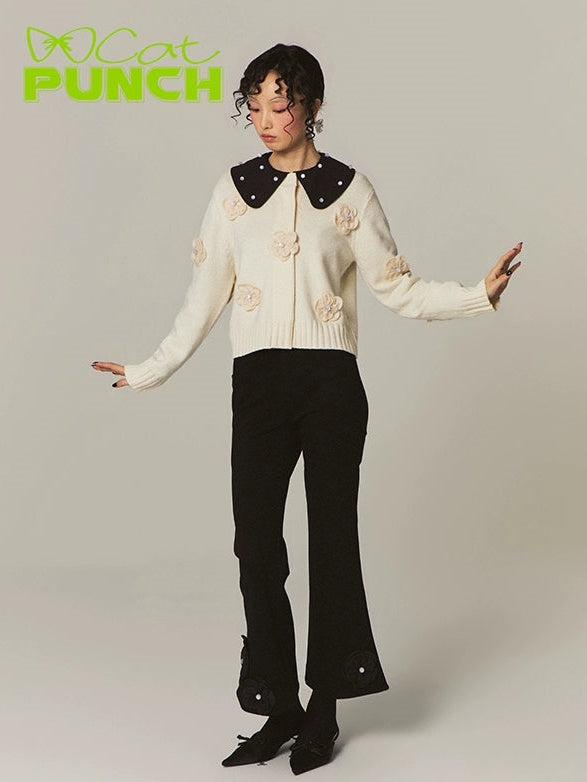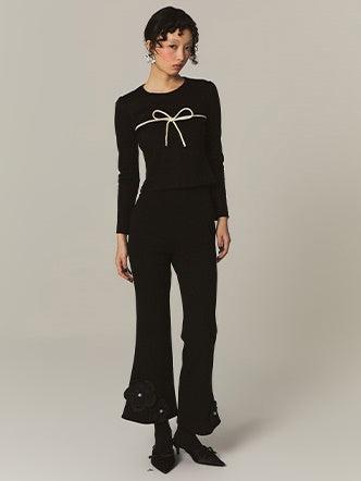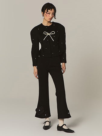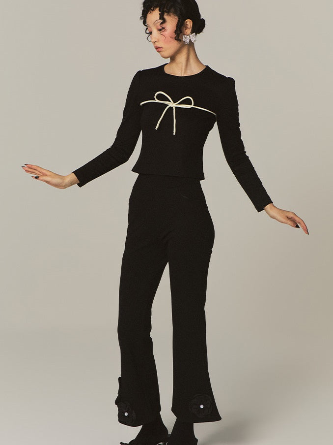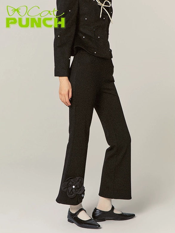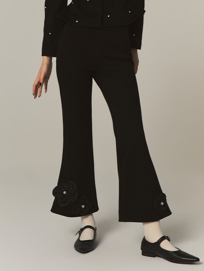 Flower Stitch Slim High Waist Flare Pants