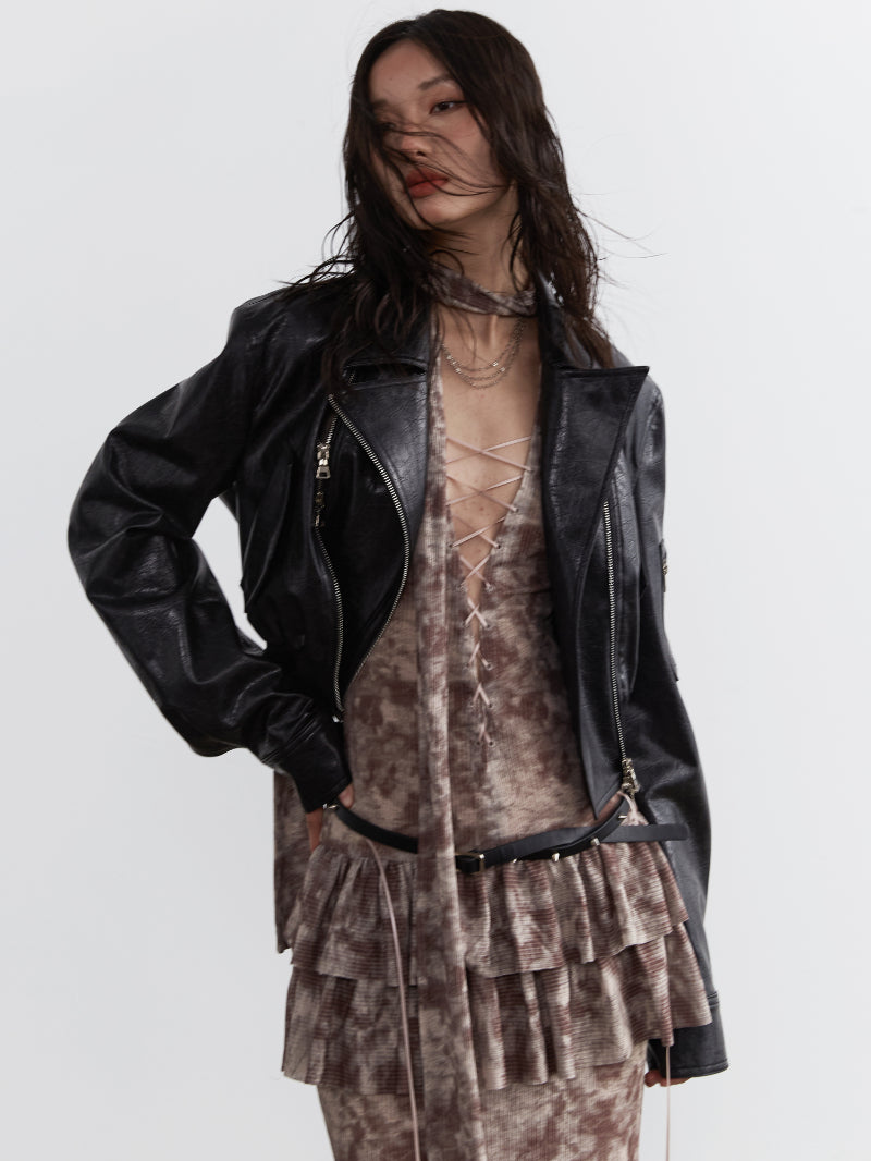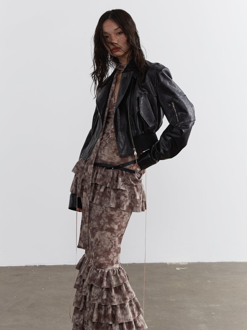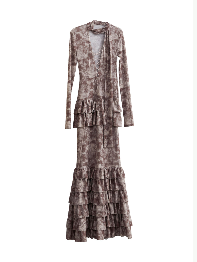 Flower Tiered Frill Retro Tight Lace-Up Cake One-Piece