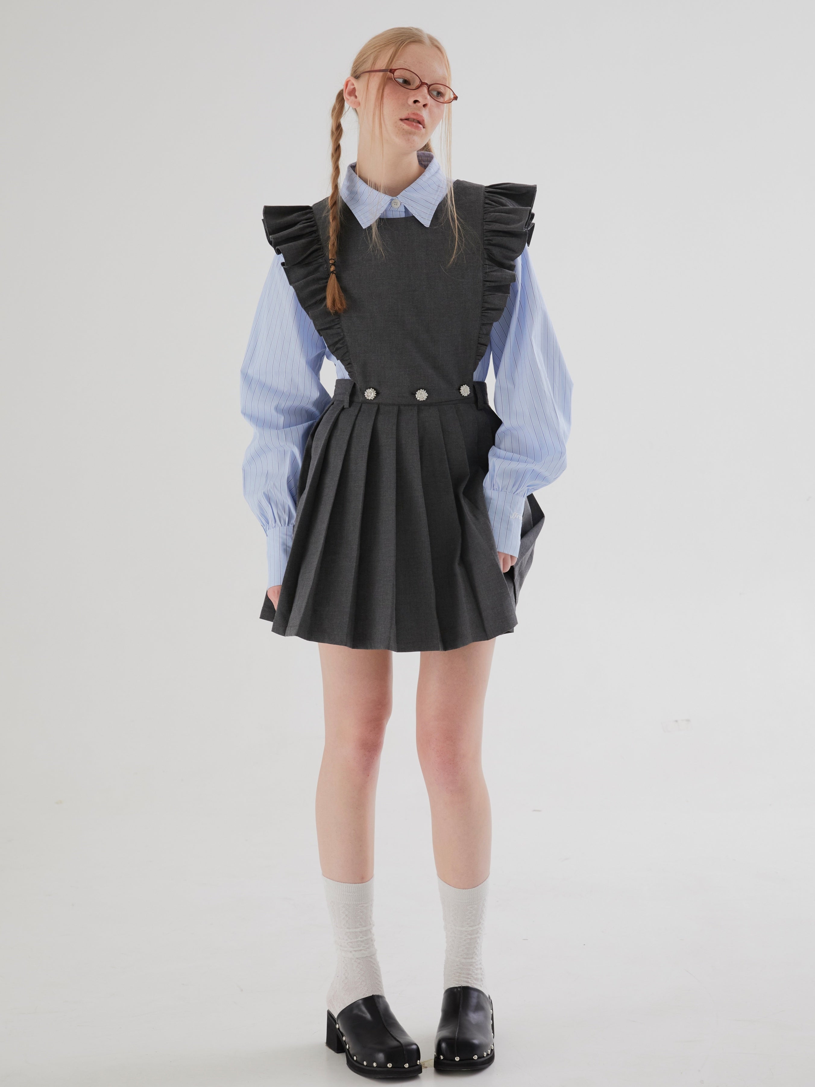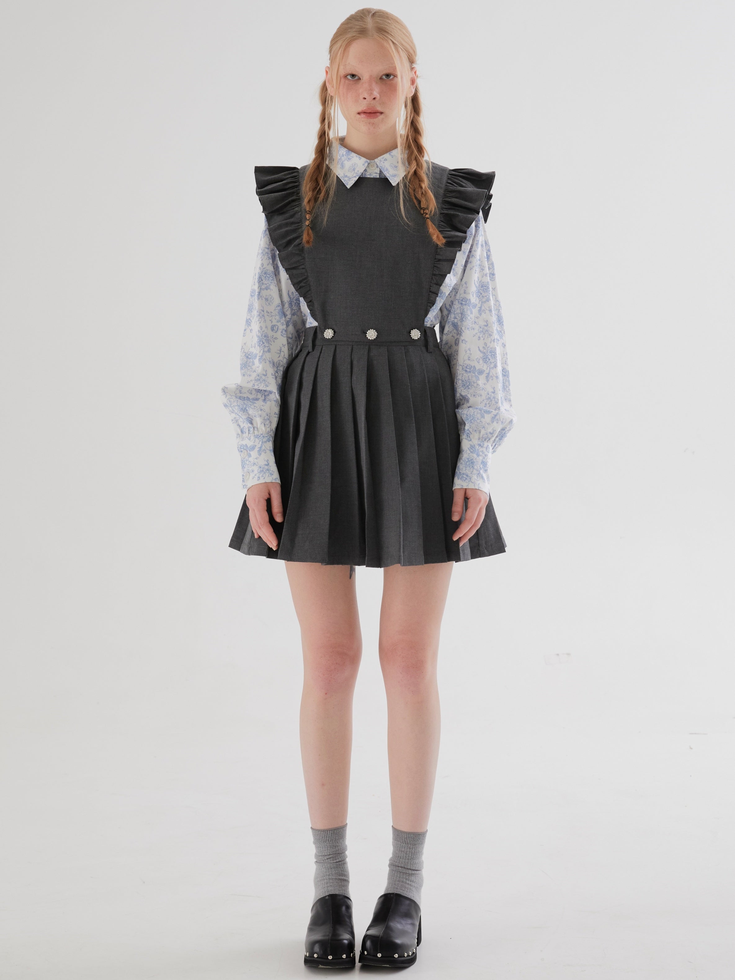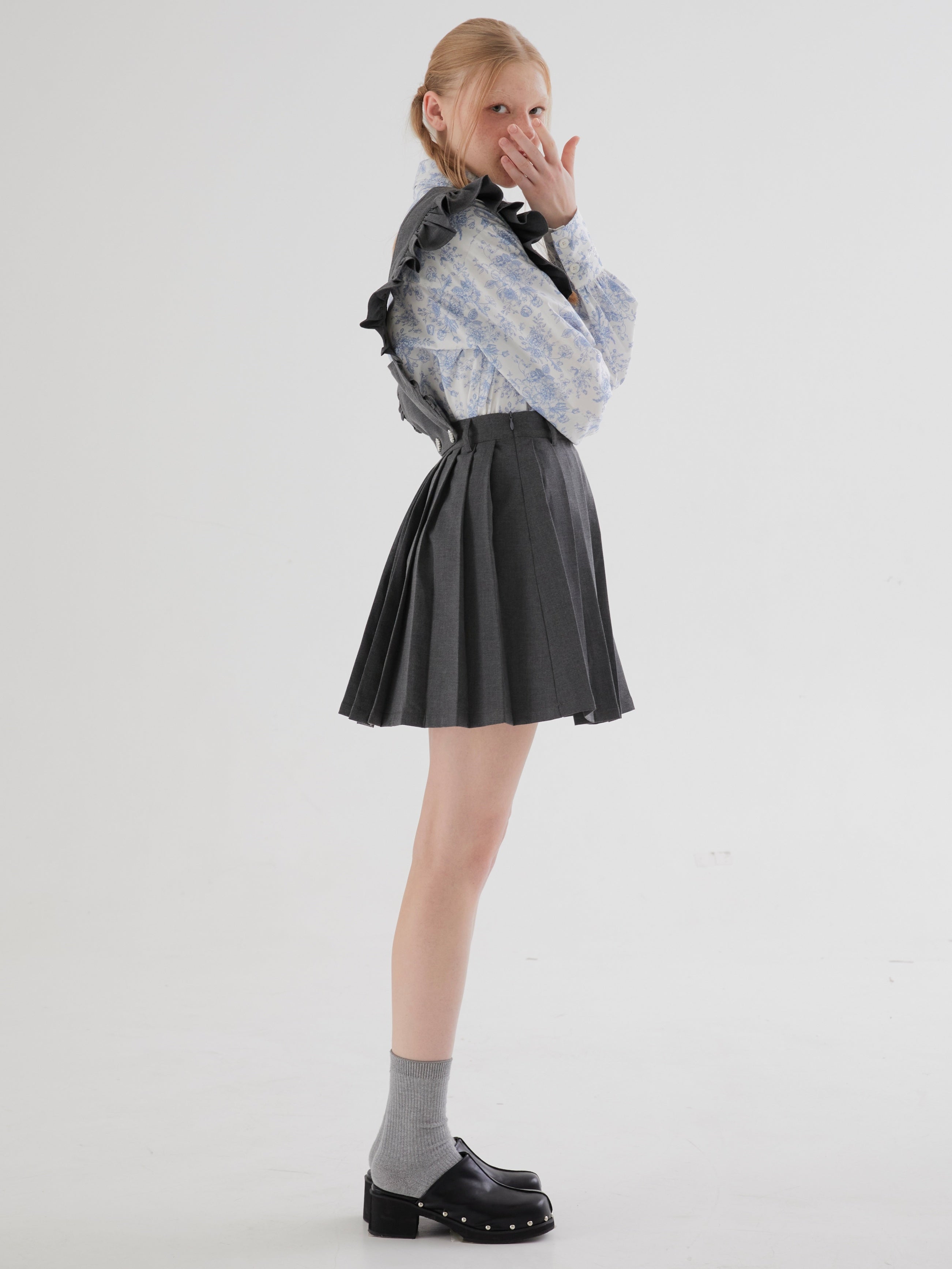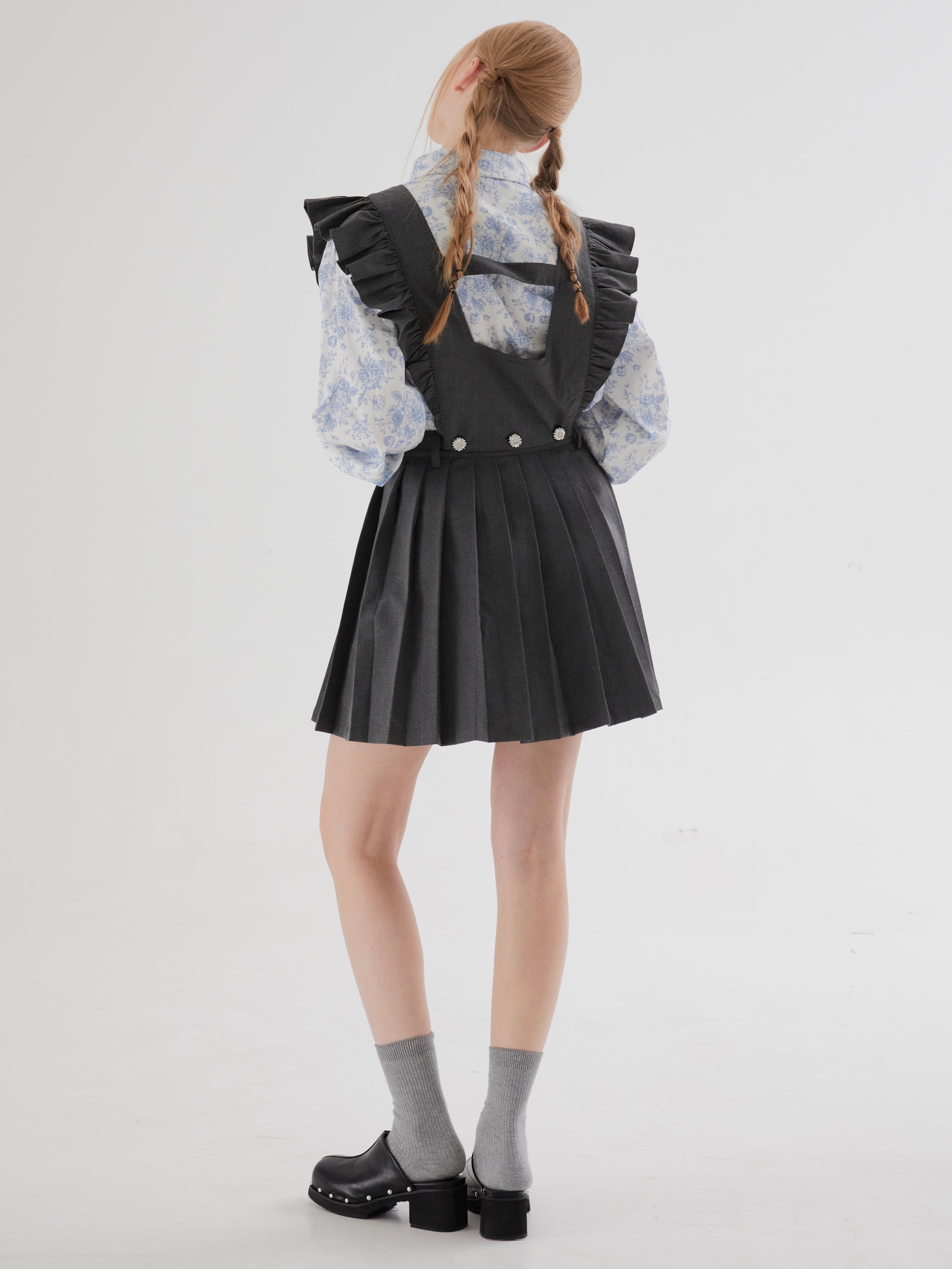Flying Sleeve Detachable Pleated Reversible Skirt