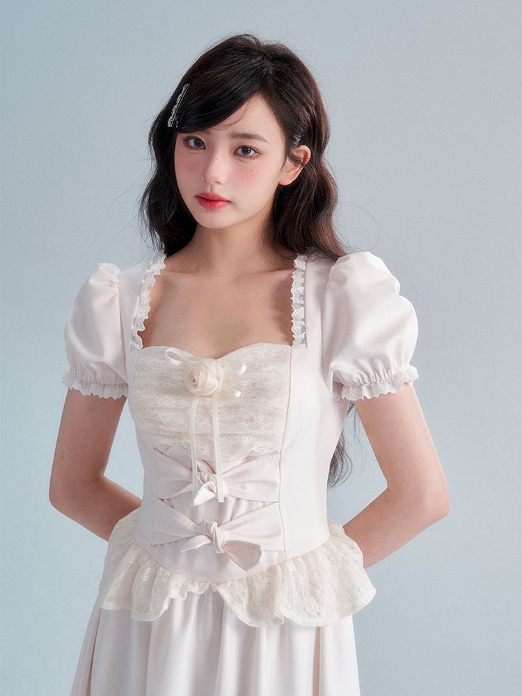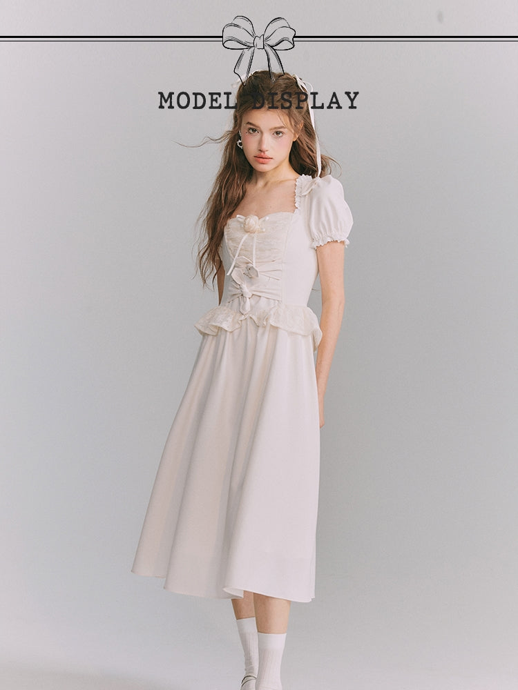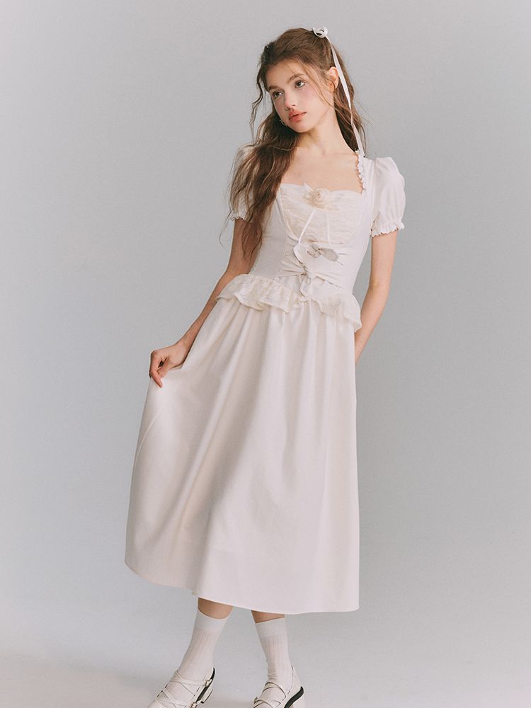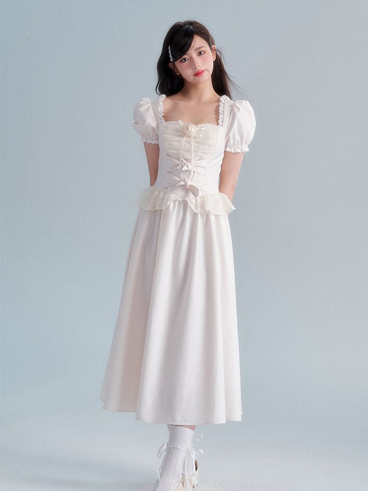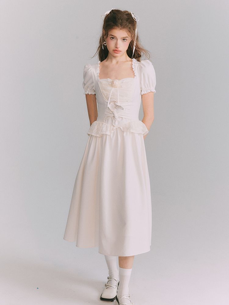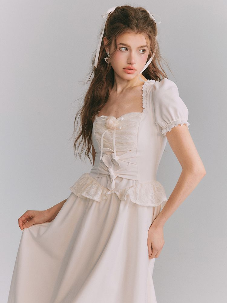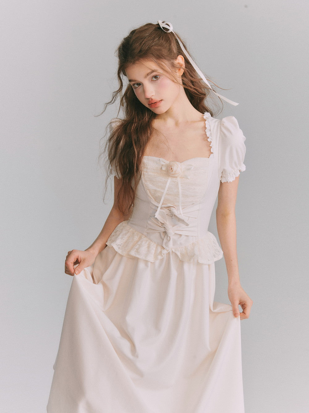 Frill Lace Princess Long Flare Sweet ONE-PIECE