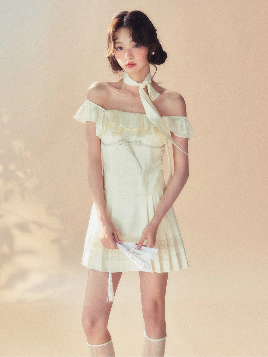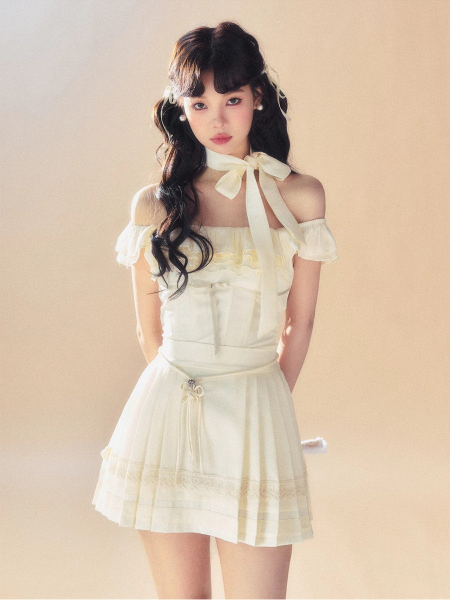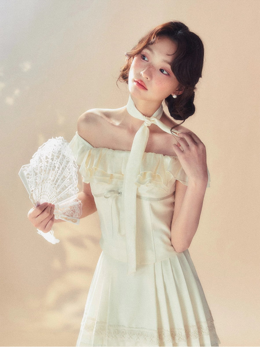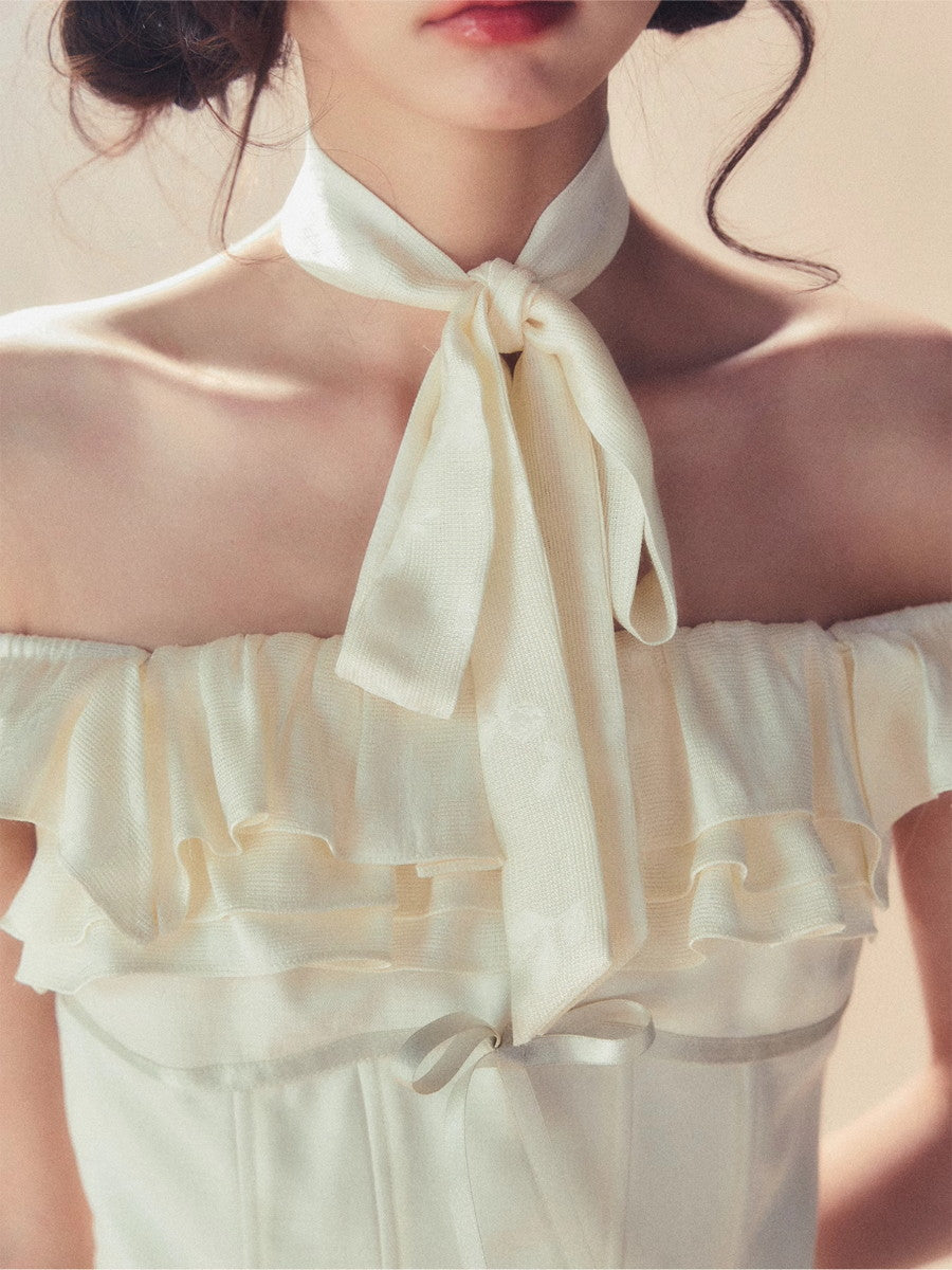 Frill Ribbon Sweet Curve Off-Shoulder Blouse