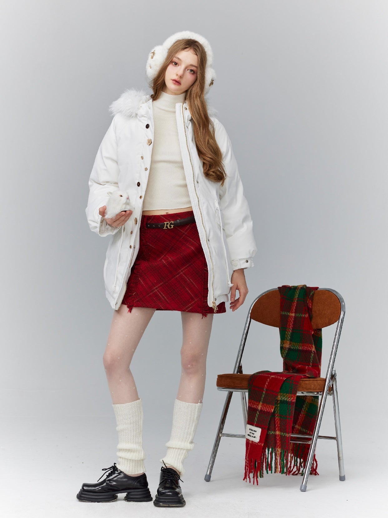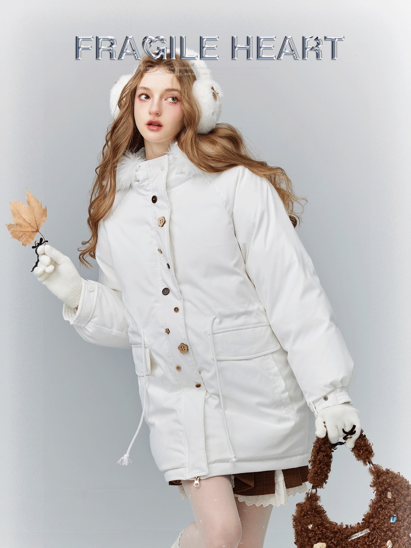Fuh-Hood Classy Middle Cotton Chic White Down-Jacket