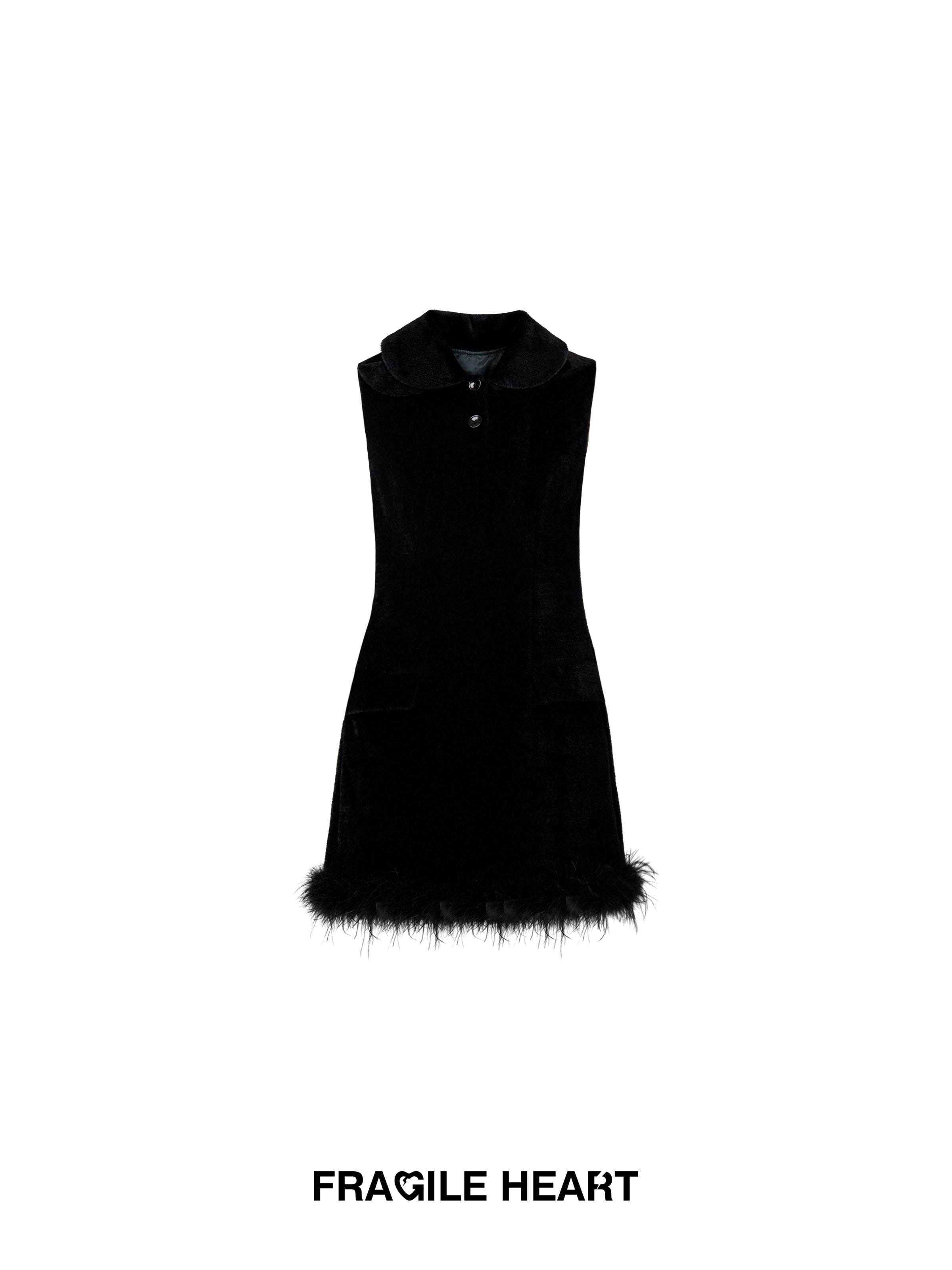 Fur Sleeveless Polo-Neck Cute Plain One-Piece