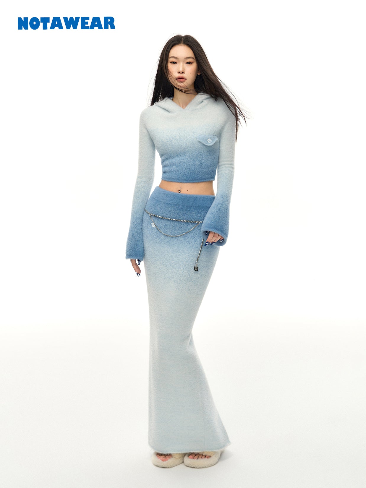 Gradation Knit Nichi Feminine Parka&Pencil-Skirt