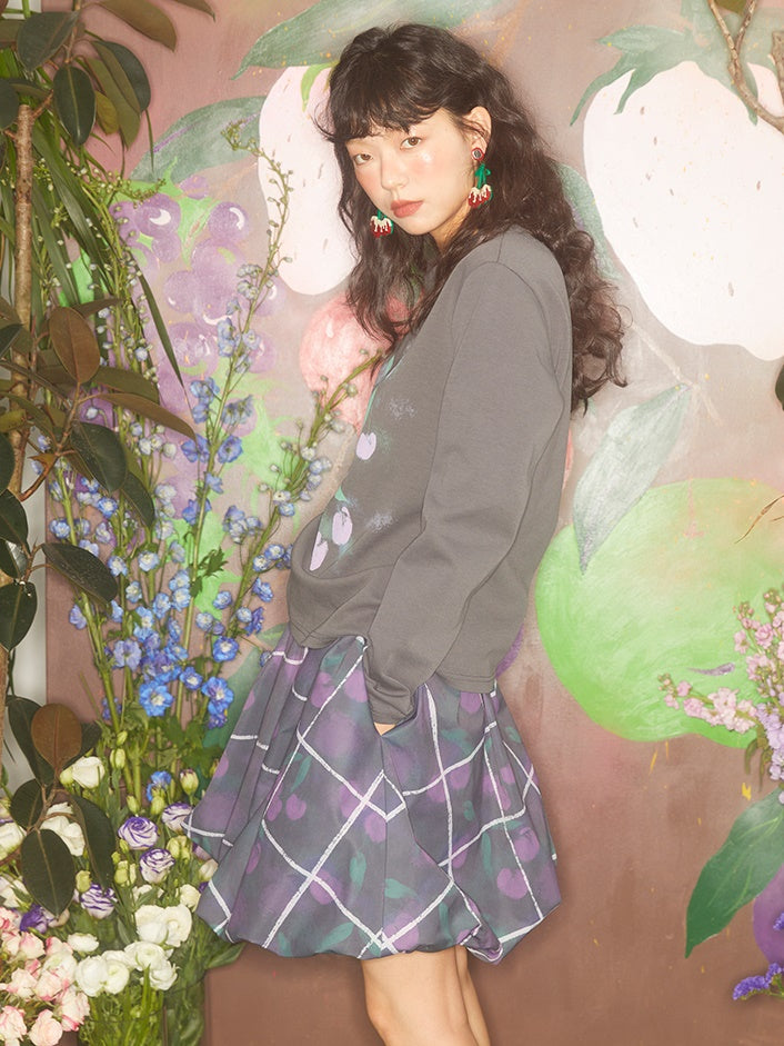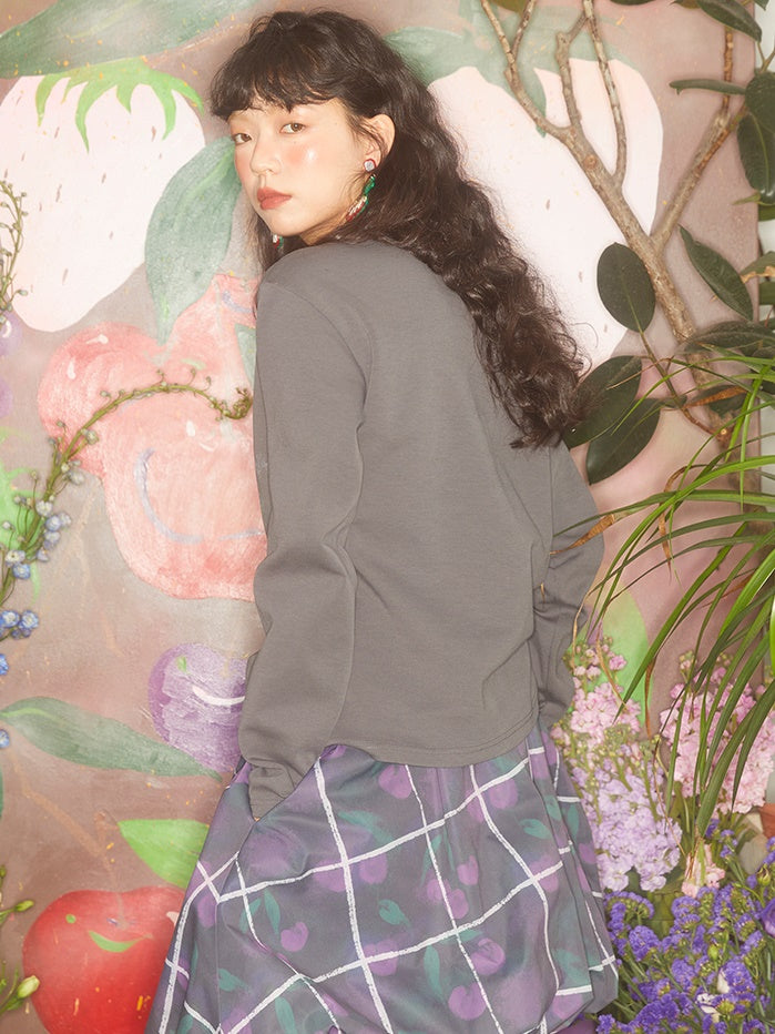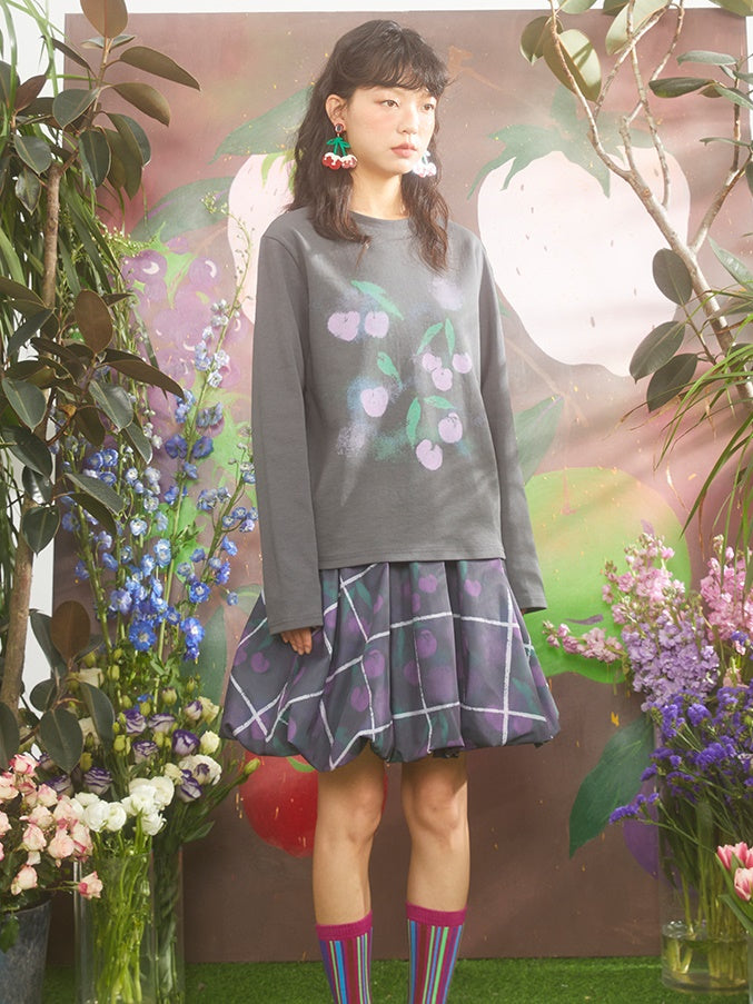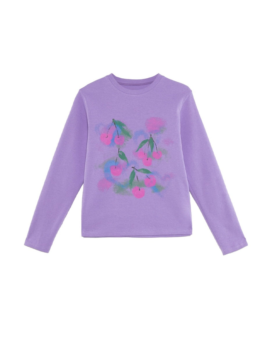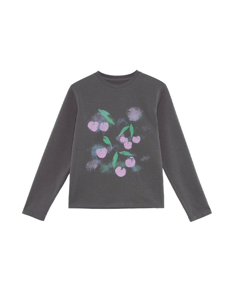 Gradient Cherry Print Round Neck Loose T-shirt