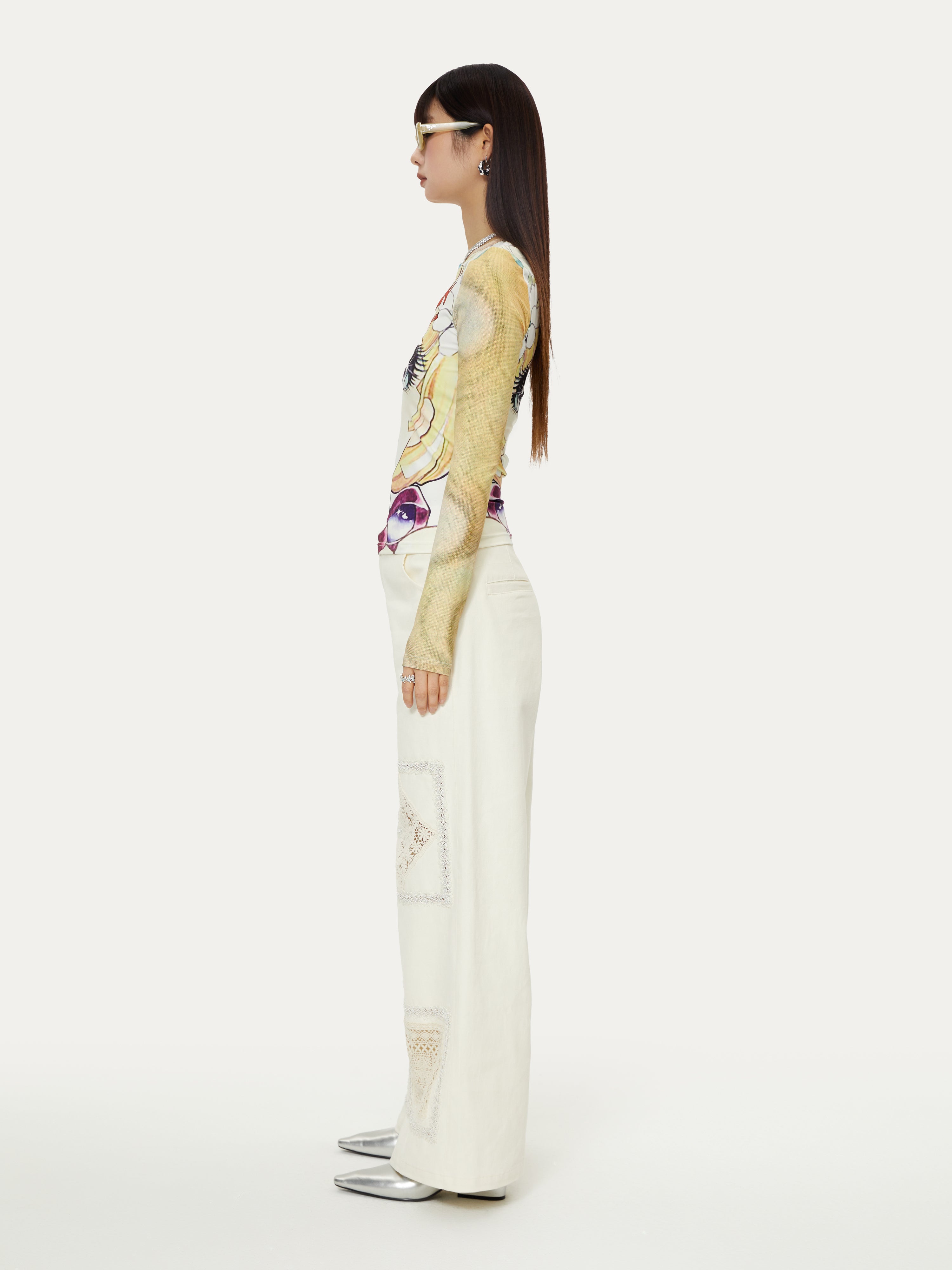 Hollow Lace Embroidered Patchwork Straight Wide-leg Pants
