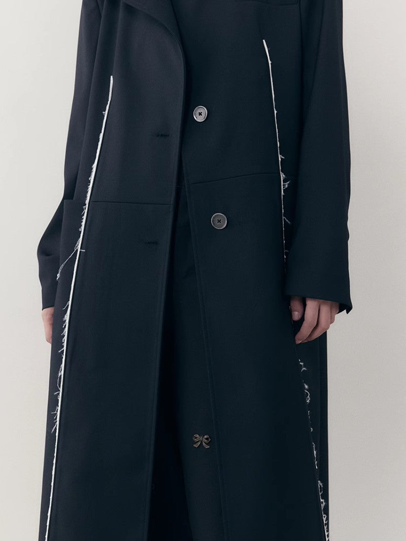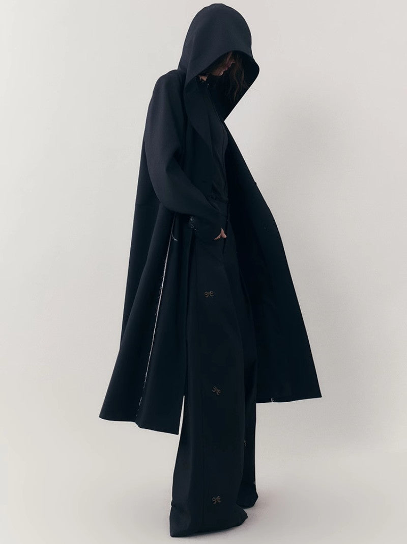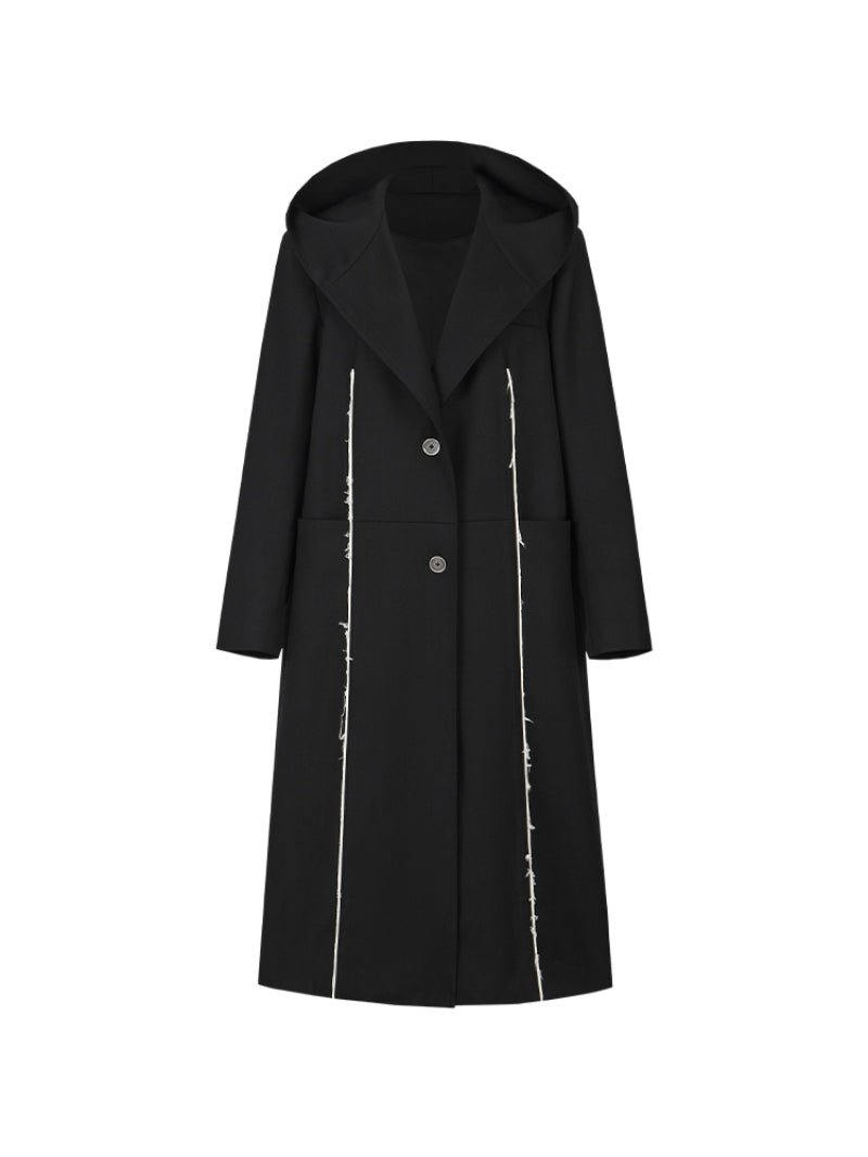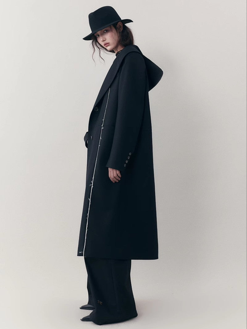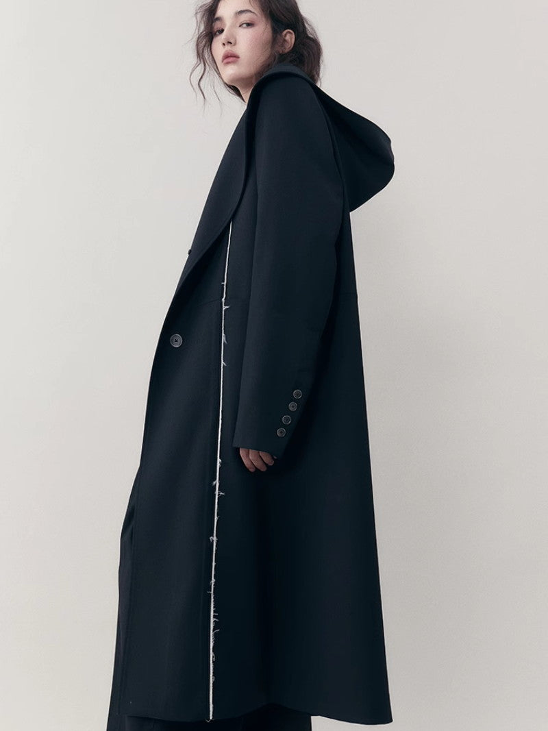 Hoodie Bi-Color Nichi Line Wool Long-Coat