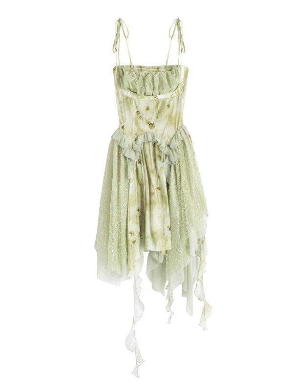 Ink Smudged Stitching Suspender Dress