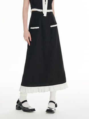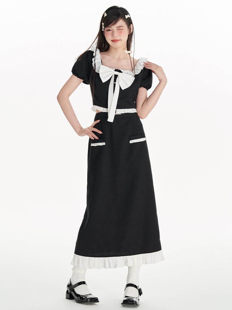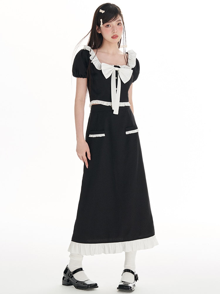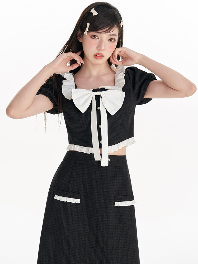 Small Fragrant Wind Puff Sleeve Ruffle Top & Ruffle Skirt