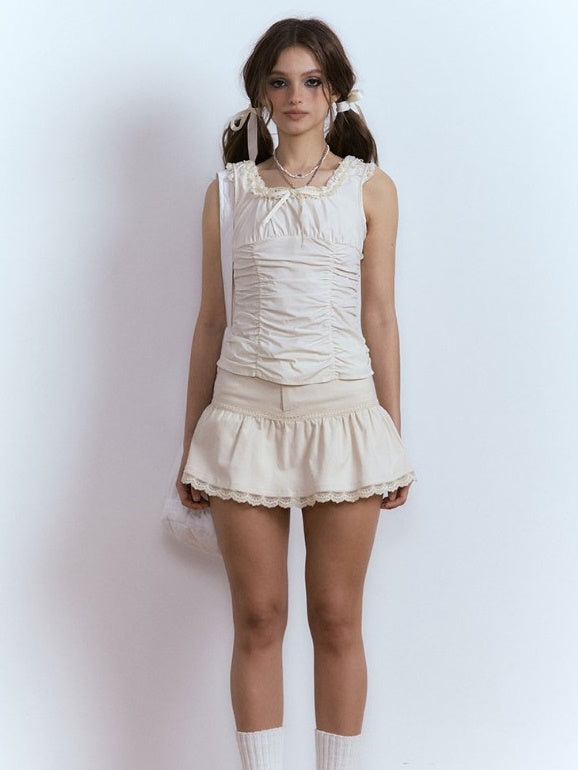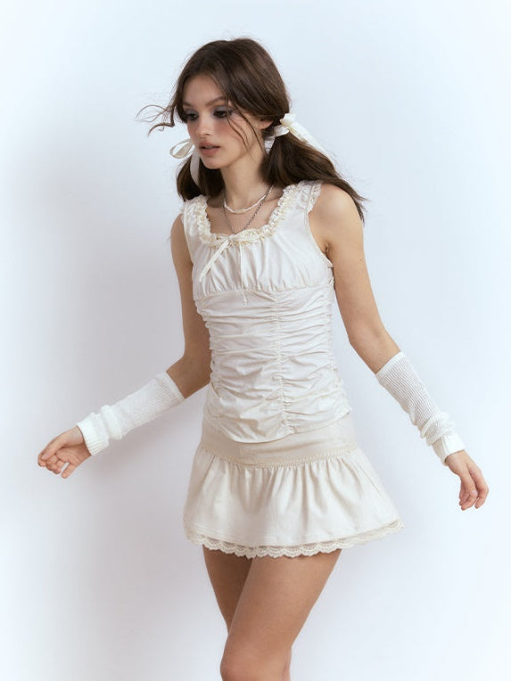 Lace PLEATED SLIM-FIT SLEEVELESS TOP
