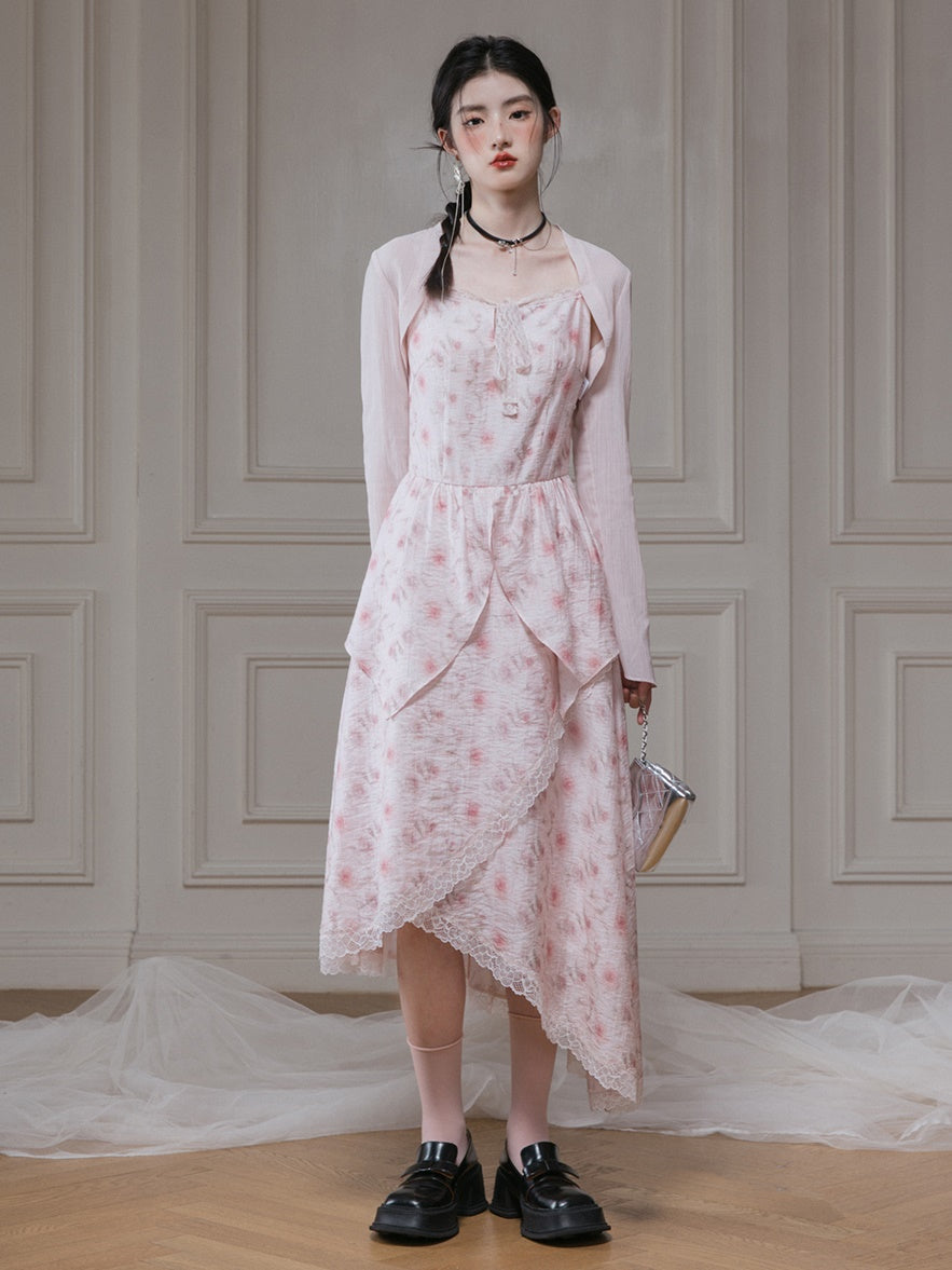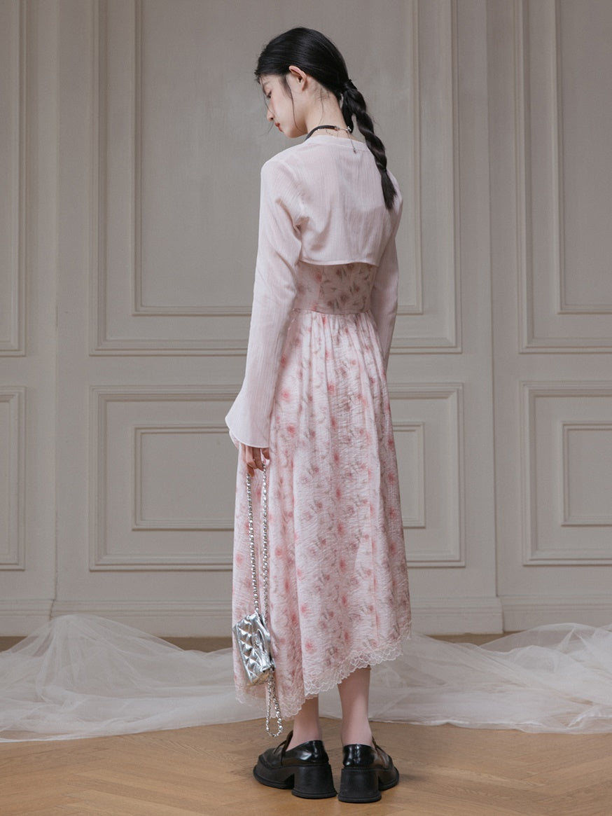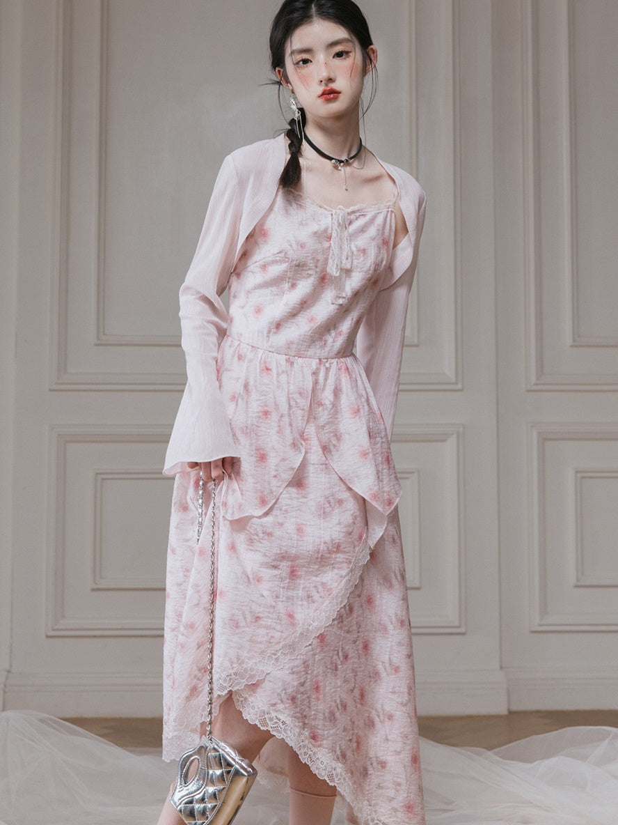 Layered Peplum Design Floral Slip Dress & Bolero Set-up