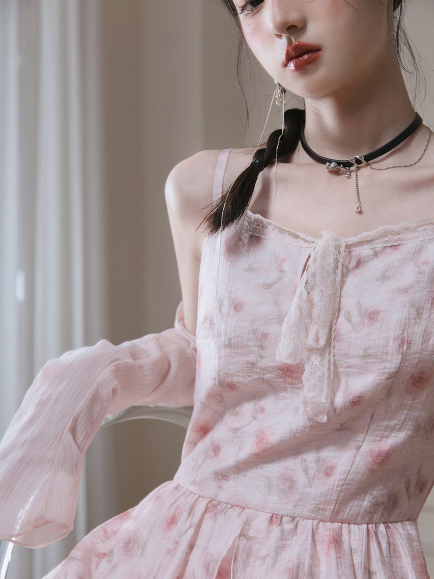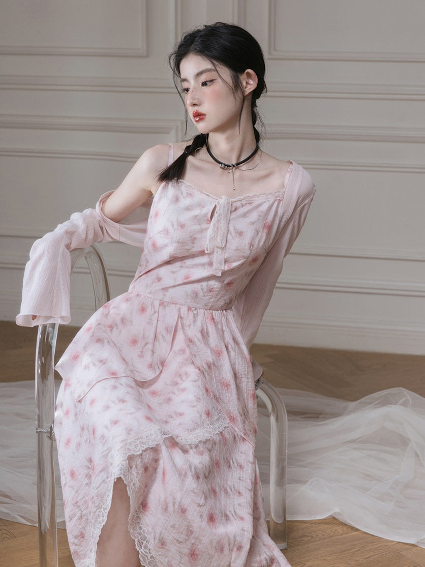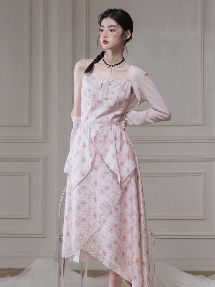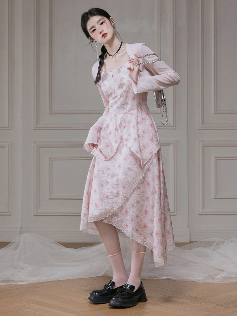 Layered Peplum Design Floral Slip Dress & Bolero Set-up