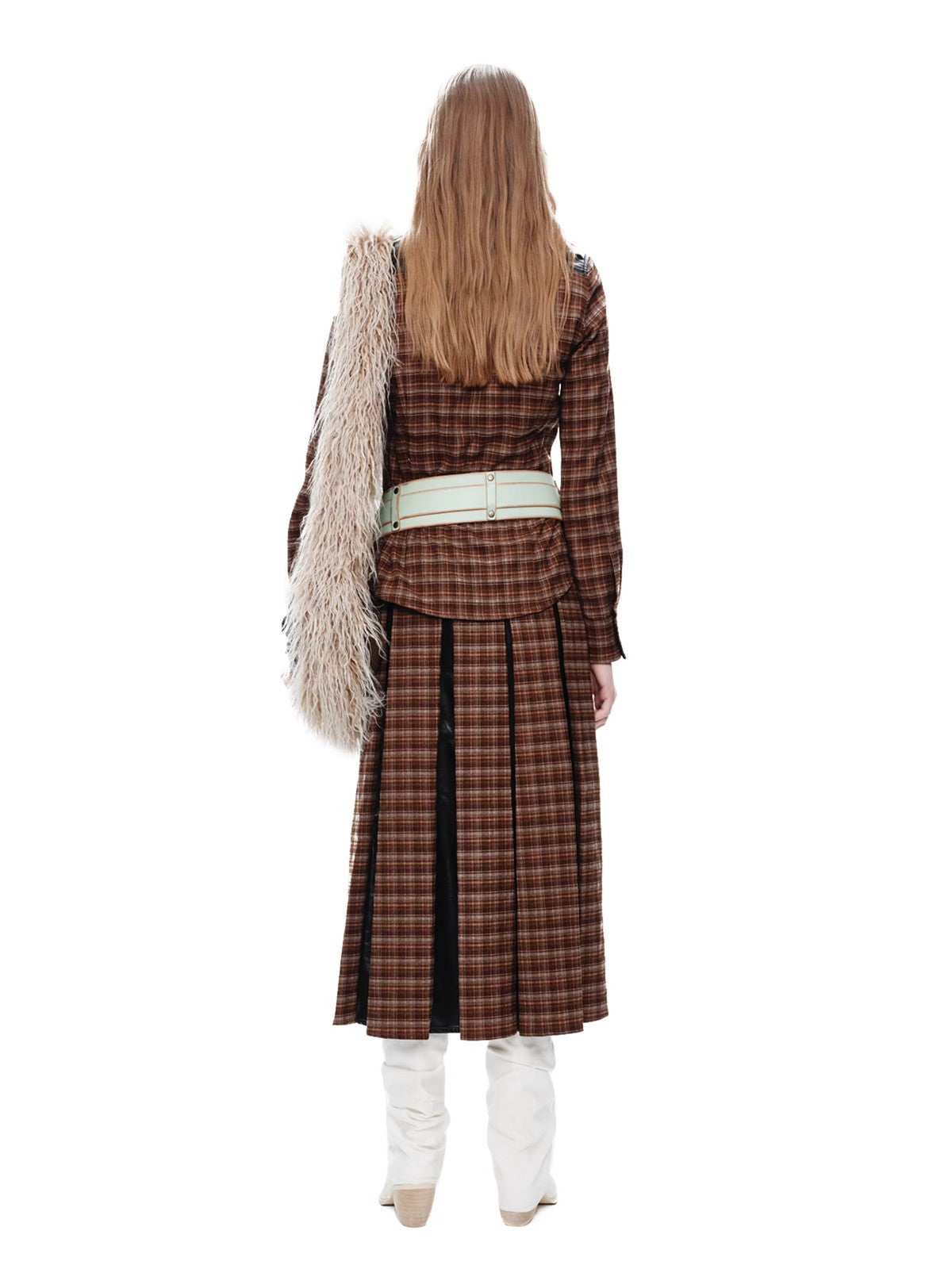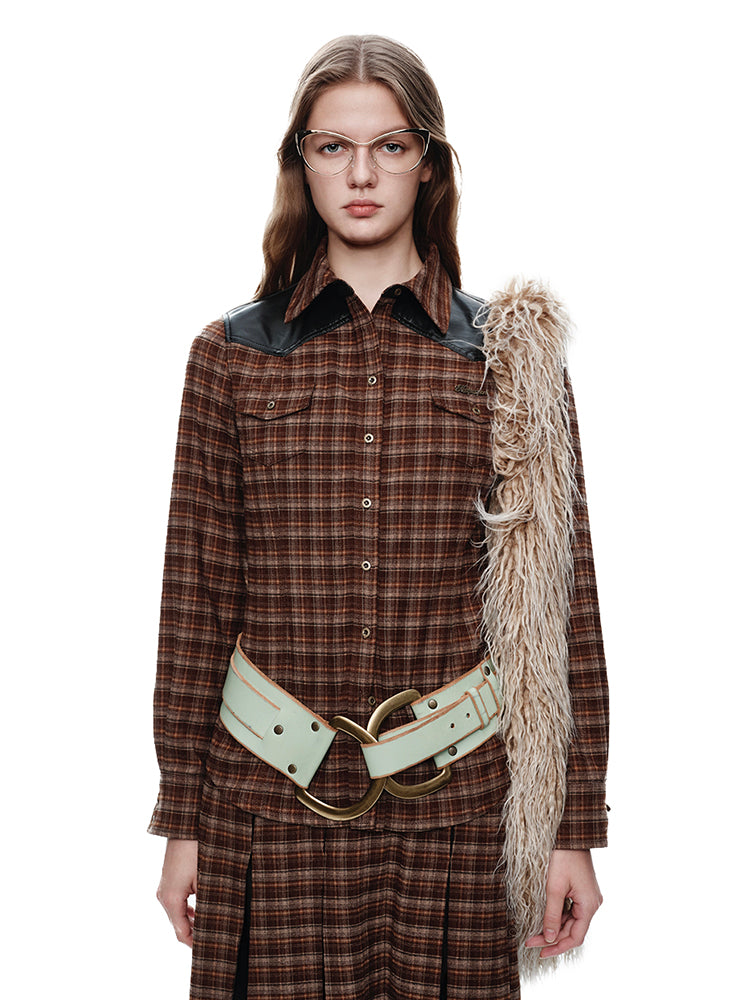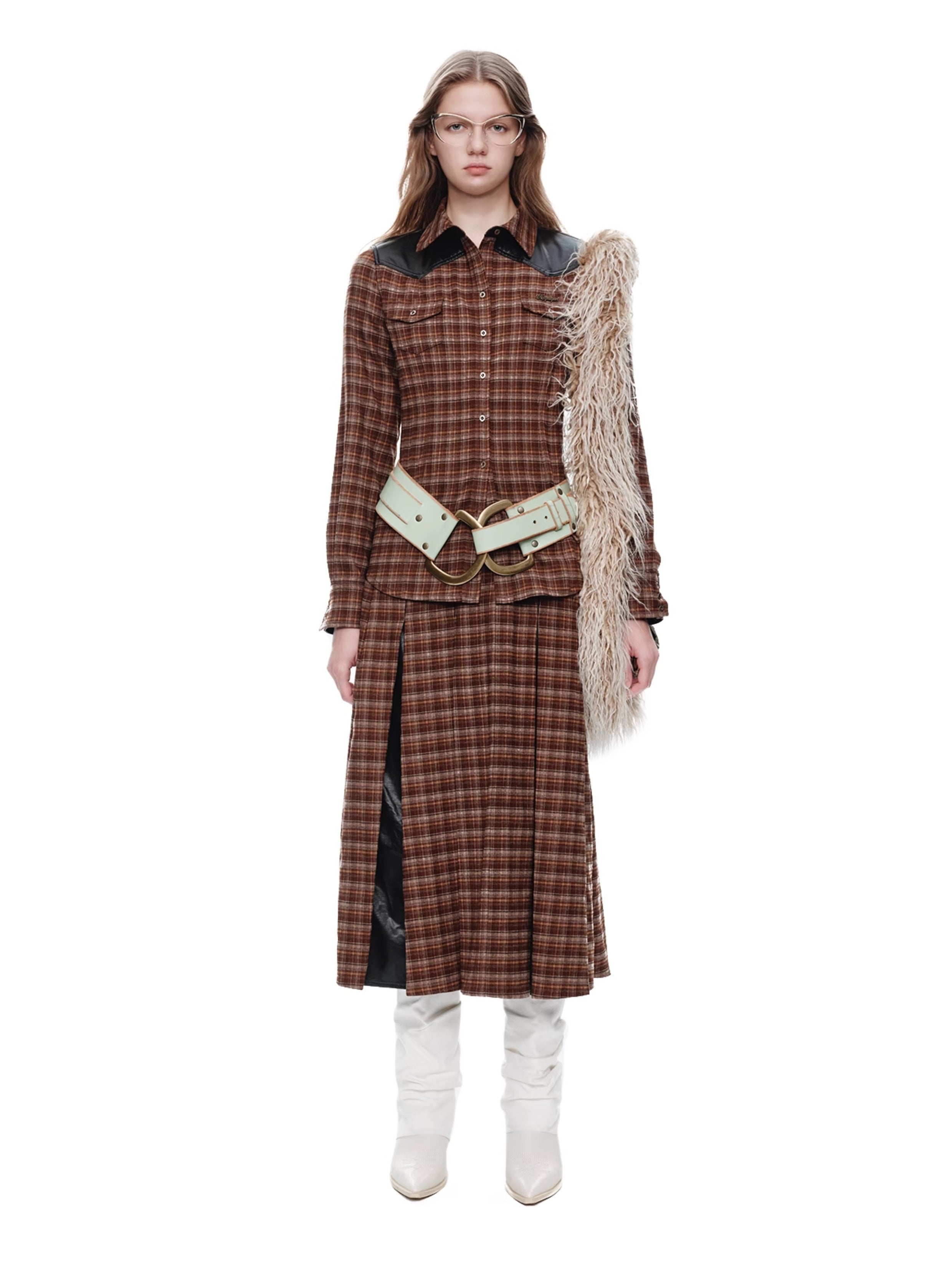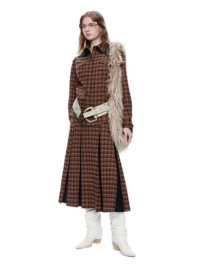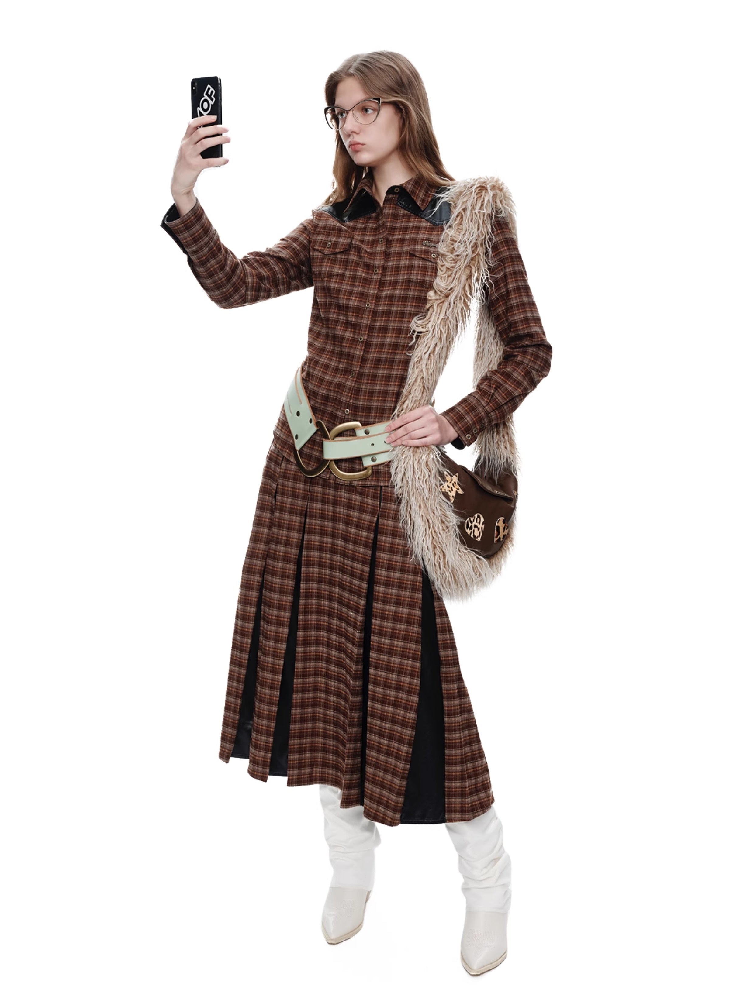 Leather-Mix Checked Retro Casual Flannel-Shirt