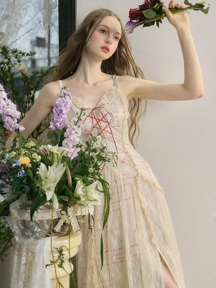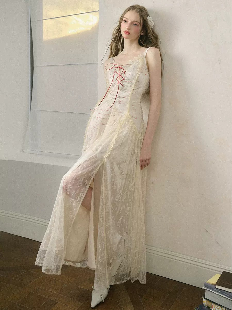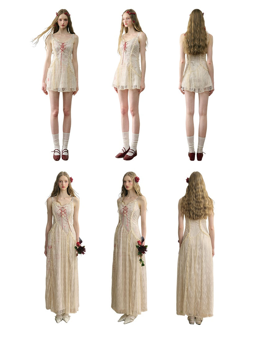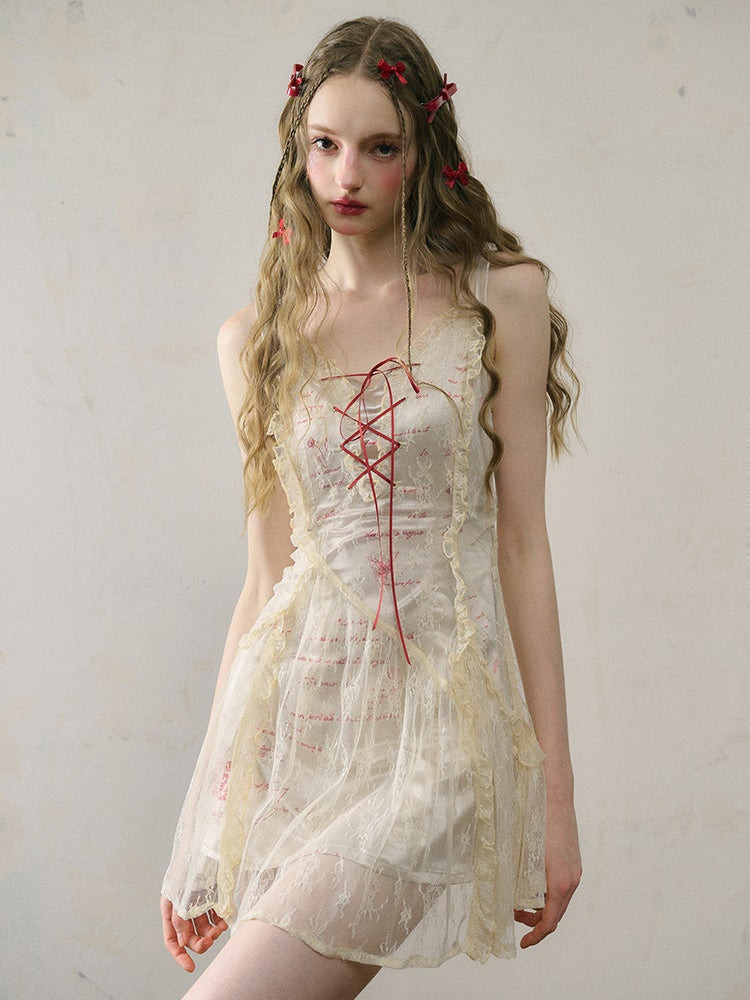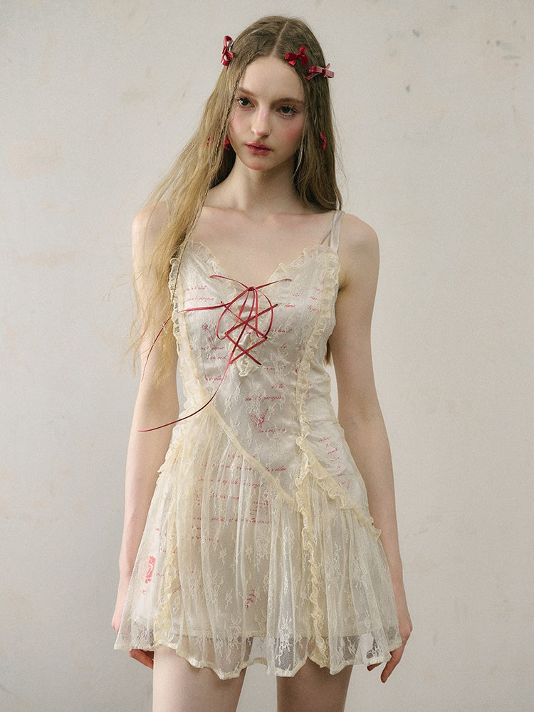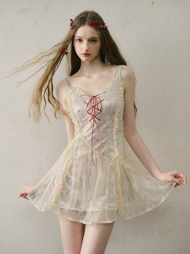 Letter Print Lace Long & Short Suspender Dress