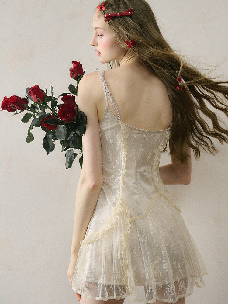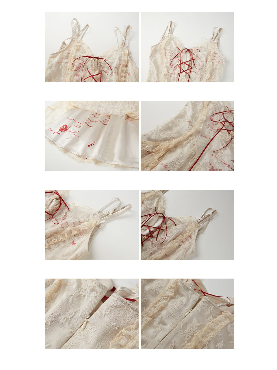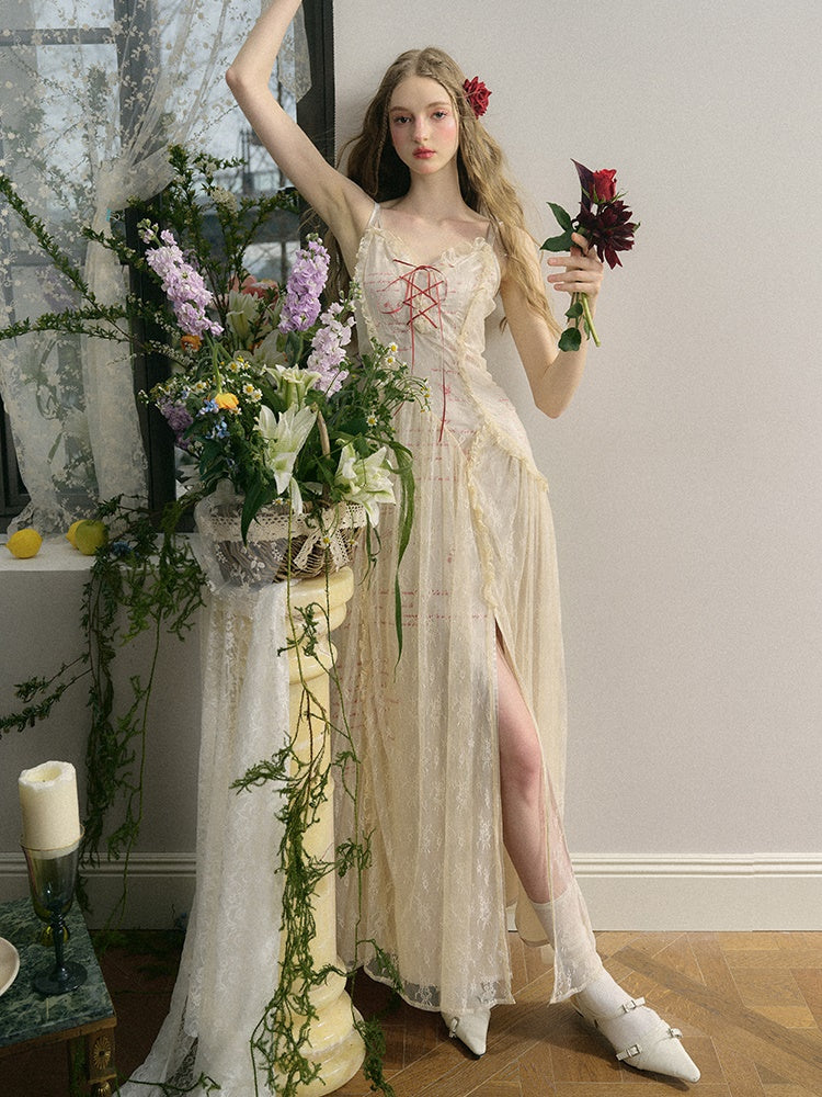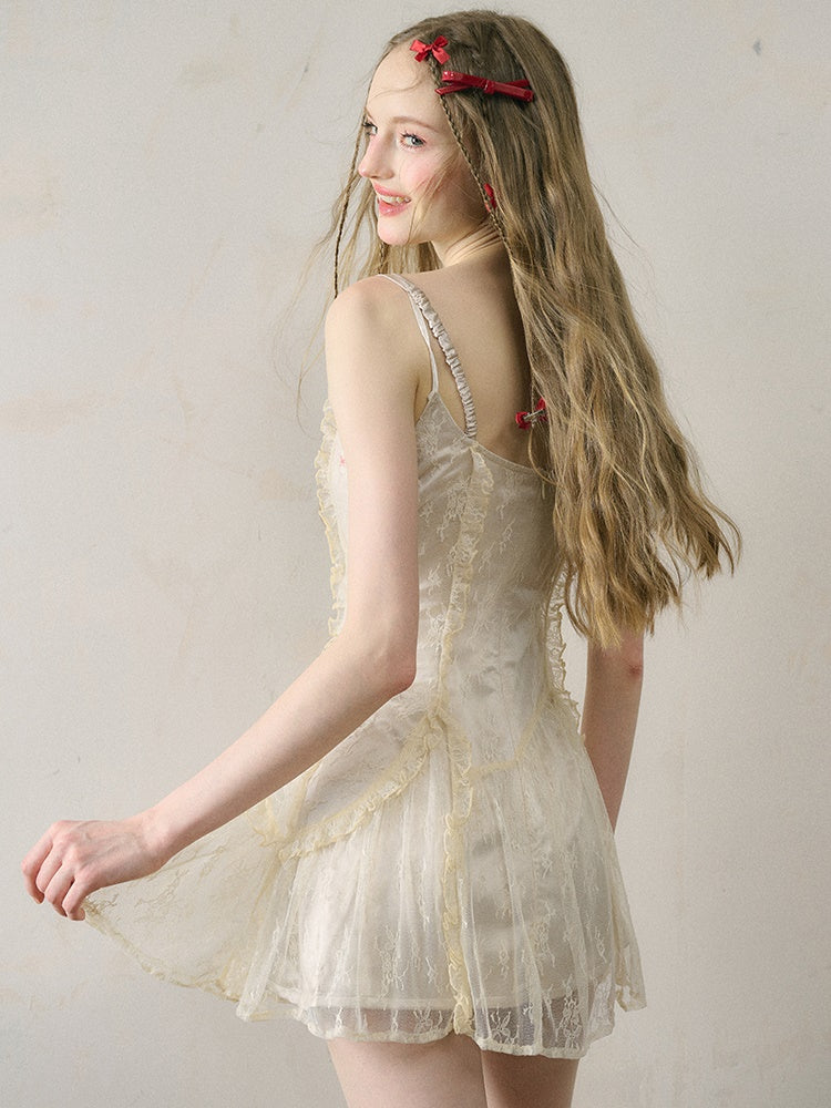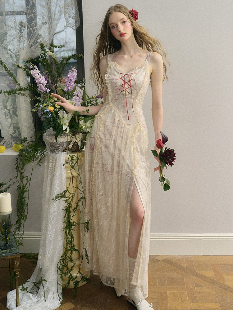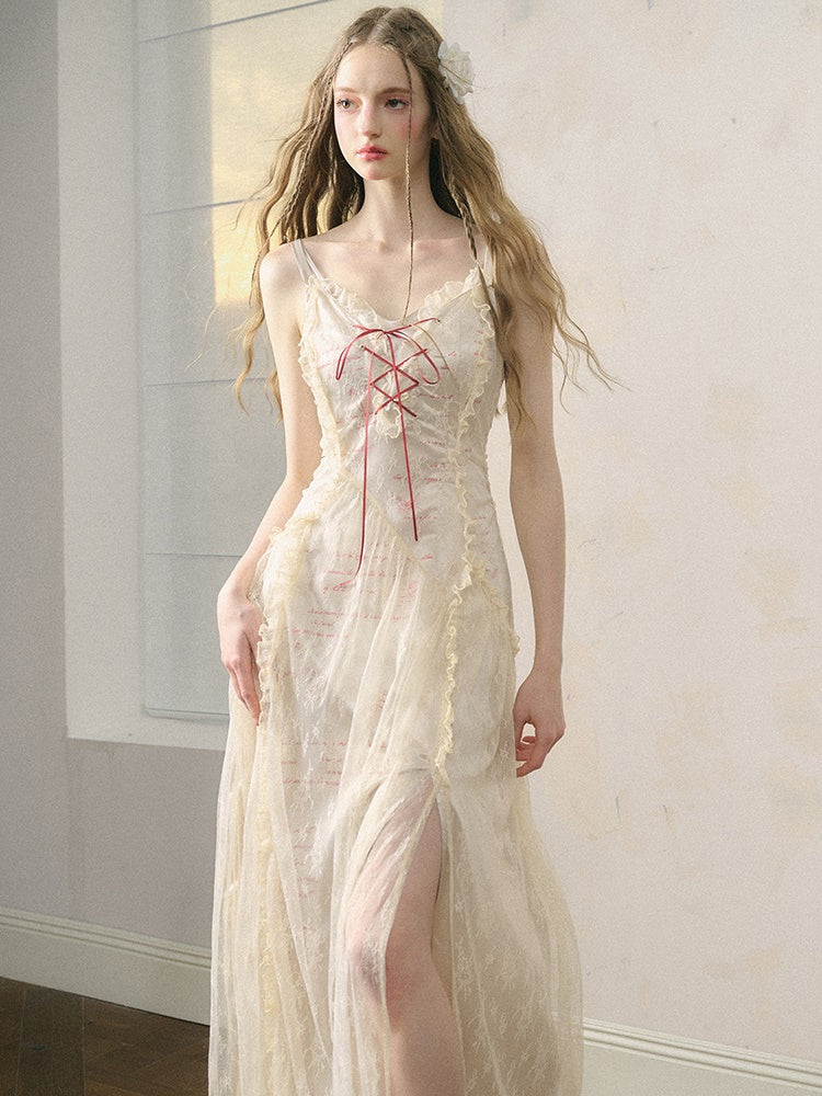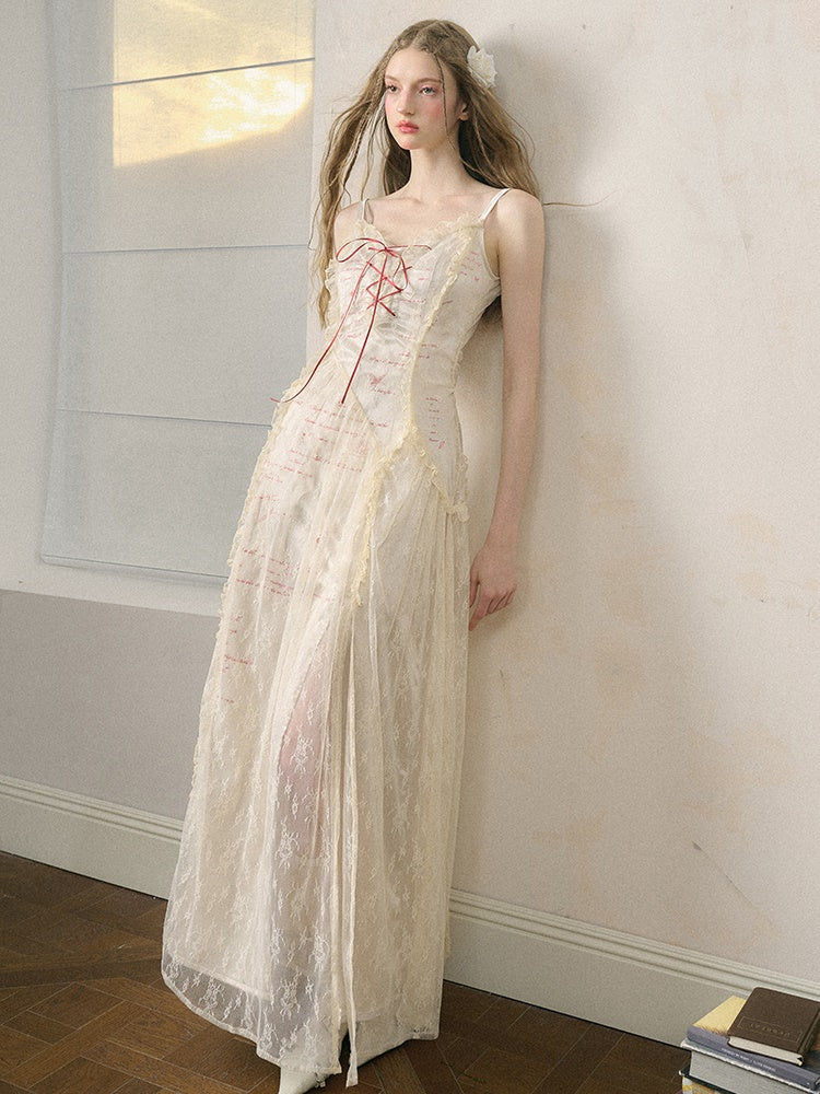 Letter Print Lace Long & Short Suspender Dress
