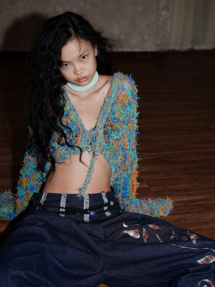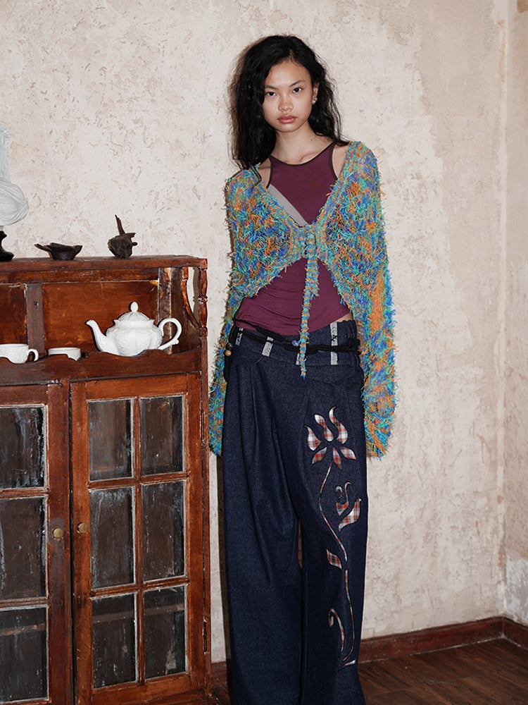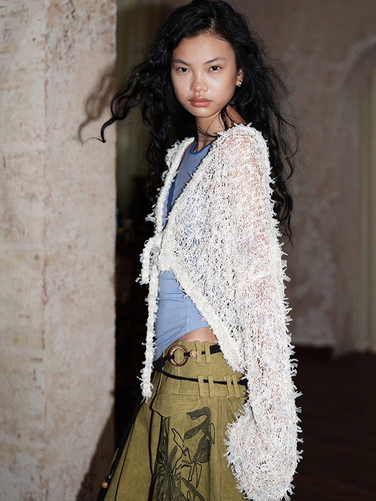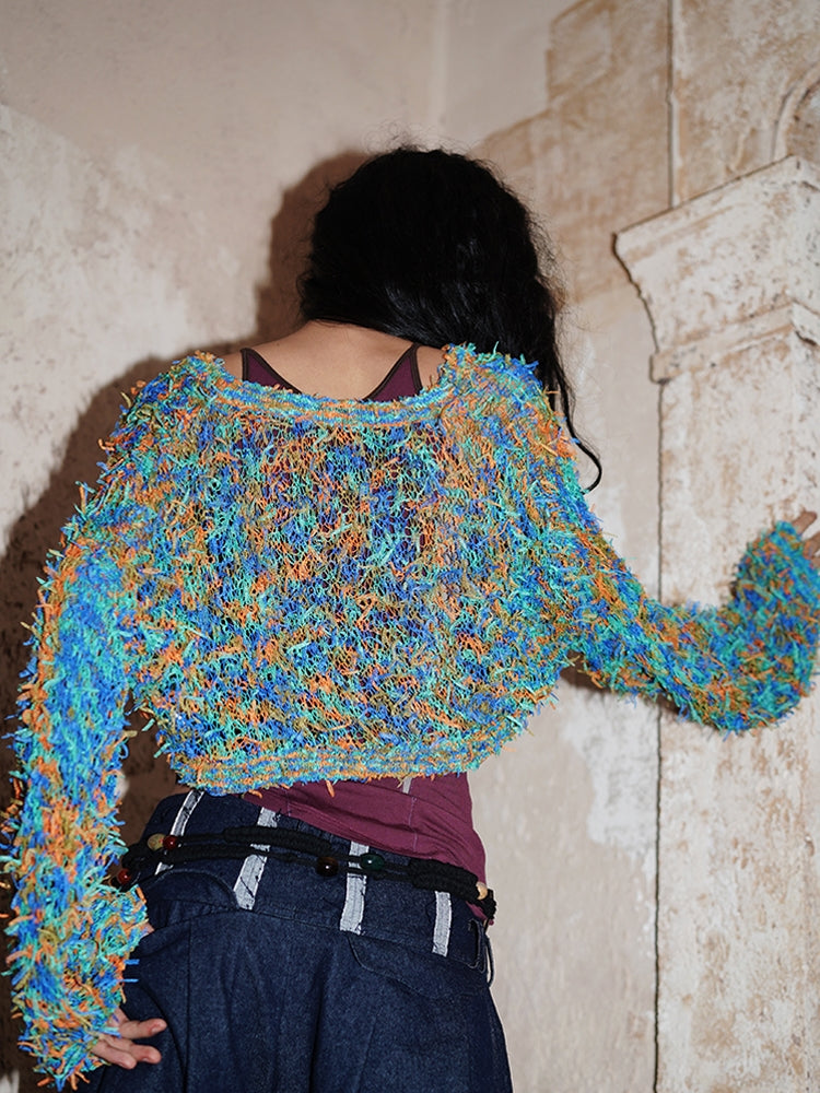 Low-Gauge Knit Colorful Sheer Short Nichi Cardigan