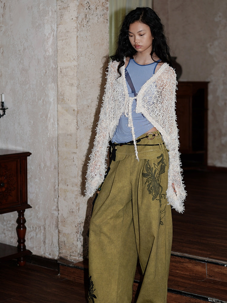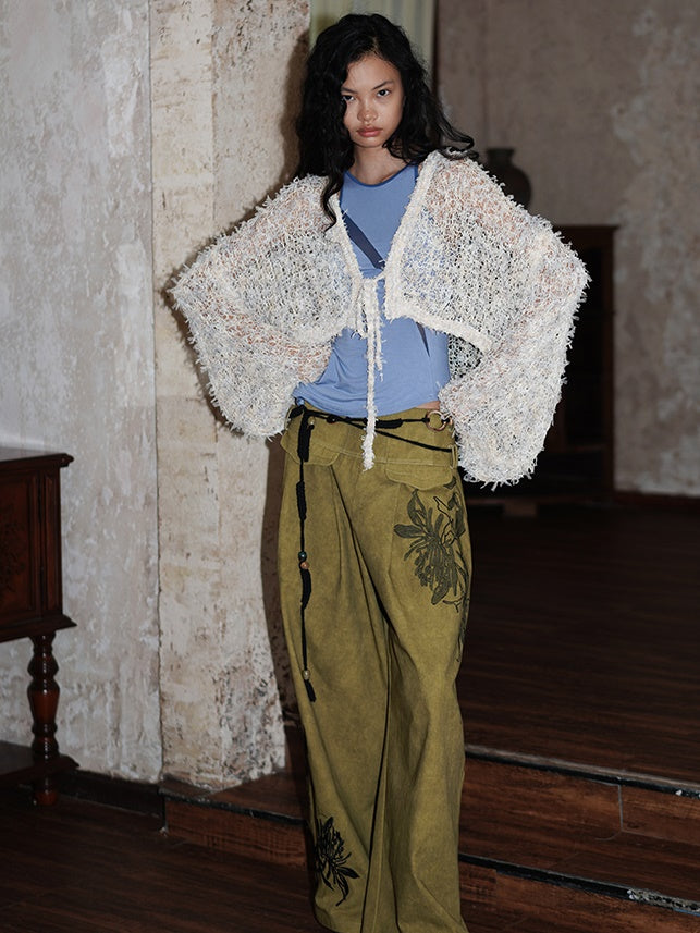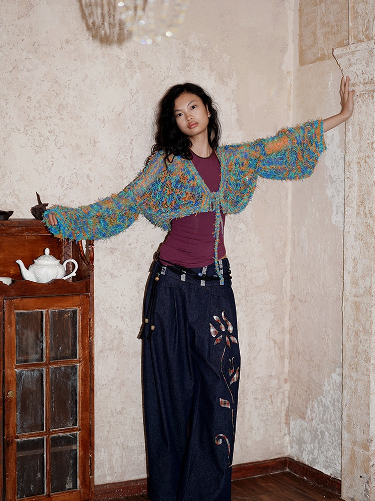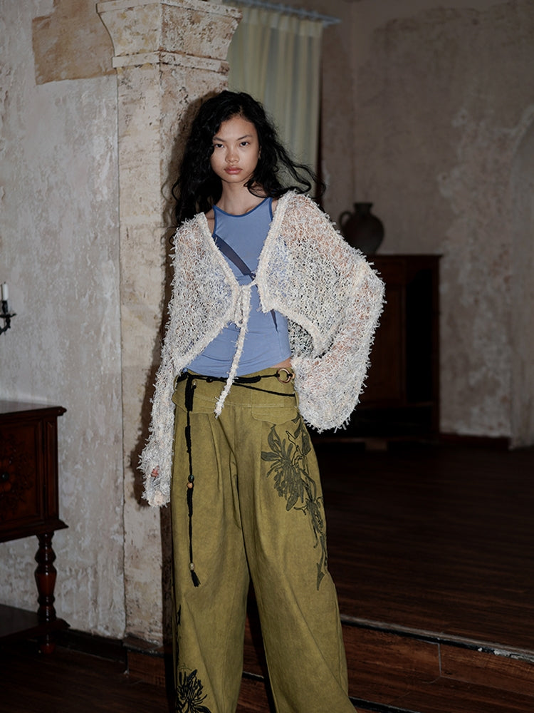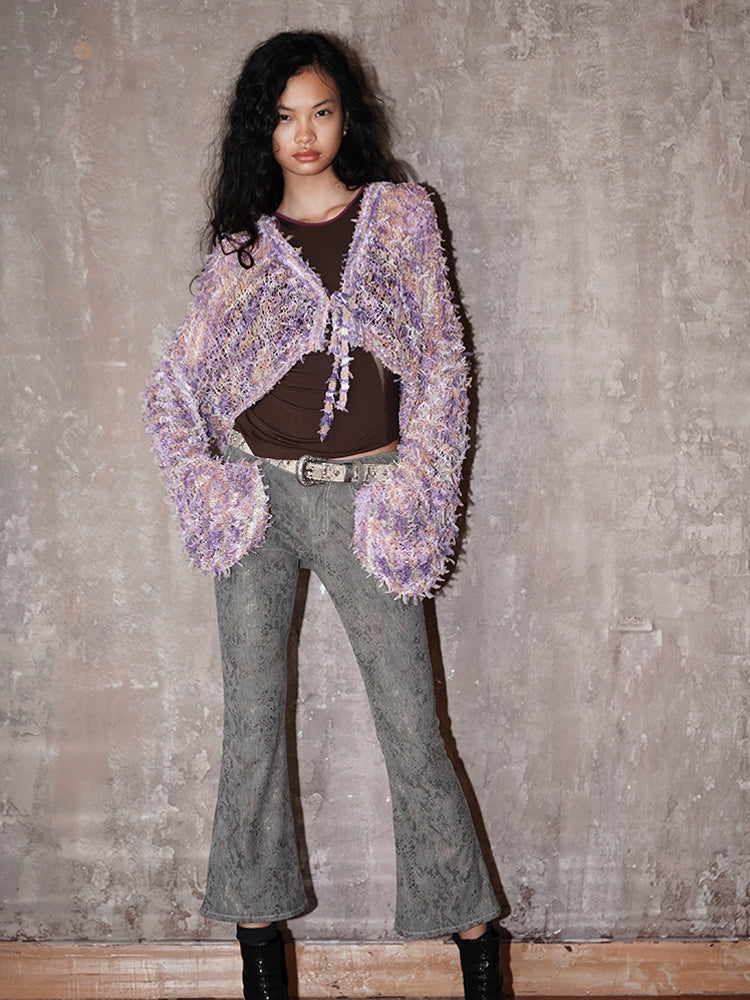 Low-Gauge Knit Colorful Sheer Short Nichi Cardigan