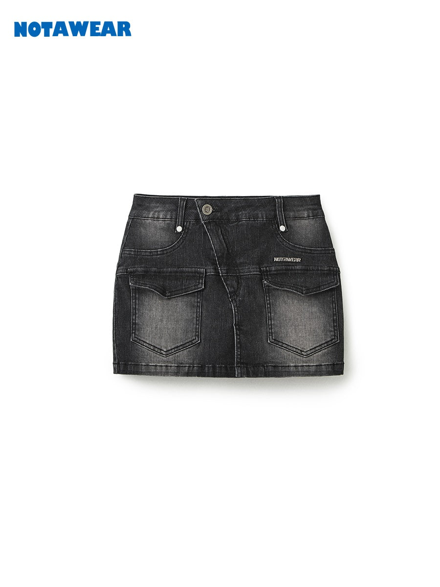 Micro-Min Denim Slit Casual Dark Skirt