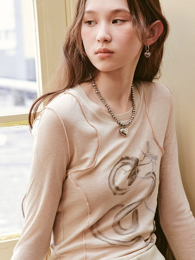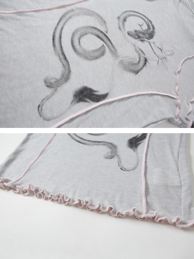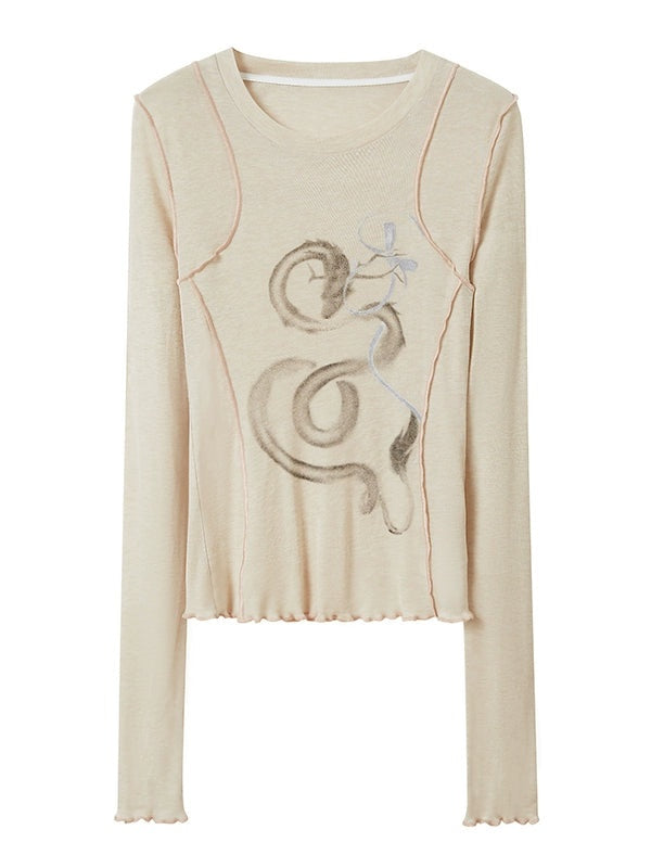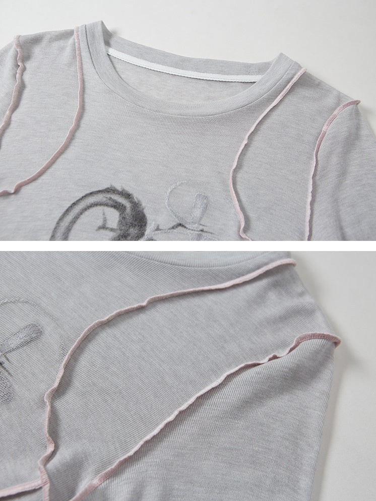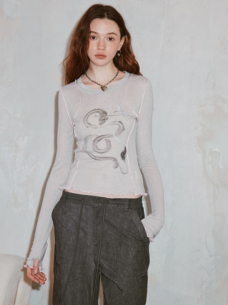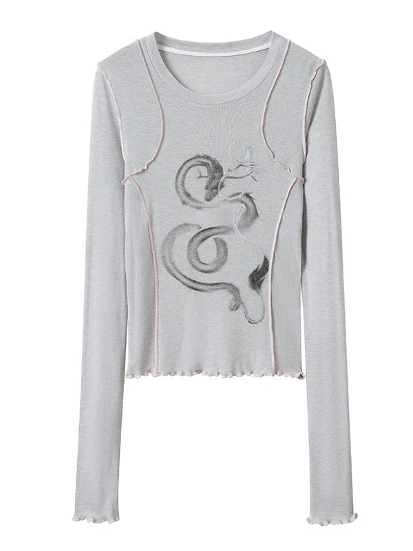 Micro-permeable Dragon Ink Print Slim Fit Bottoming Shirt
