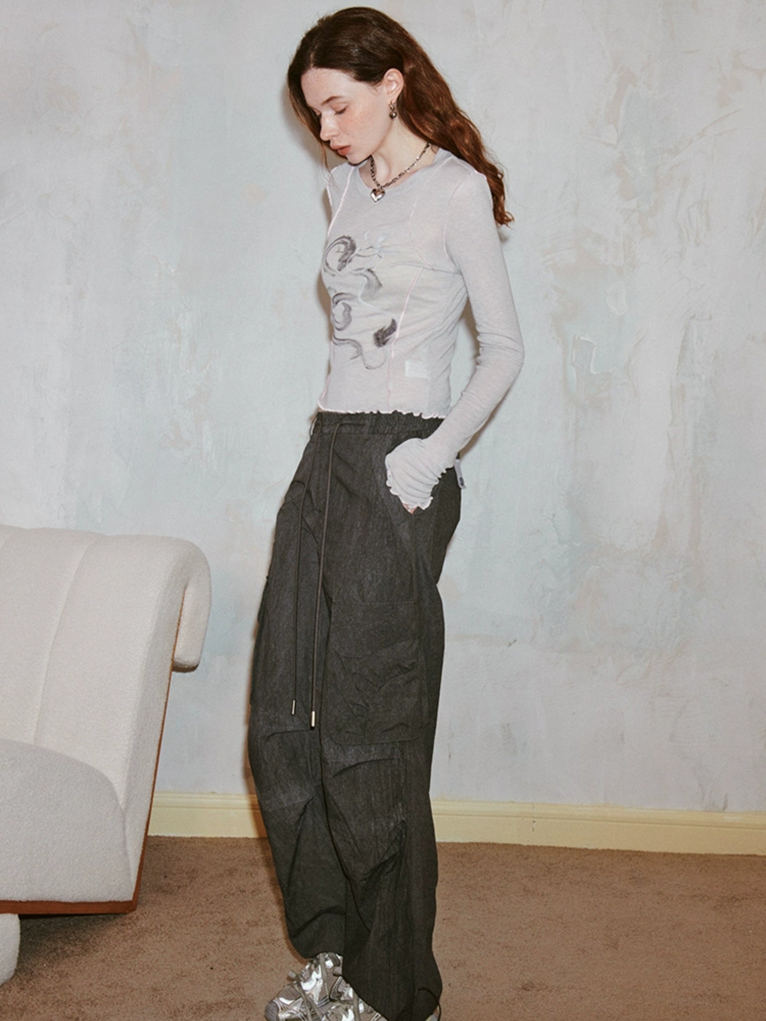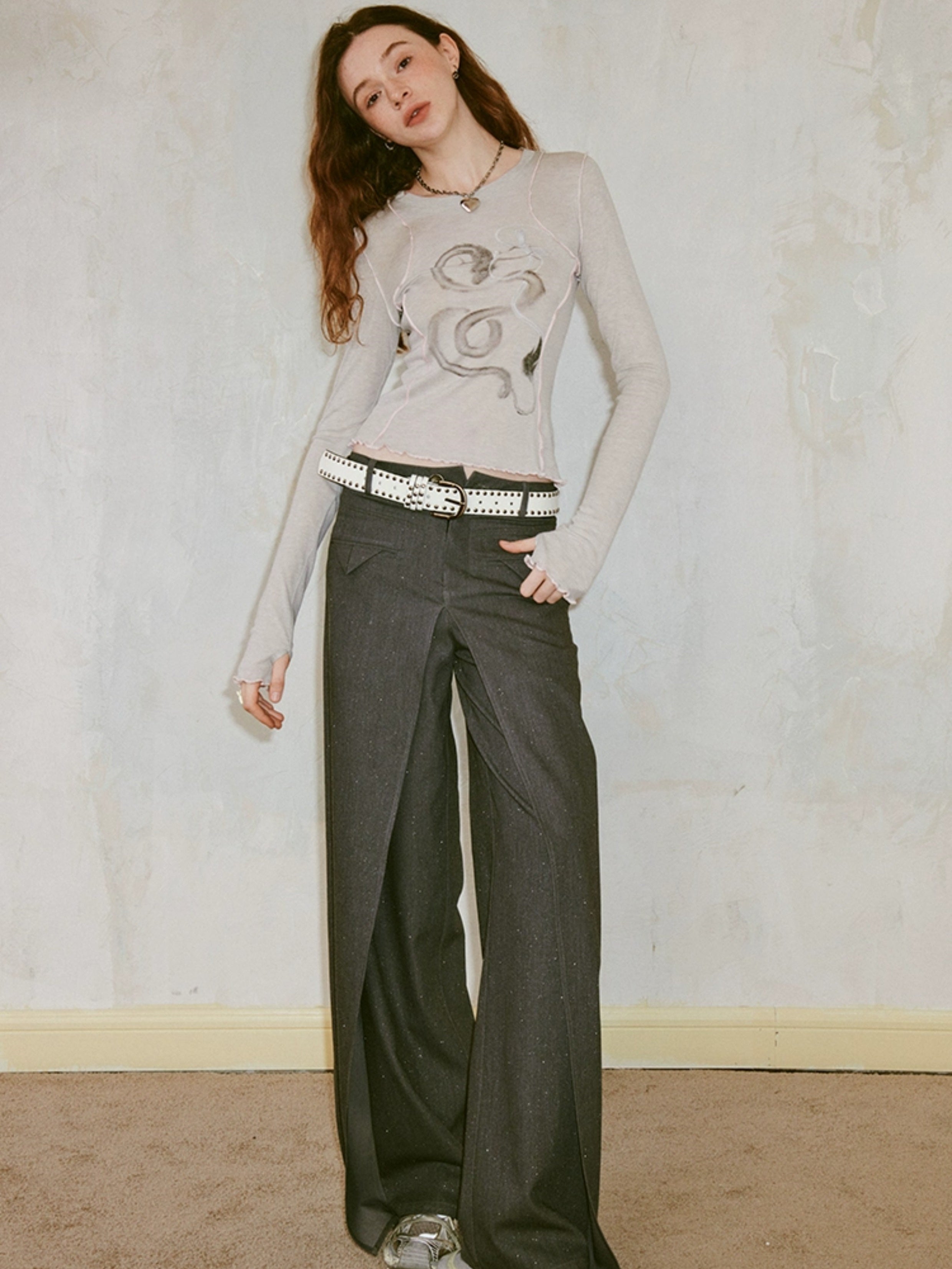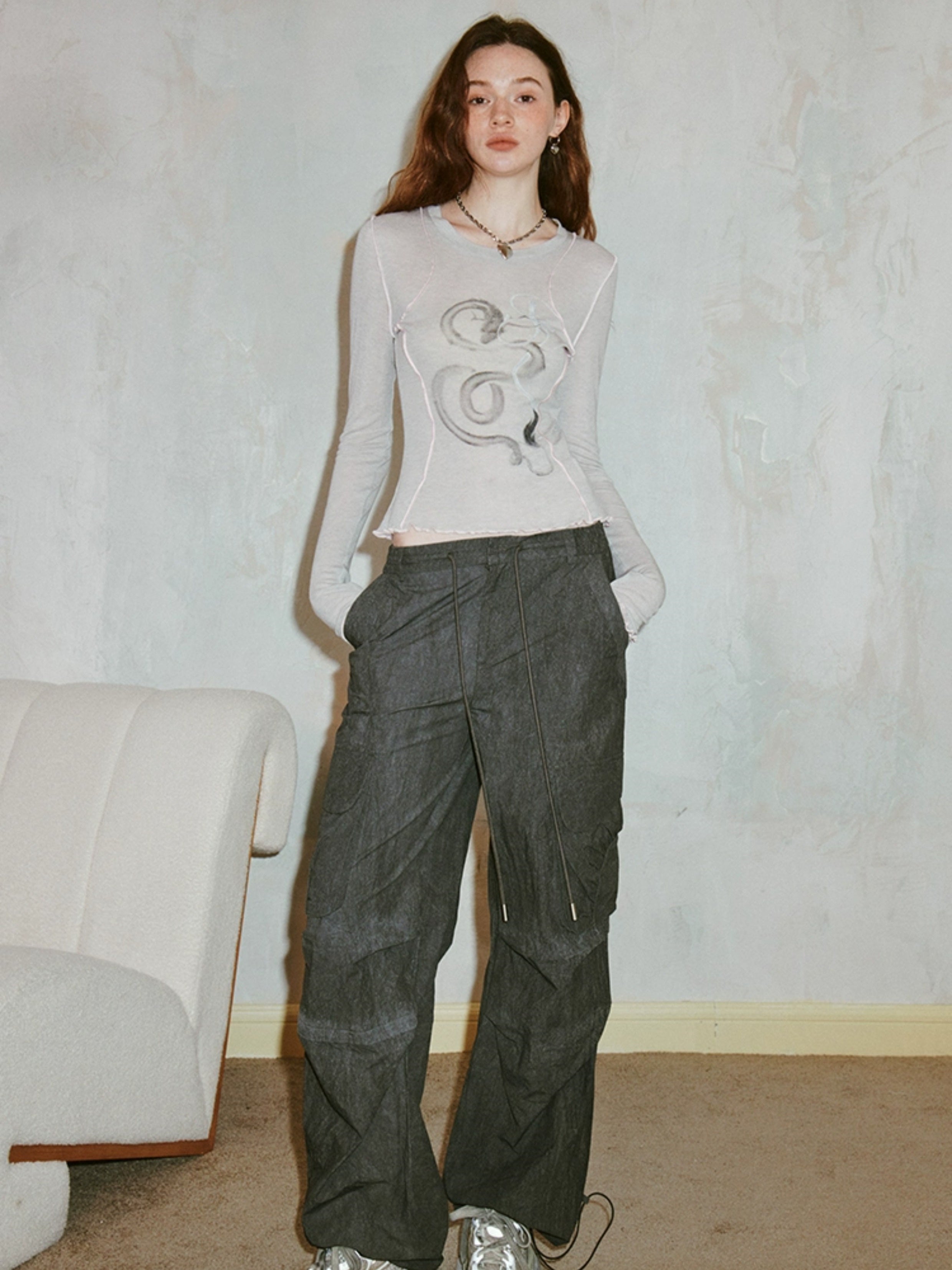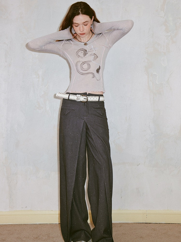 Micro-permeable Dragon Ink Print Slim Fit Bottoming Shirt