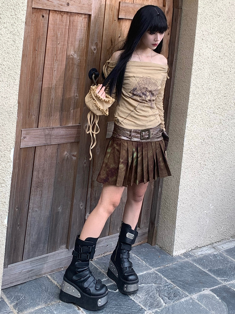Mix Nichi Pleats Drawstring Leather One-Piece