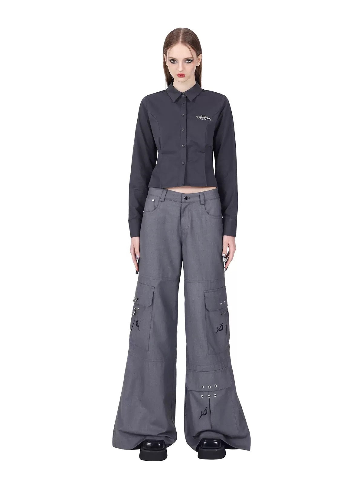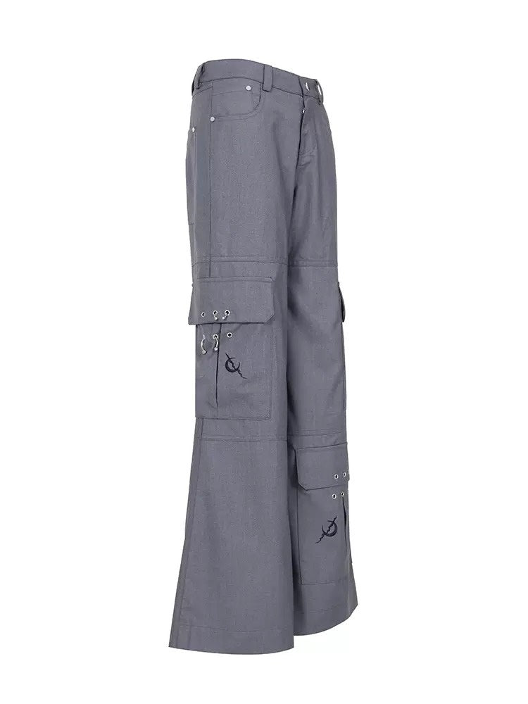 Multi-Pocket Hanging Ring Micro-flare Loose Pants