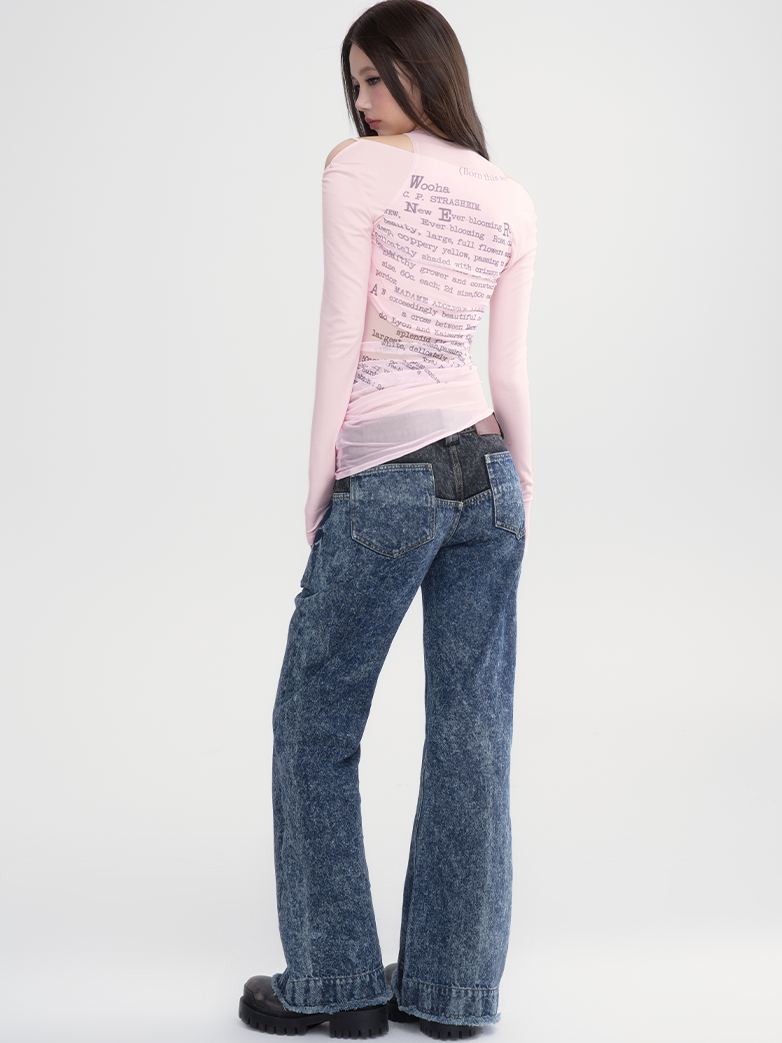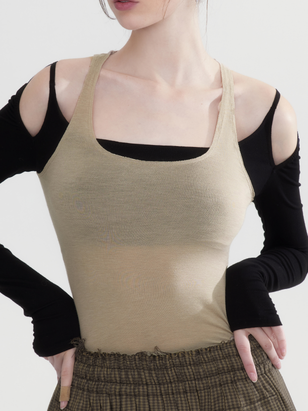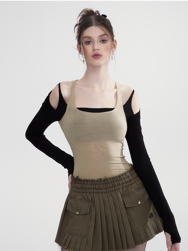 Open-Shoulder Slim Thin Letter Nichi Cutsew
