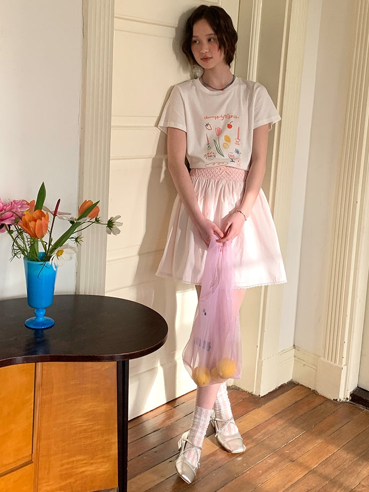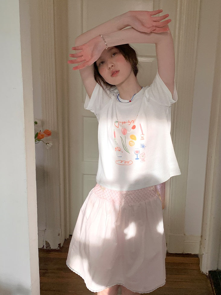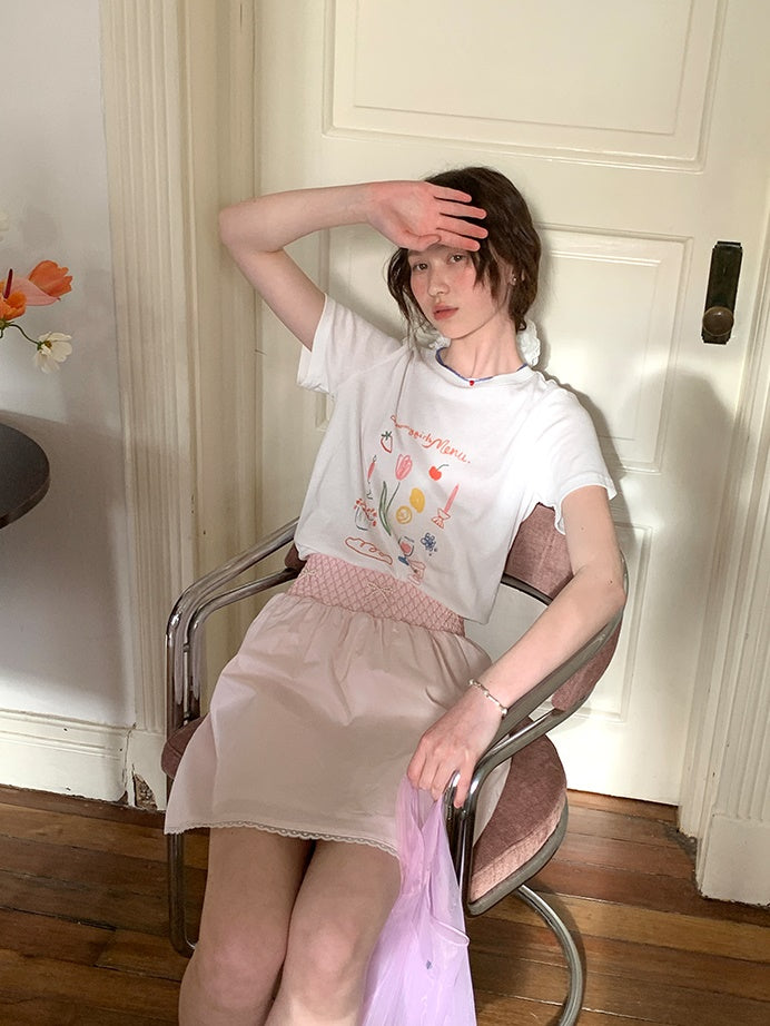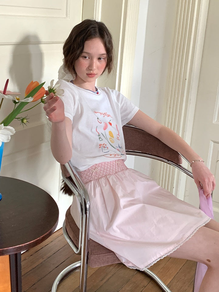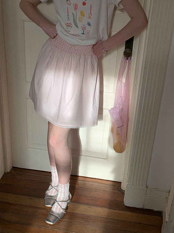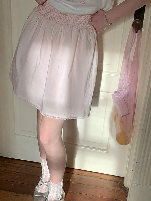 Pearl Bow Sweet Lace A-line Waist Skirt