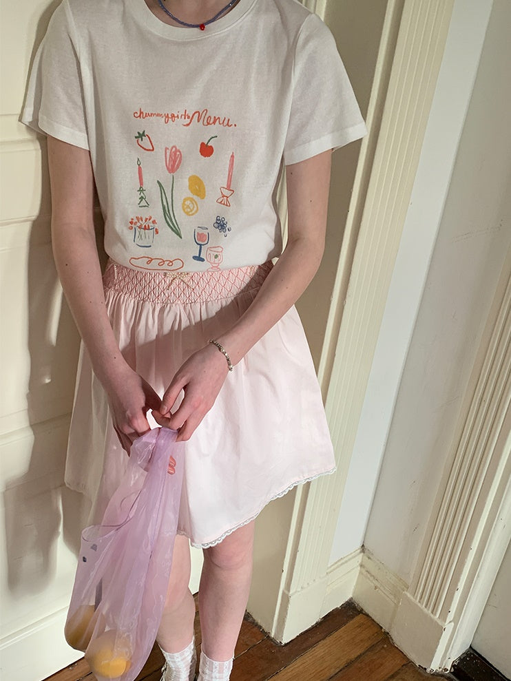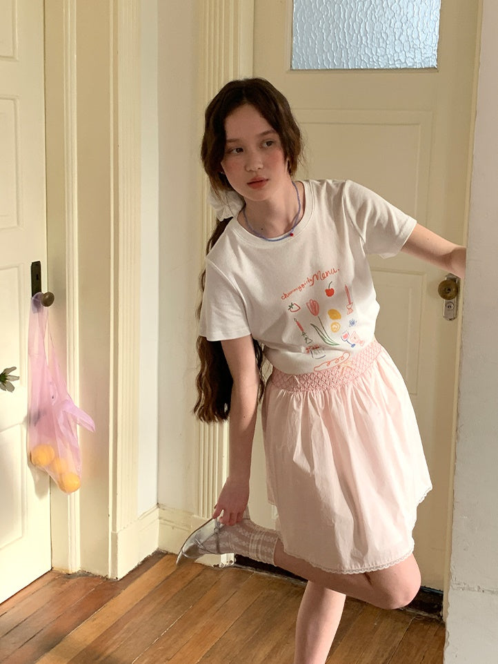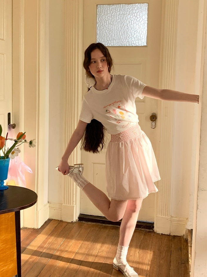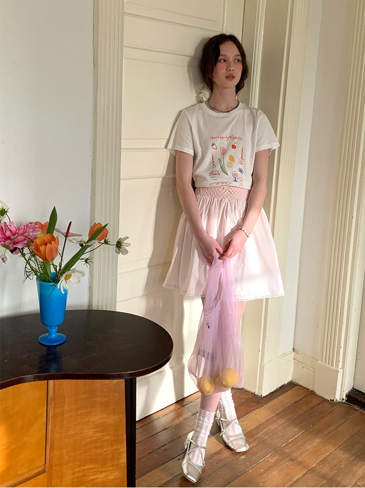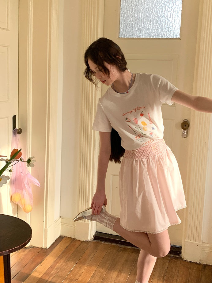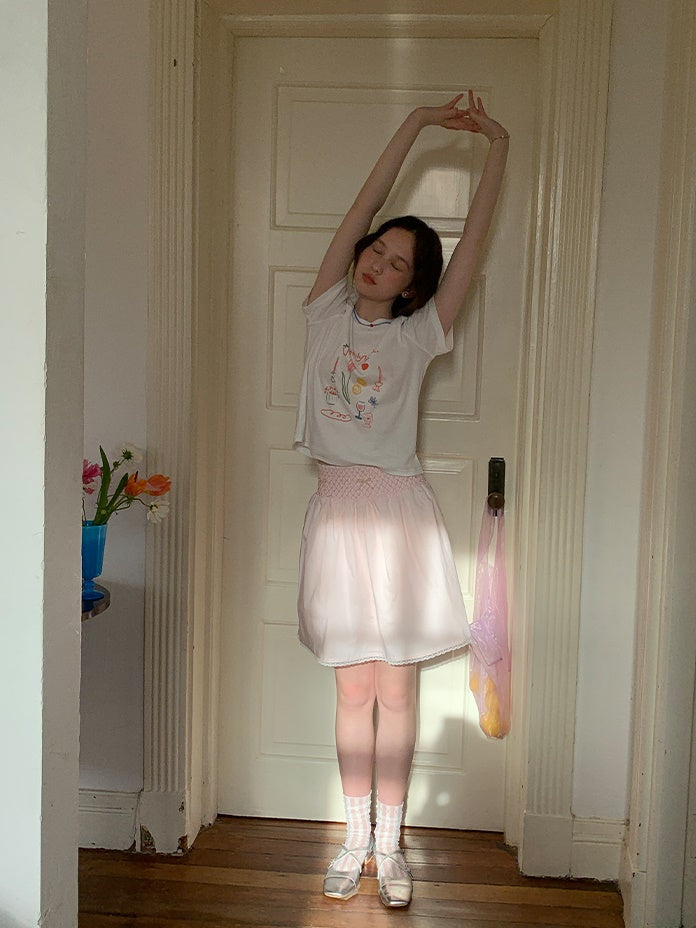 Pearl Bow Sweet Lace A-line Waist Skirt