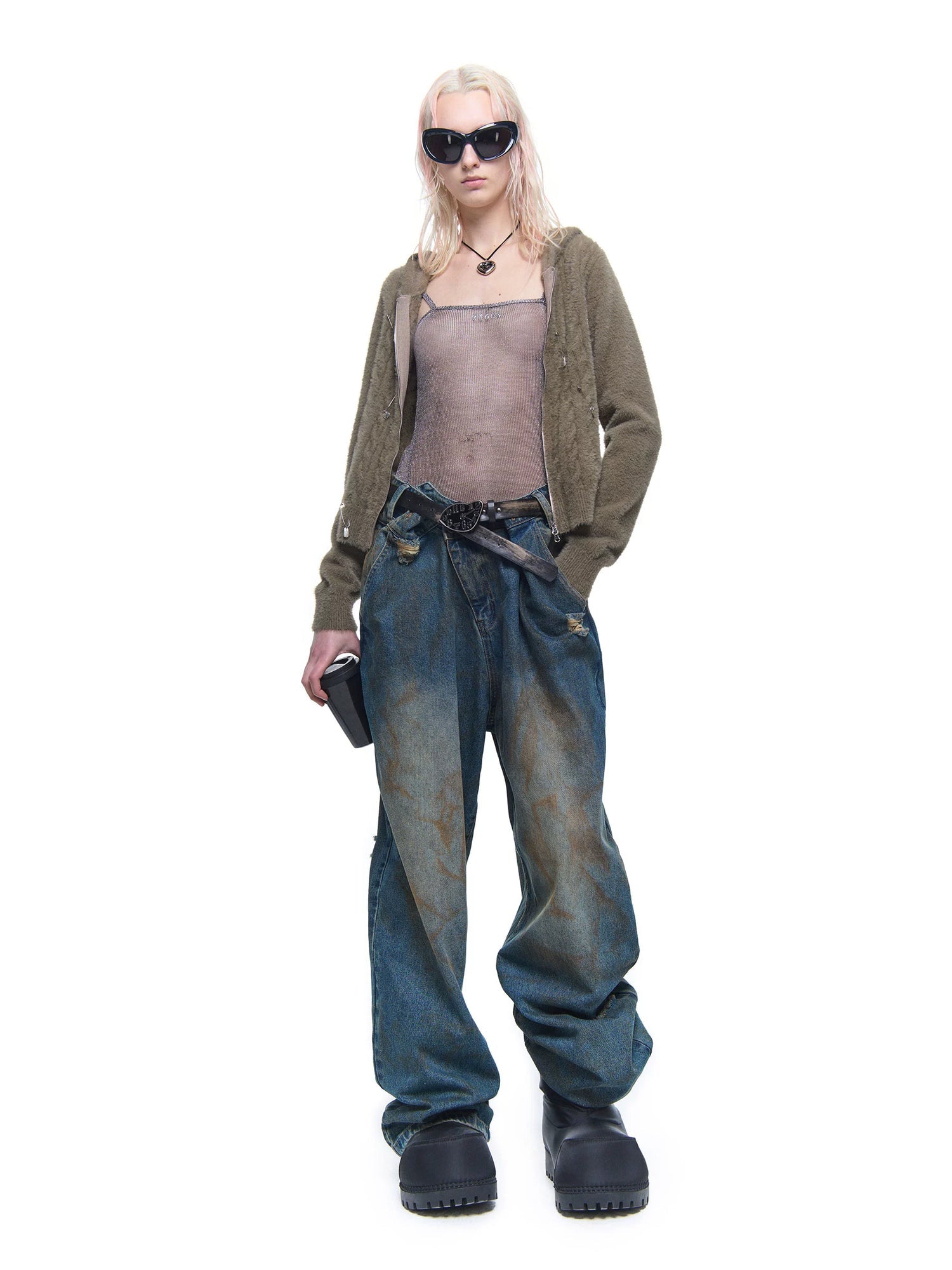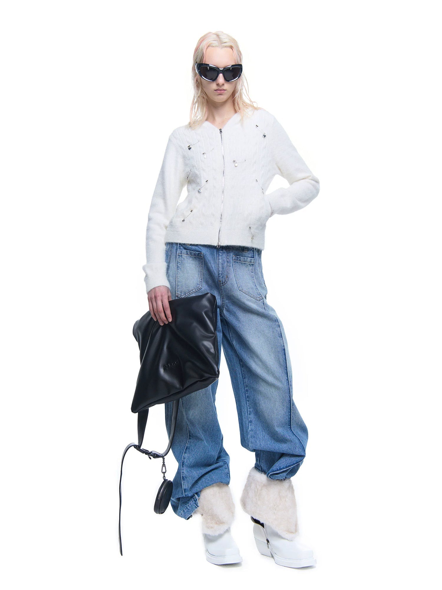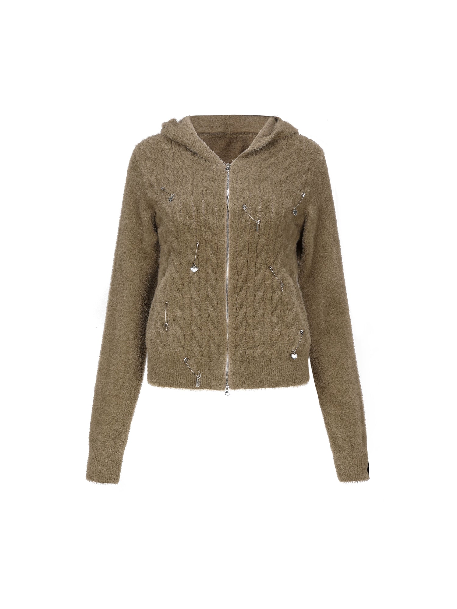 Pin Accent Hooded ZIP-Up Knitted Cardigan