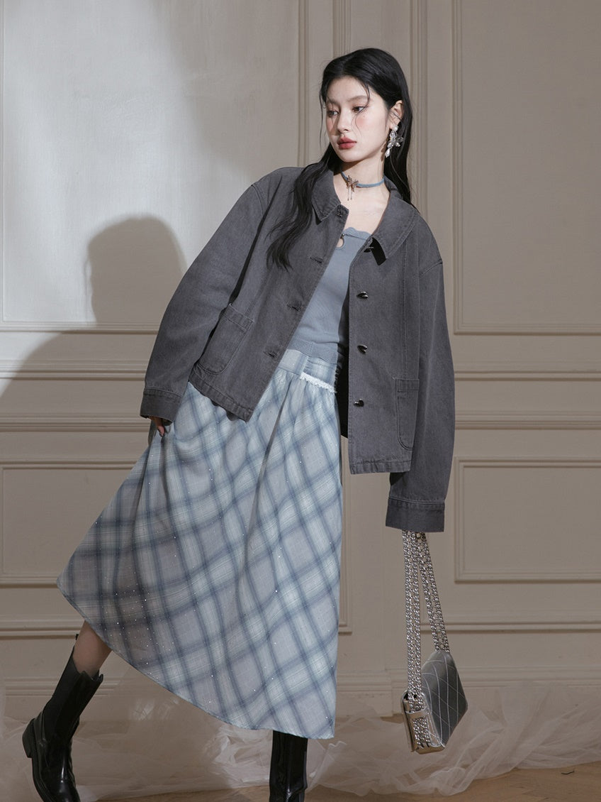 Plaid High-Waist Chiffon Skirt